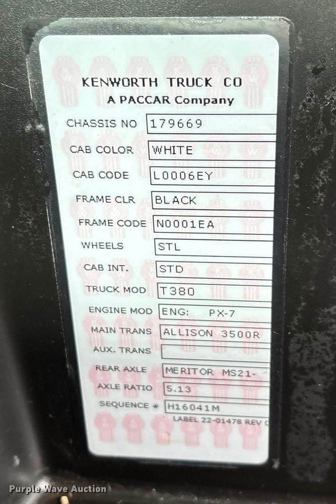 2012 Kenworth T3 Series crane truck, Miles: 100,353 on odometer, VIN: 2NKHHN7X6CM307271, Engine, Paccar PX-8, Displacement: 8.3L,...