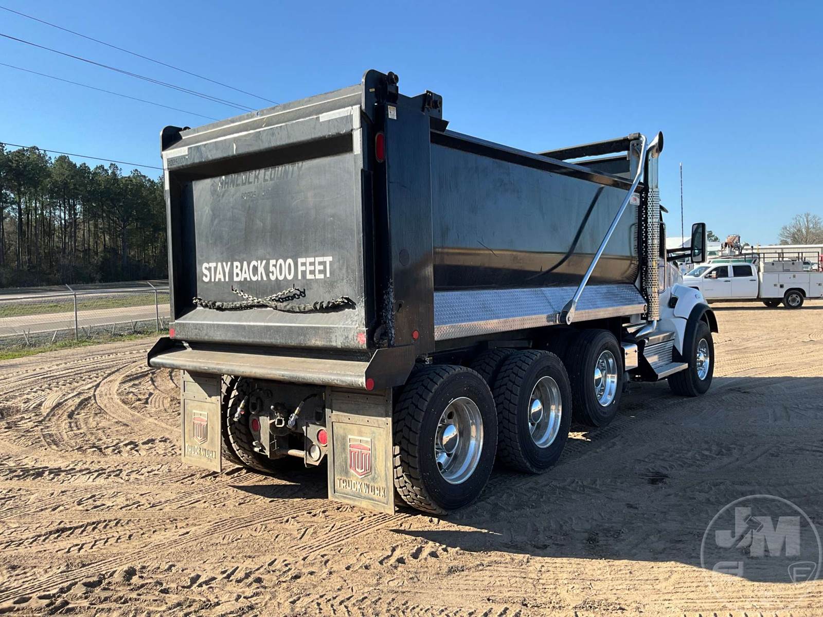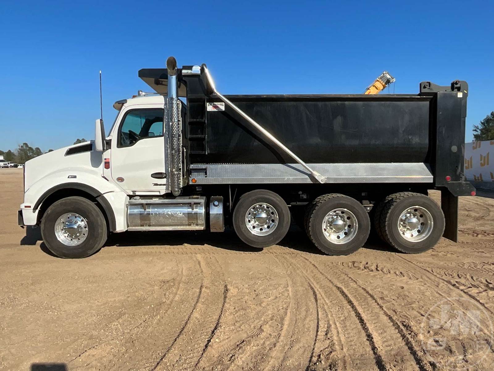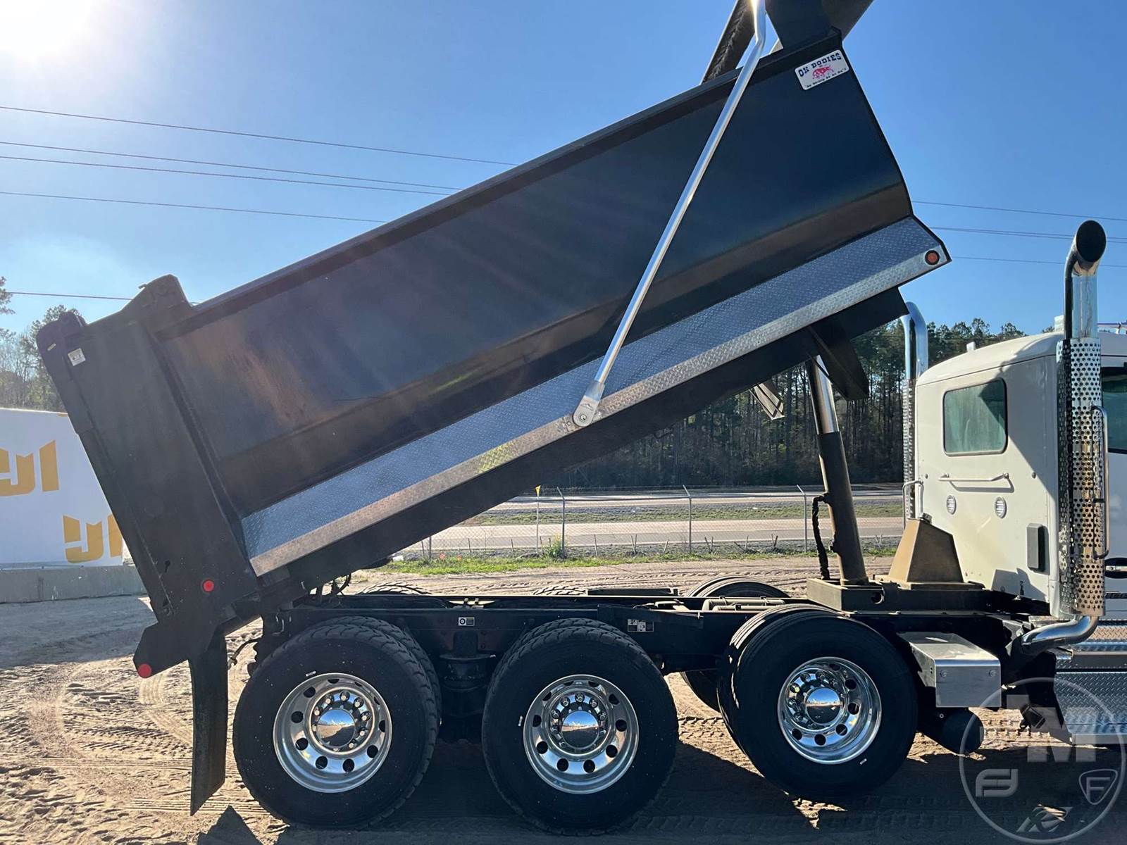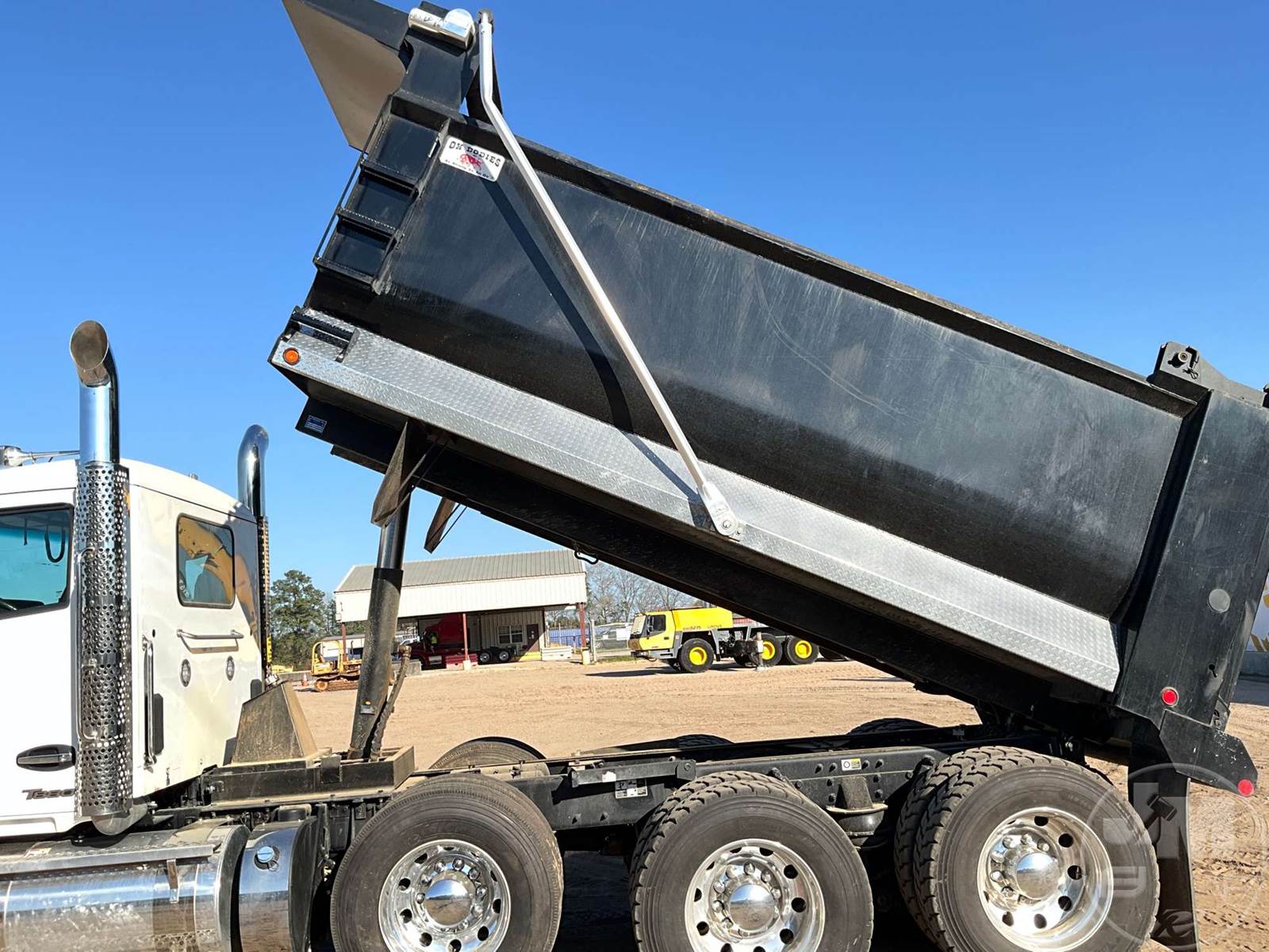 TRI-AXLE DUMP TRUCK, CUMMINS, X15, HP 500, ALLISON, AUTOMATIC, AIR BRAKES, 214 " WB, 20K FRONTS, 46K REARS, DOUBLE FRAME, AIR LIFT, ENGINE BRAKE, DIFF LOCK, REAR AIR SUPPLY, CRUISE CONTROL, A/C, POWER WINDOWS, POWER DOOR LOCKS, POWER MIRRORS, OX BODIES, 16', STEEL, DUMP BODY, SPREADER APRON, TARP, AIR GATE, HIGH LIFT GATE, 87000 LBS GVWR, ALUMINUM DISC WHEELS, 425/65R22.5 STEER TIRES, 11R24.5 TIRES, 11R22.5 LIFT, CHALMERS SUSPENSION, REAR PINTLE HITCH, HOUR METER READS: 918, ODOMETER READS: 10310