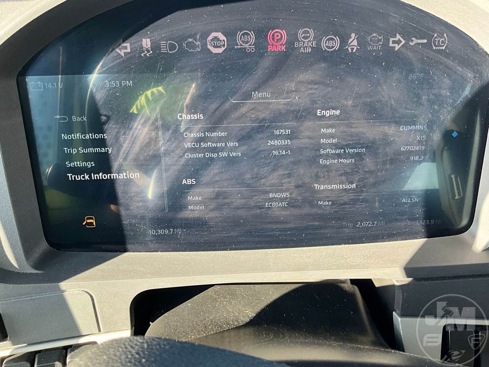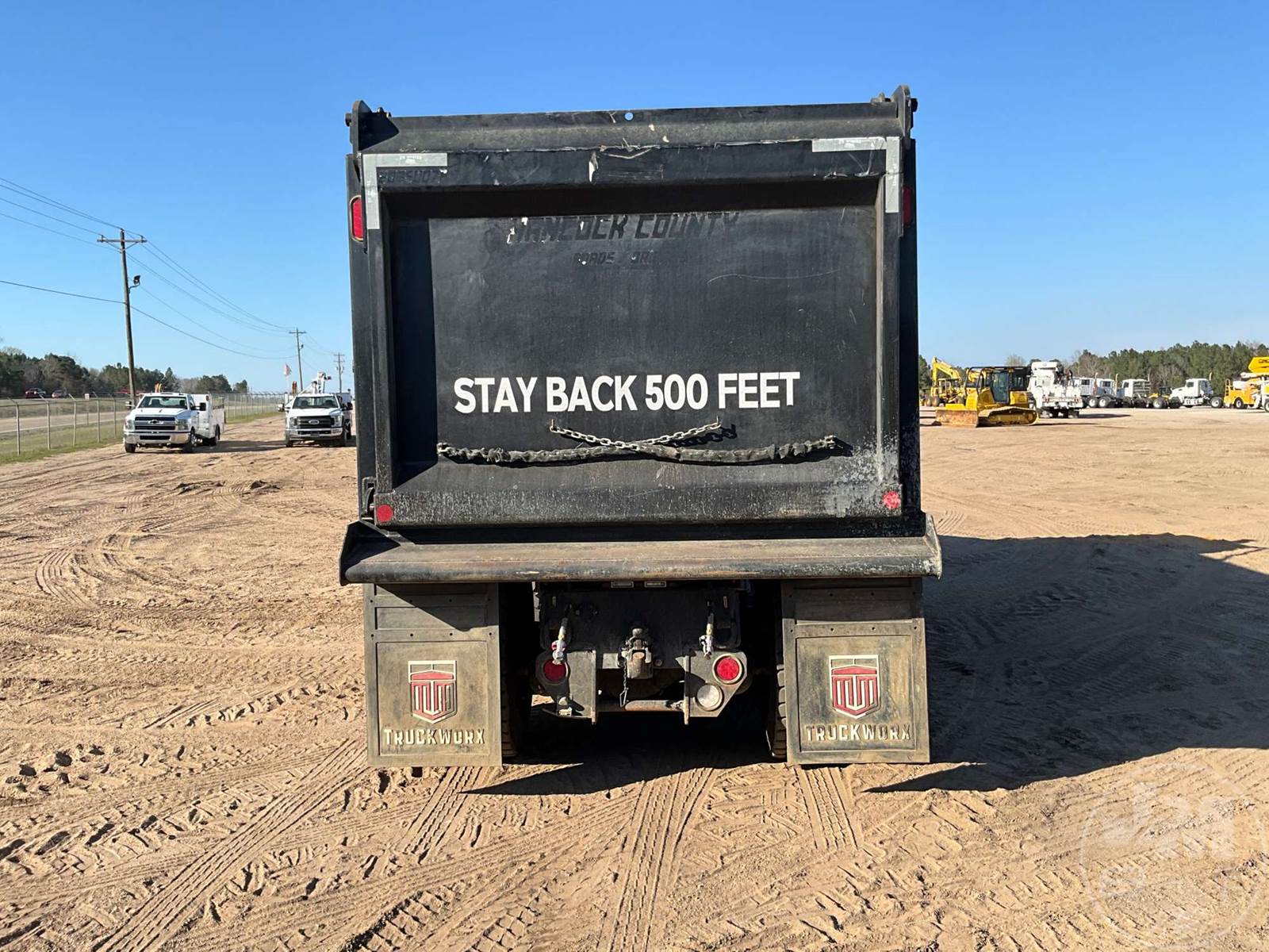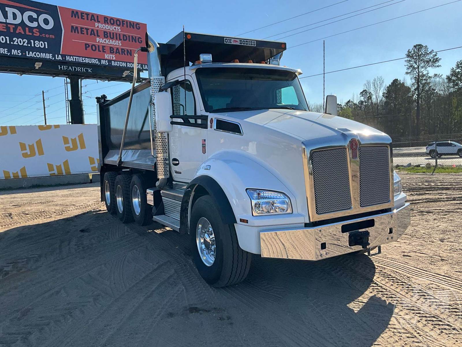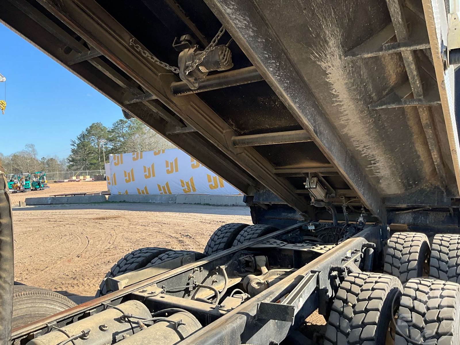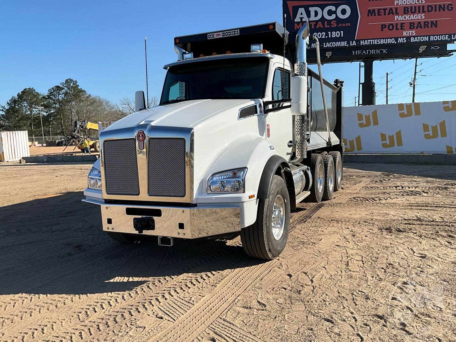 TRI-AXLE DUMP TRUCK, CUMMINS, X15, HP 500, ALLISON, AUTOMATIC, AIR BRAKES, 214 " WB, 20K FRONTS, 46K REARS, DOUBLE FRAME, AIR LIFT, ENGINE BRAKE, DIFF LOCK, REAR AIR SUPPLY, CRUISE CONTROL, A/C, POWER WINDOWS, POWER DOOR LOCKS, POWER MIRRORS, OX BODIES, 16', STEEL, DUMP BODY, SPREADER APRON, TARP, AIR GATE, HIGH LIFT GATE, 87000 LBS GVWR, ALUMINUM DISC WHEELS, 425/65R22.5 STEER TIRES, 11R24.5 TIRES, 11R22.5 LIFT, CHALMERS SUSPENSION, REAR PINTLE HITCH, HOUR METER READS: 918, ODOMETER READS: 10310
