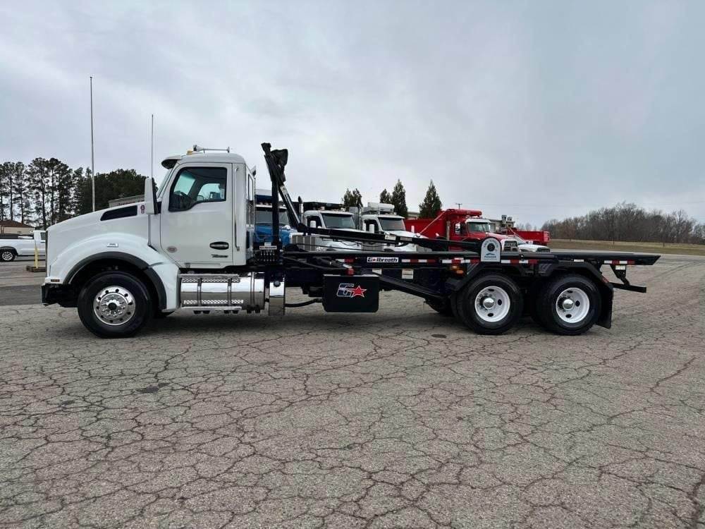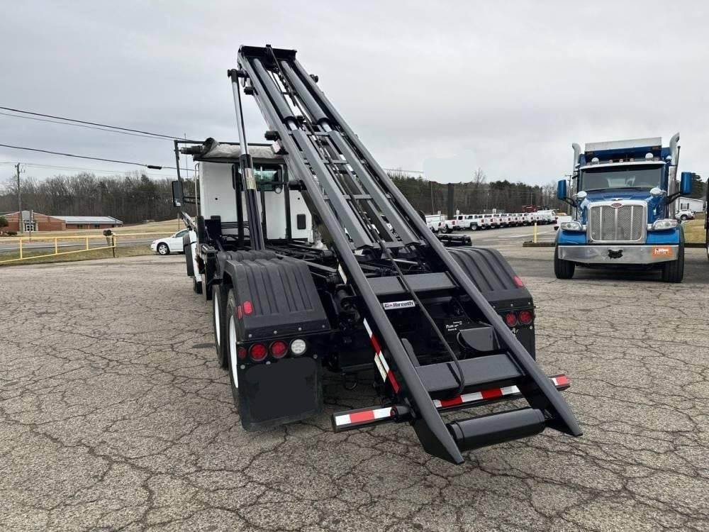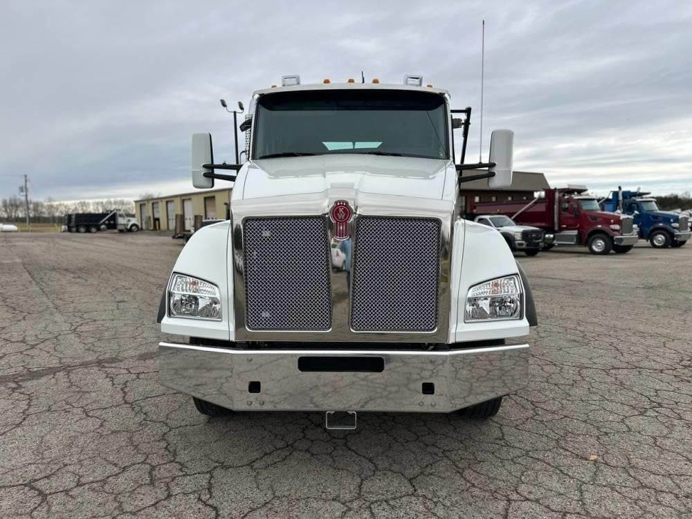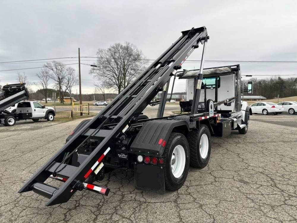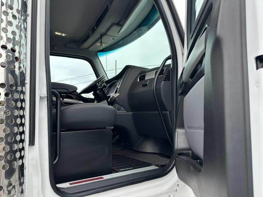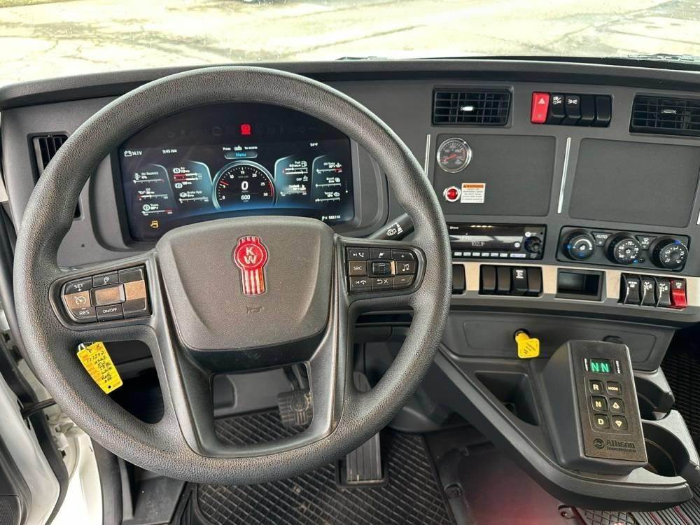 Tandem Axle, X15 Cummins 500 HP, Allison Automatic 6 Speed, 4.56 Ratio, 18,000 Front Axle, 46,000 Rear Axle, 262" Wheelbase, 24' Bridge, HaulMaax, Double Frame, 3 Stage Engine Brake, Axle & Differential, Aluminum Front Wheels, Steel Rear Wheels, Engine Heater Plug, Single Stack, Aluminum Fuel Tank, Daylite Doors, Air Ride Cab, Dual High Back Seats, High Level Interior, Heated Mirrors, Cruise Control, Tilt & Telescopic Steering Wheel, AM/FM, Power Windows, P/L, P/S, A/C, 60,000 lb Galbreath, Pioneer Rack 'n Pinion Hydraulic Tarp System, Full Plastic Fenders, Steel Tool Box, Bluetooth, County Owned