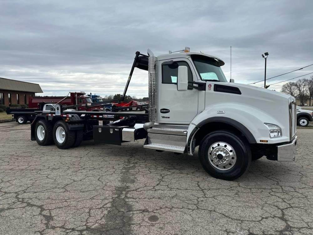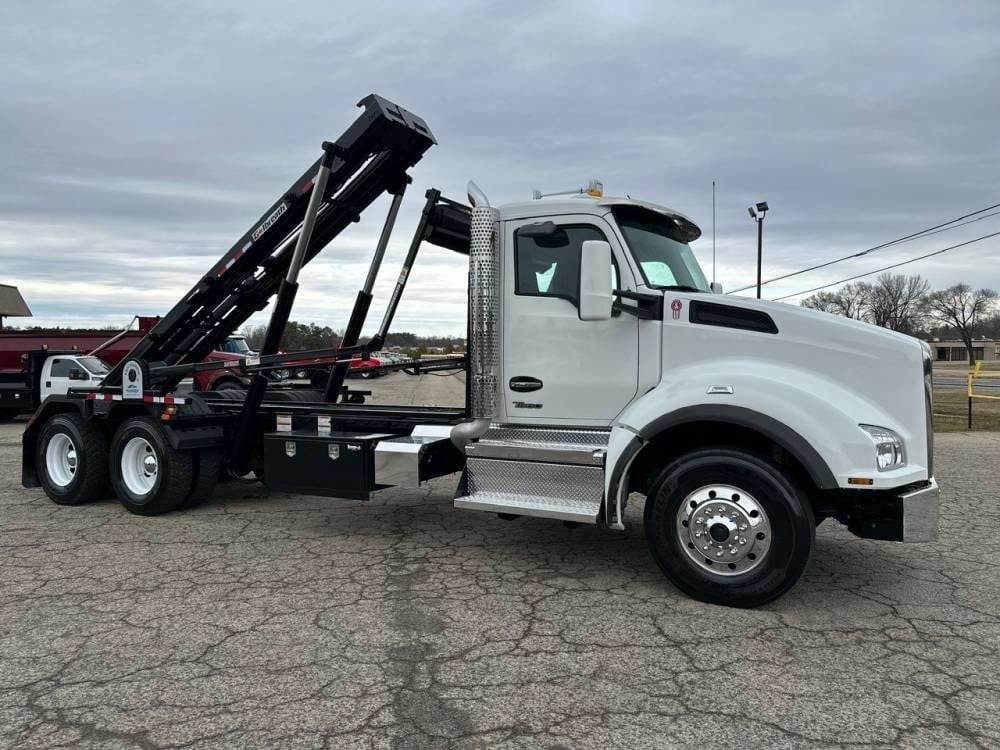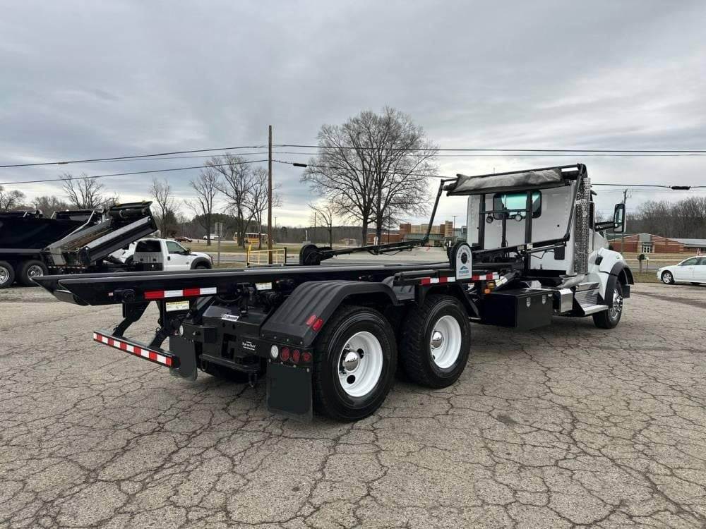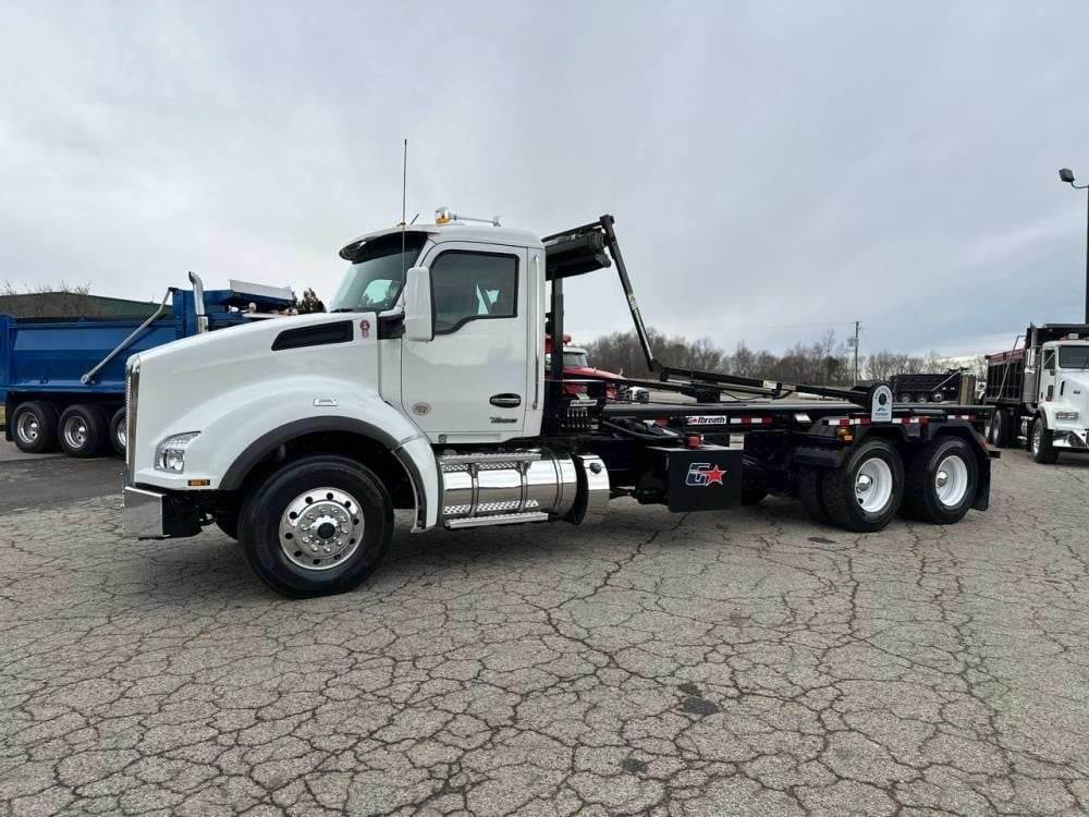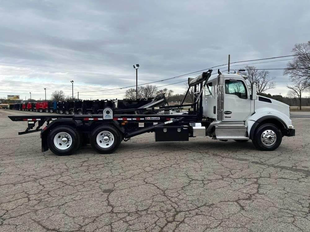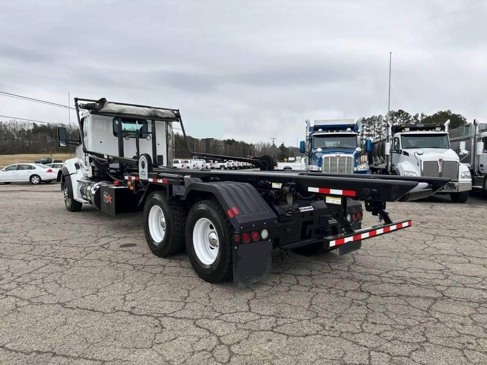 Tandem Axle, X15 Cummins 500 HP, Allison Automatic 6 Speed, 4.56 Ratio, 18,000 Front Axle, 46,000 Rear Axle, 262" Wheelbase, 24' Bridge, HaulMaax, Double Frame, 3 Stage Engine Brake, Axle & Differential, Aluminum Front Wheels, Steel Rear Wheels, Engine Heater Plug, Single Stack, Aluminum Fuel Tank, Daylite Doors, Air Ride Cab, Dual High Back Seats, High Level Interior, Heated Mirrors, Cruise Control, Tilt & Telescopic Steering Wheel, AM/FM, Power Windows, P/L, P/S, A/C, 60,000 lb Galbreath, Pioneer Rack 'n Pinion Hydraulic Tarp System, Full Plastic Fenders, Steel Tool Box, Bluetooth, County Owned