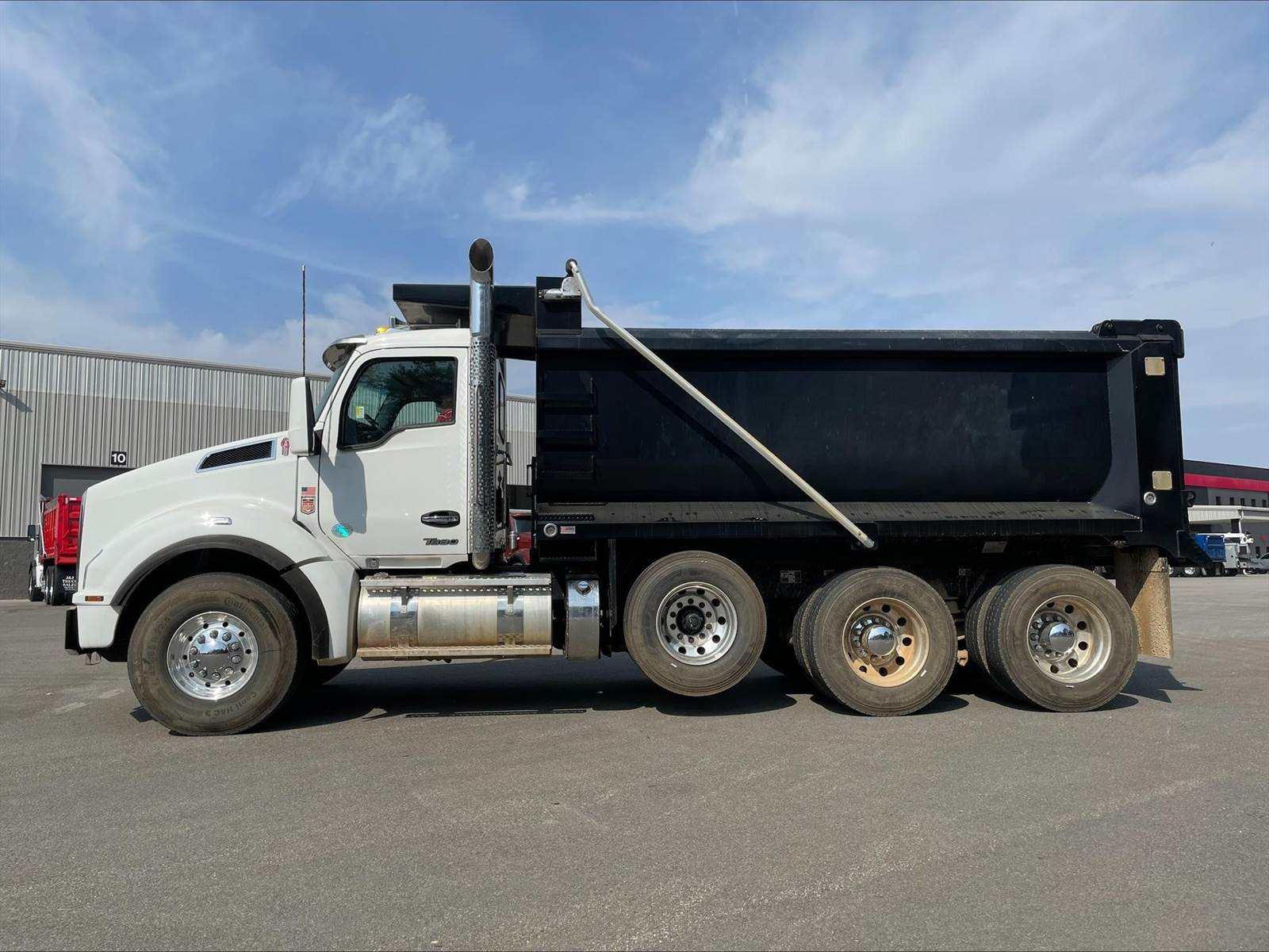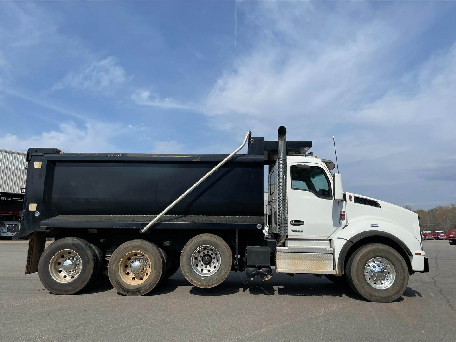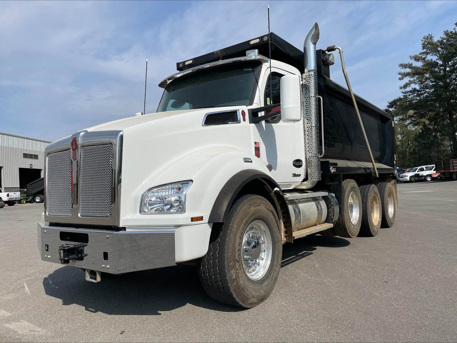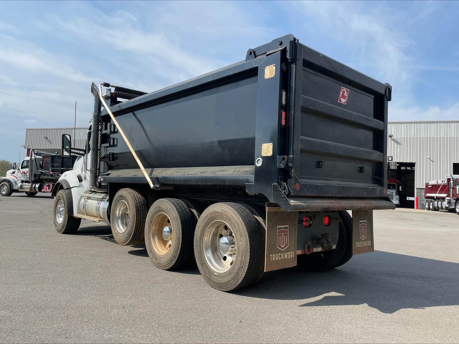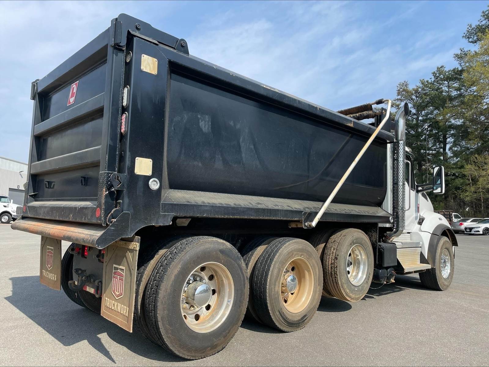 Triaxle, 16' Logan Steel Dump w/60" Sides, High Lift Gate, MX13 Paccar 510 HP, Allison Automatic 6 Speed, 4.78 Ratio, 3 Stage Engine Brake, Double Frame, Chalmers, 20K FA, 46K RA, 20K Pusher, 215" WB, 20' Bridge, Dual P/S Boxes, Full Locking Rears, Swivel Pintle Hitch w/Air and 7 Prong Pole, Electric Tarp, Air/High Lift Tailgate, P/S, A/C, AM/FM Bluetooth, Heated Mirrors, Cruise, Tilt/Tele Wheel, Dual High Back Seats, Power Windows, Locks, and Mirrors, 110 Gallon Aluminum Fuel Tank, 425/65R22.5 Steer Tires on Aluminum Wheels, 11R24.5 Drive Tires on All Aluminum Wheels, Chrome Bumper, COUNTY OWNED, IN SERVICE DATE 3/20/24, MX EMISSISONS WARRANTY 10 YR/435K MILES, ALLISON TRANSMISSION WARRANTY 3 YR/UNLIMITED MILES, EPA EMISSIONS WARRANTY 5 YR/100K MILES