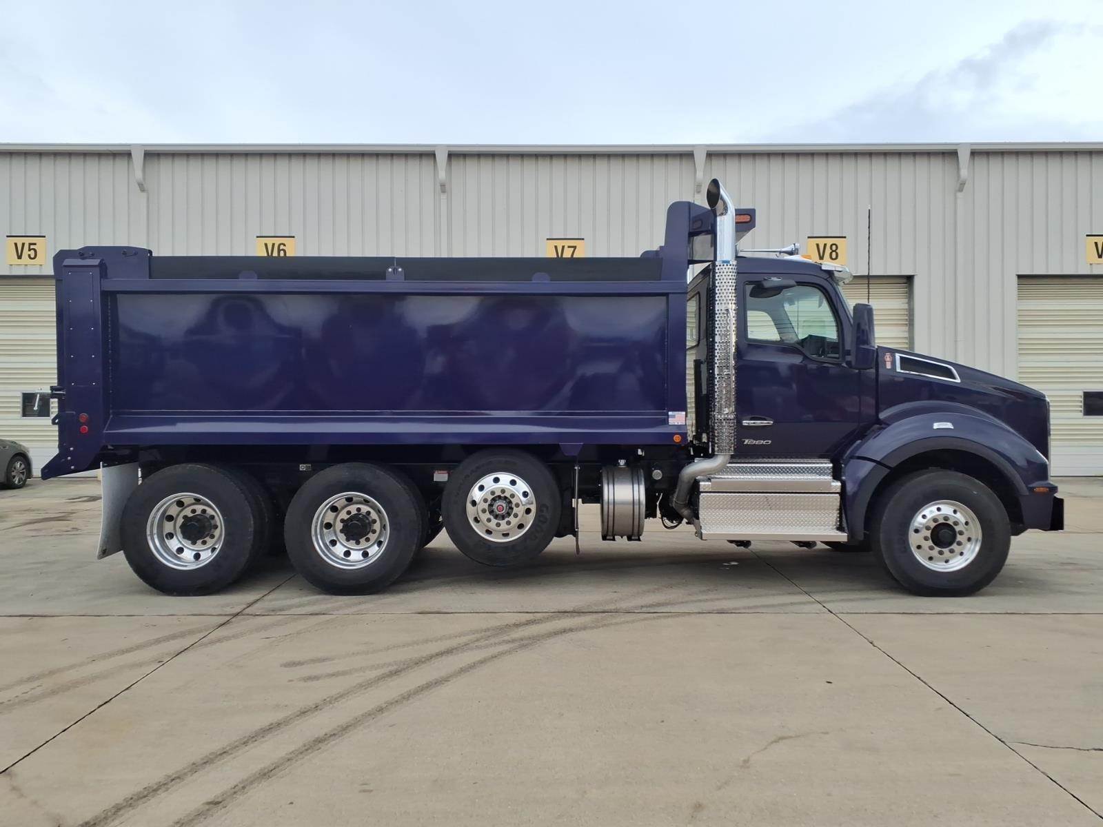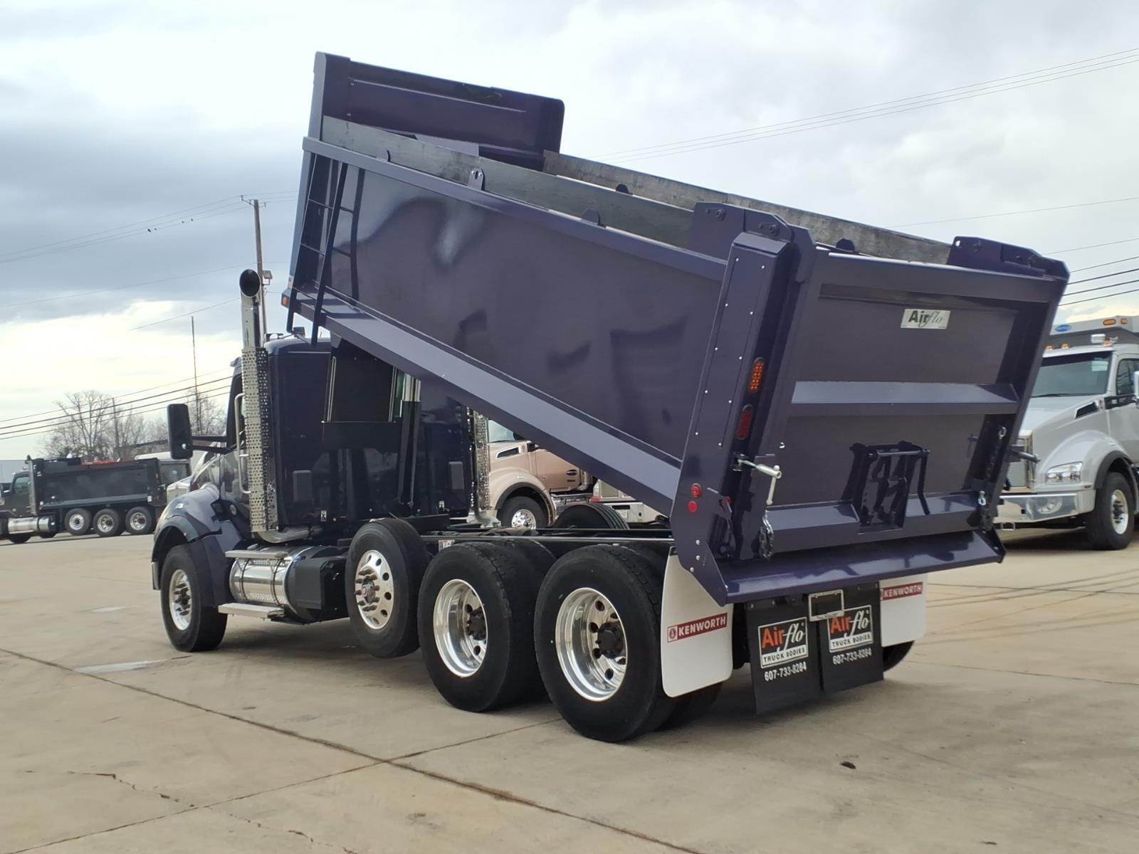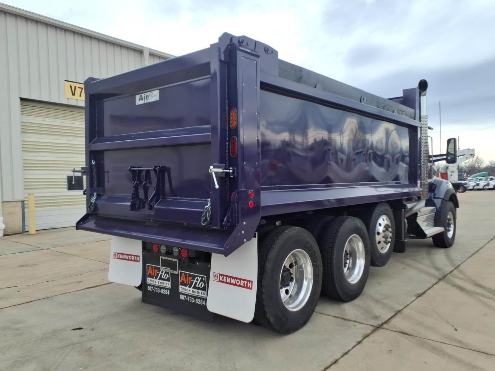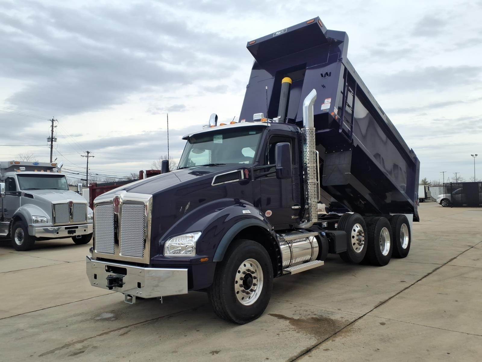 Model Year: 2025 Model: Kenworth T880 Series Conventional Engine: PACCAR MX-13, 510 horsepower @ 1600 RPM, 1850 lb-ft torque @ 1000 RPM, equipped with engine brake Transmission: Allison 4500RDS, 6-speed automatic Front Axle: Dana Spicer D2000, 20,000 lbs rating Rear Axle: Dana Spicer D46-172, tandem axle, 46,000 lbs rating, rear axle ratio 4.30, equipped with locking rear differential / crosslock Pusher Axle: Steerable pusher axle, rated at 13,500 lbs Rear Suspension: Kenworth AG460, tandem air suspension Full Steel Inserts / Double Frame: Yes, equipped GVWR: 79,200 lbs Wheelbase: 221 inches Cab-to-Axle: 147 inches Fifth Wheel: N/A (flatbed body configuration) Brakes: Drum brakes on both front and rear axles Wheels: Front: Alcoa Ultra One high polish aluminum wheels, 22.5x9 Rear: Alcoa Ultra One high polish aluminum wheels, 24.5x8.25 Pusher Axle: Alcoa Ultra One high polish aluminum wheels, 22.5x8.25 Tires: Front: Goodyear Endurance WHA, 315/80R22.5 Rear: Goodyear Endurance LHD, 11R24.5 Pusher Axle: Goodyear Endurance LHS, 11R22.5 Fuel Tank: 90-gallon aluminum fuel tank, located under the cab DEF Tank: 14-gallon, located on the left-hand side Exterior Color: Lobelia (Purple) Interior Trim: Vantage Daycab interior in Slate Gray Radio: Kenworth DEA710 AM/FM/WB/USB with Bluetooth Seating: Driver seat: Kenworth GT701 high-back seat, Duracloft with vinyl, air-ride suspension Passenger seat: Kenworth GT100 high-back toolbox seat, Duracloft with vinyl Additional Features: Kenworth Smart Wheel with integrated radio and cruise control Power windows, power door locks Tilt/telescoping steering wheel Heated power mirrors Stainless steel exterior sun visor Air-Flo Dump Body: - 17' Hardox steel dump body - 54" side height - 60" tailgate height - Coal door in tailgate center - Salt locks (pair) - 8" bolt-on spreader apron - Hi-lift tailgate kit - Side boards - Ladder on outside and inside - Shovel holder - Strobe lights in corner posts and on cab - Center mud flap - Side reservoir kit Discover the benefits of partnering with All Roads Trucks for your commercial vehicle needs. We offer an extensive network of finance lenders providing competitive rates and favorable terms for small businesses, from independent owner-operators to large fleets and municipalities. Protect your investment with our factory extended warranty coverage for new truck purchases and standalone extended service agreements for vehicles nearing or past warranty expiration. Our dealerships, including All Roads Kenworth, All Roads Isuzu, All Roads Ford, TRP Parts, RMS Truck Bodies, and West End Service, are here to support you with 23 locations throughout the Mid-Atlantic states and South Florida. As part of the All Roads corporate family, which includes All Roads Equipment, All Roads Kubota, Vermeer All Roads, and the Norris Automotive Group, we proudly operate 50+ dealerships across 20+ states since 1917. Visit us online or call us today to learn more about how we can serve you. All Roads Trucks – Service at Every Turn. *Disclaimer: Images shown are for illustrative purposes only and may not necessarily represent the specific unit described herein. All specifications and features are subject to verification. Prospective buyers are strongly advised to confirm all details and specifications prior to purchase. For the most accurate and up-to-date information, please contact an authorized dealer representative. The information provided in this summary does not constitute an offer for sale or a binding agreement. Terms, conditions, and availability may vary. All Roads Trucks reserves the right to make changes to specifications, features, and availability without prior notice. All vehicle photographs and images provided in our listings are for demonstration purposes only. The vehicles shown may differ in color, equipment, and options. The advertised price does not include Federal Excise Tax (FET), if applicable, nor does it include any other taxes, fees, transportation costs, or additional optional equipment, services, or coverages. All pricing is subject to change and may vary based on specific vehicle customizations or market conditions. Please verify all details with our dealership to confirm the final price, color, equipment, and any applicable charges before purchasing.