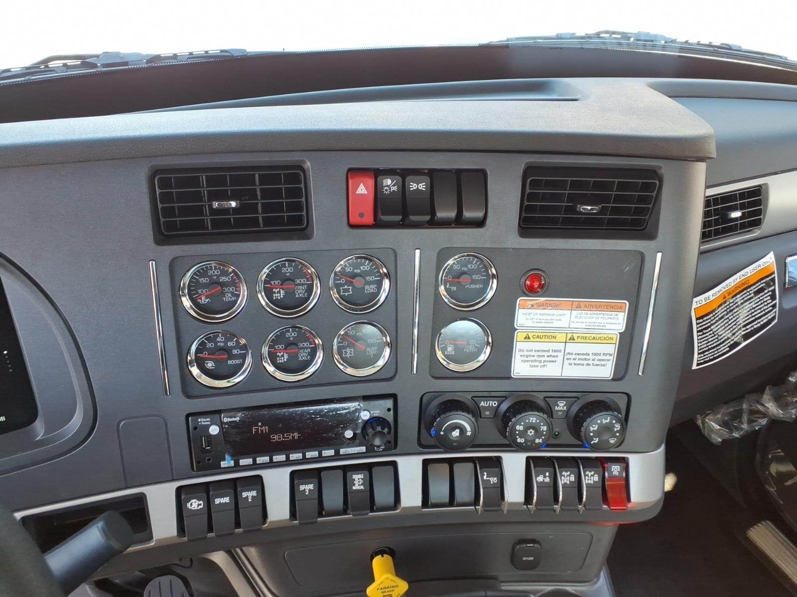 15" Digital Display Main Instrument Package. Kenworth GT701 High Back Air-Ride Driver Seat with Duracloth and vinyl. Kenworth GT100 High Back Toolbox Passenger Seat. Air Conditioning with Auto Temperature Control. Kenworth Radio DEA710 AM/FM/WB/USB, Bluetooth. Power windows and door locks. Tilt/telescoping steering wheel. Kenworth SmartWheel with integrated radio & cruise controls.