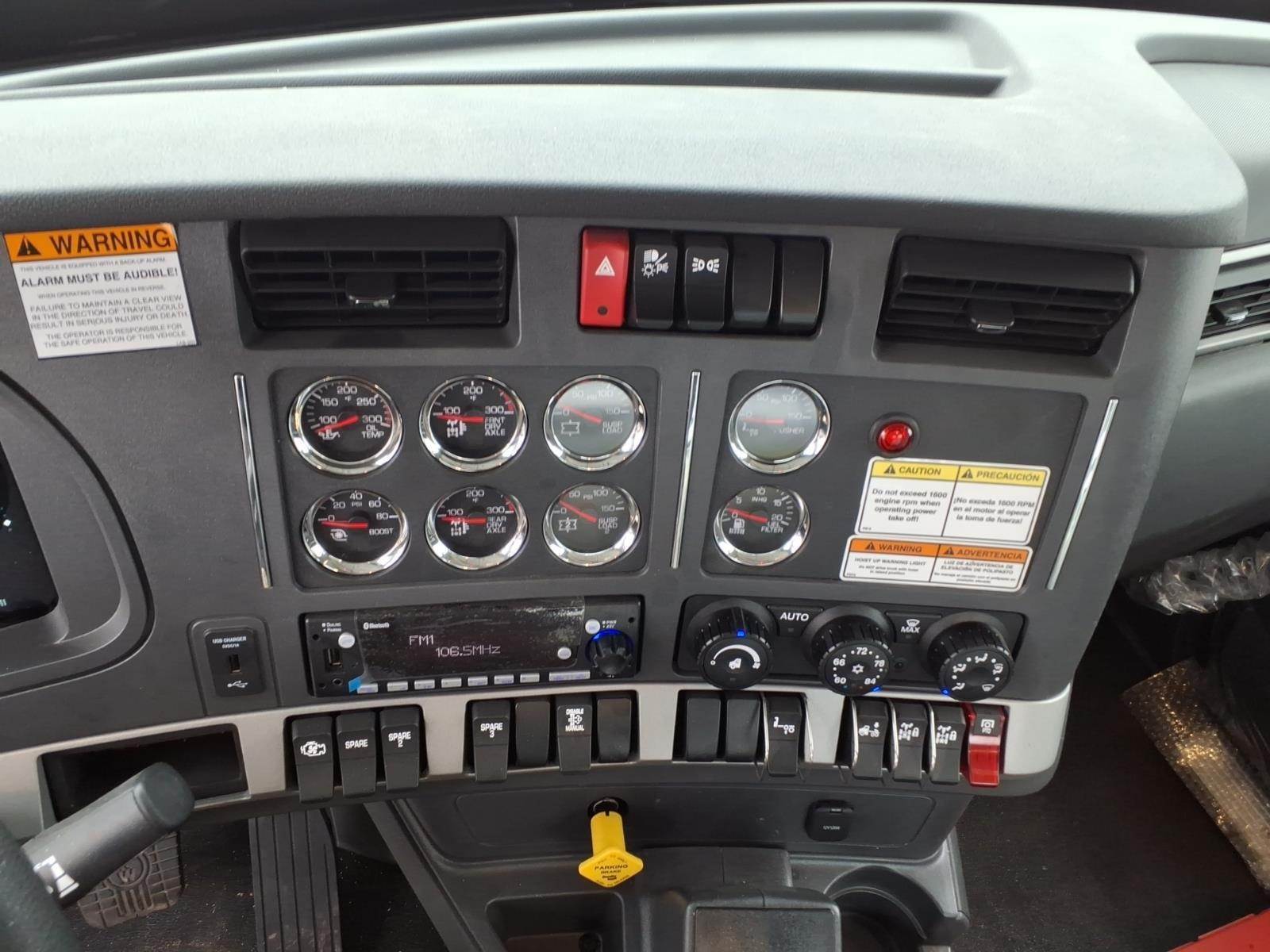Polished/Chrome Items: Chrome steel channel bumper, bright engine air intake, polished aluminum fuel tank, polished tank straps, stainless steel permit panel, dual rectangular 23" air horns with covers, stainless steel sunvisor, mirror polished outboard surface of front, rear, and pusher wheels