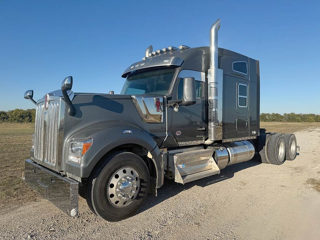 2025 KENWORTH W-990 Conventional, 76 Inch Mid-Roof Sleeper, Upper Bunk, 86,000 Approximate Miles, PACCAR MX-13 Engine, 510 H.P., Balance Of 5 Year 500,000 Mile Warranty, Engine Brake, RTLO-18918B Transmission, (Manual), 40,000 Lb. Rear Ends, 3.36 Ratio, Air Ride Suspension, GPS Navigation, Hydraulic Power Steering, Air Conditioned, Chrome Bumper, Dual Aluminum Fuel Tanks, Dual Chrome Stacks, Stainless Steel Exterior Visor, Cab Extenders, V.I.T. Interior, Tilt And Telescoping Steering Wheel, Cruise Control, Power Windows, Air Slide 5th, 280 Inch Wheel Base, 22.5 Low Profile Tires, Aluminum Disc Wheels.