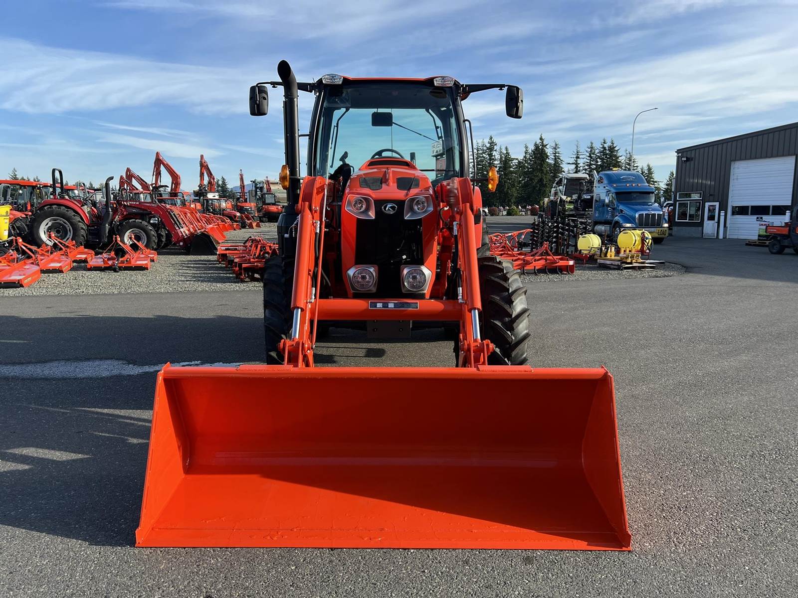 2025 KUBOTA M6-111DTC-F-1 Utility Tractor - Kubota turbocharged intercooled diesel engine, Intelli-Shift transmission with 24 forward and 24 reverse gears, LA1955 loader with quick attach bucket, 12.4-24 front tires, 420/85R34 rear tires, two rear remotes, rear 3Pt., rear PTO, Kubota Electronic Management System, main and side digital LCD panel.