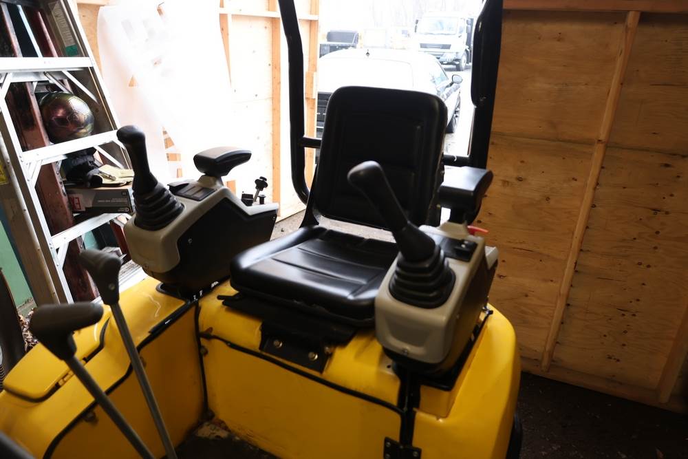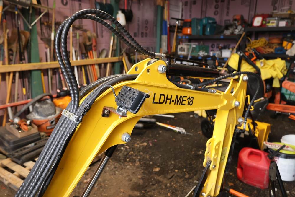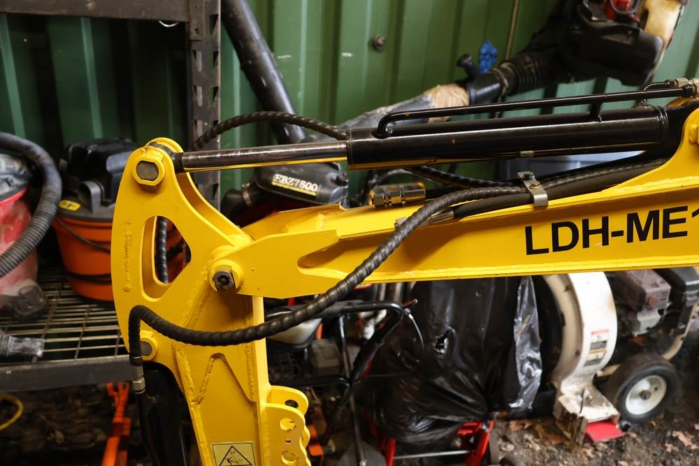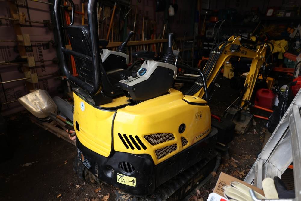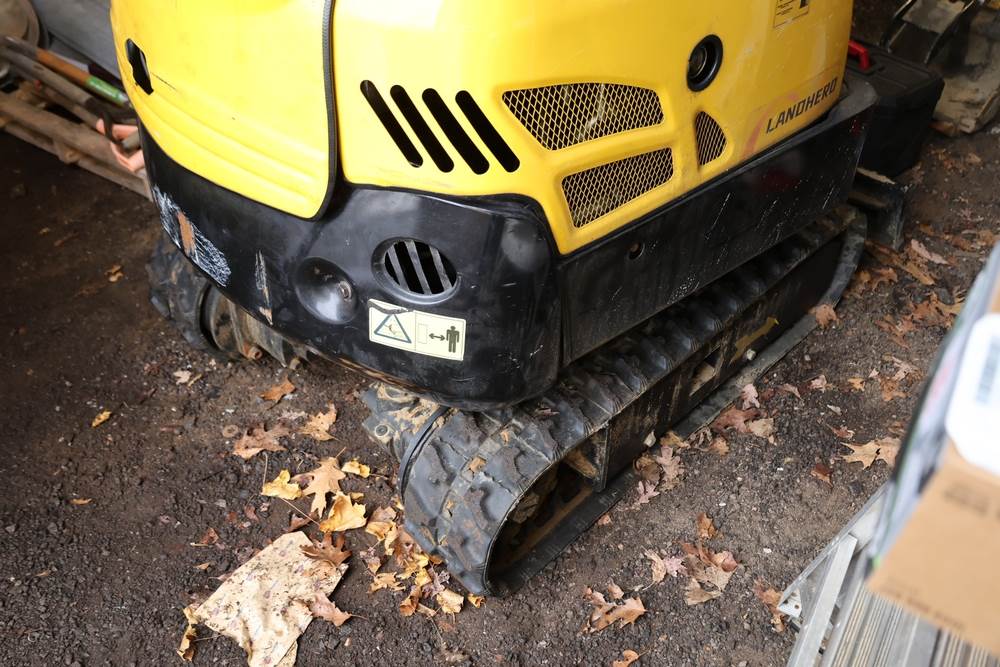 Landhero mini excavator, model LDH-ME18-XX, serial number 2408142454, manufactured Mar. 17th 2025. Rated power 11.4 hp, operating weight 2200 lb, capacity 0.03 yd3, shipping dimensions 115 x 38 x 95 in. Hour meter reads 22.8 hours. Open operator station with seat and dual control joysticks, rubber tracks, front blade, and hydraulic boom with bucket attached. Seller reports runs and operates as intended.