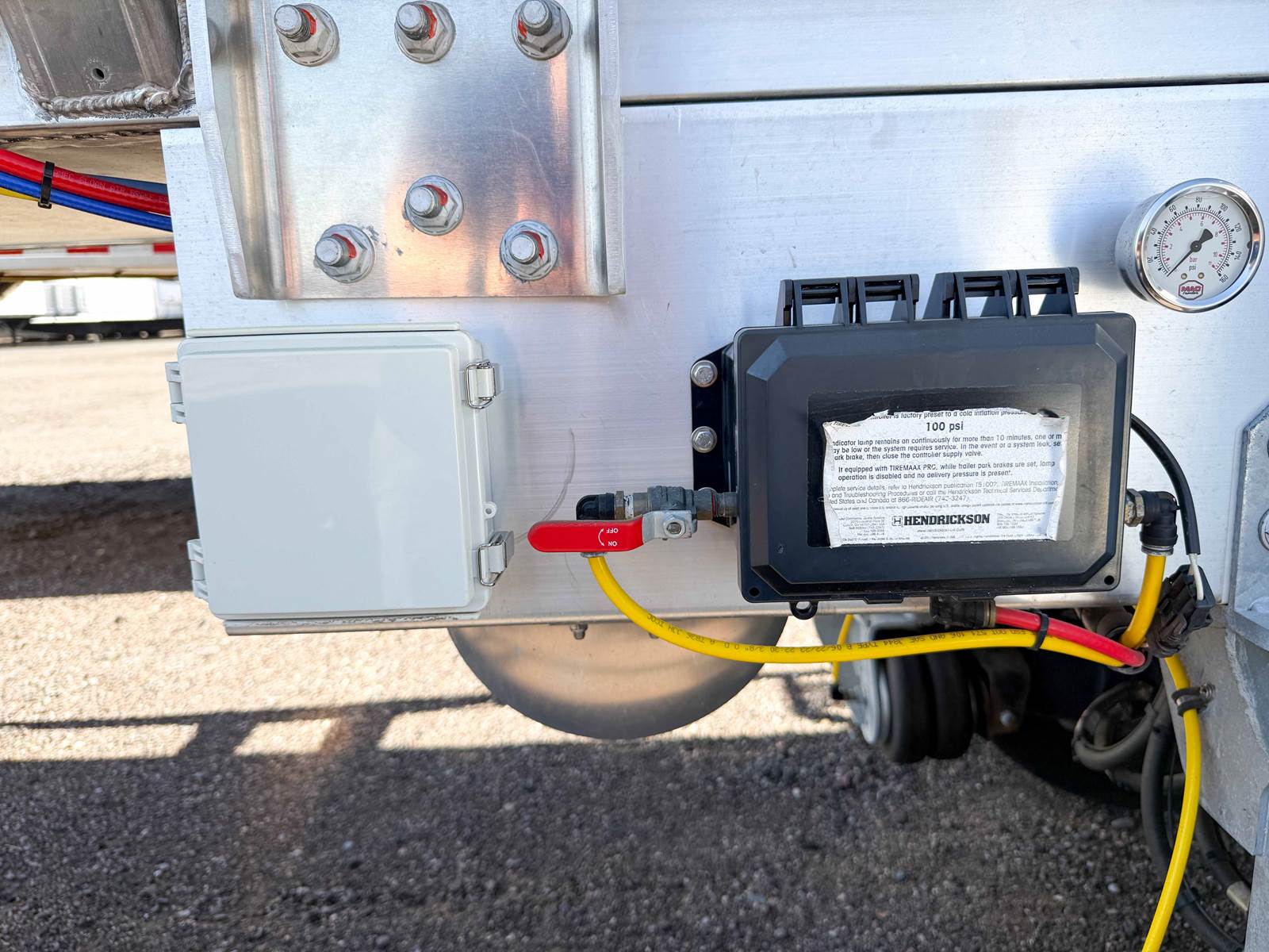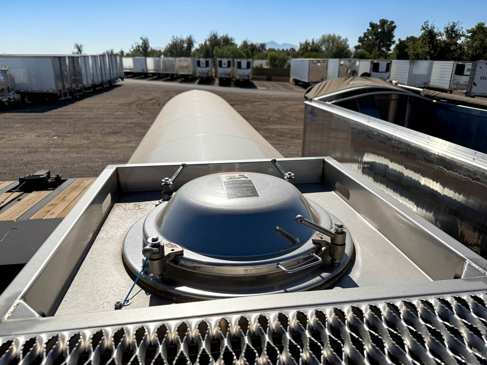 Sanitary Transport Code 3-A, Straign Round with slope to rear, 211degree F max temp, one manway in center, Hendrickson Intraxx AANT23K, 23,000 lb, Auto Sensing UBL Lift Kit on Front Axle with Toggle Override in Cabinet, wabco roll stability ABS, Tire Flation system,