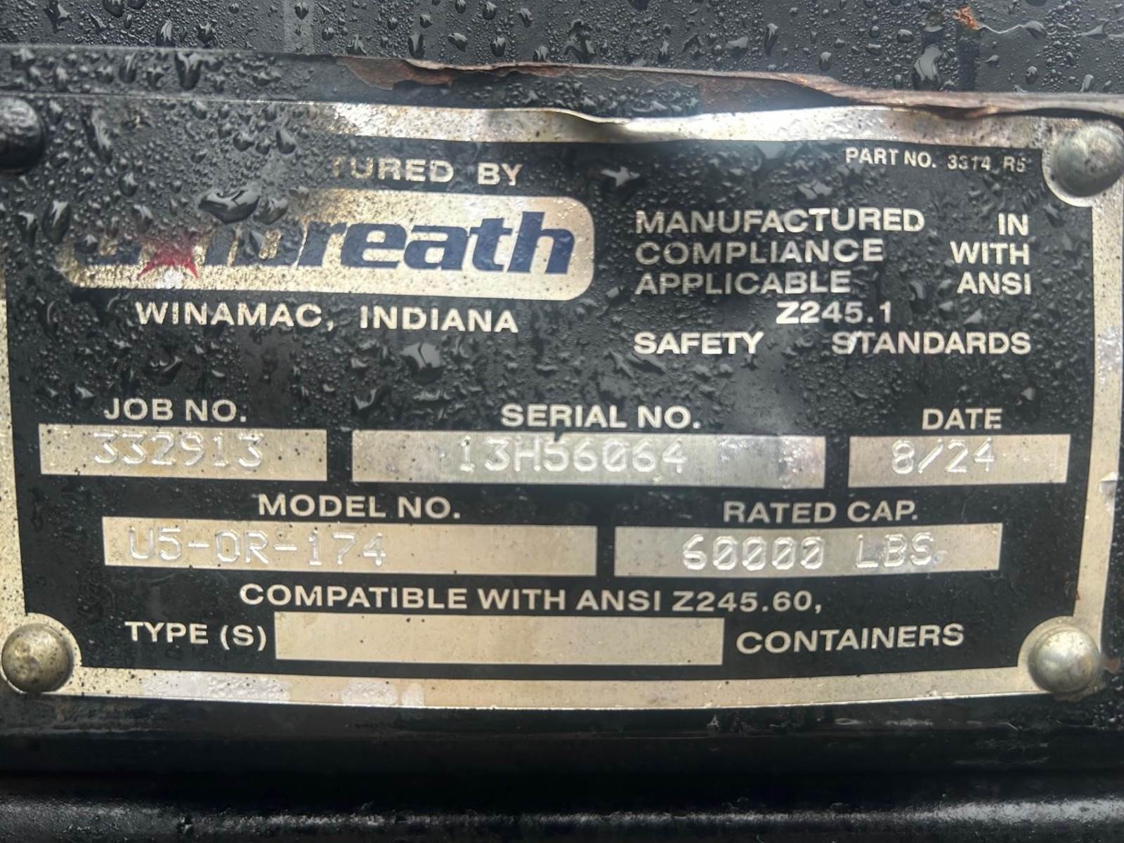 Galbreath U5-OR-174 60,000 LBS. Extended Factory Warranty 5/250 Plan 2 + Emissions