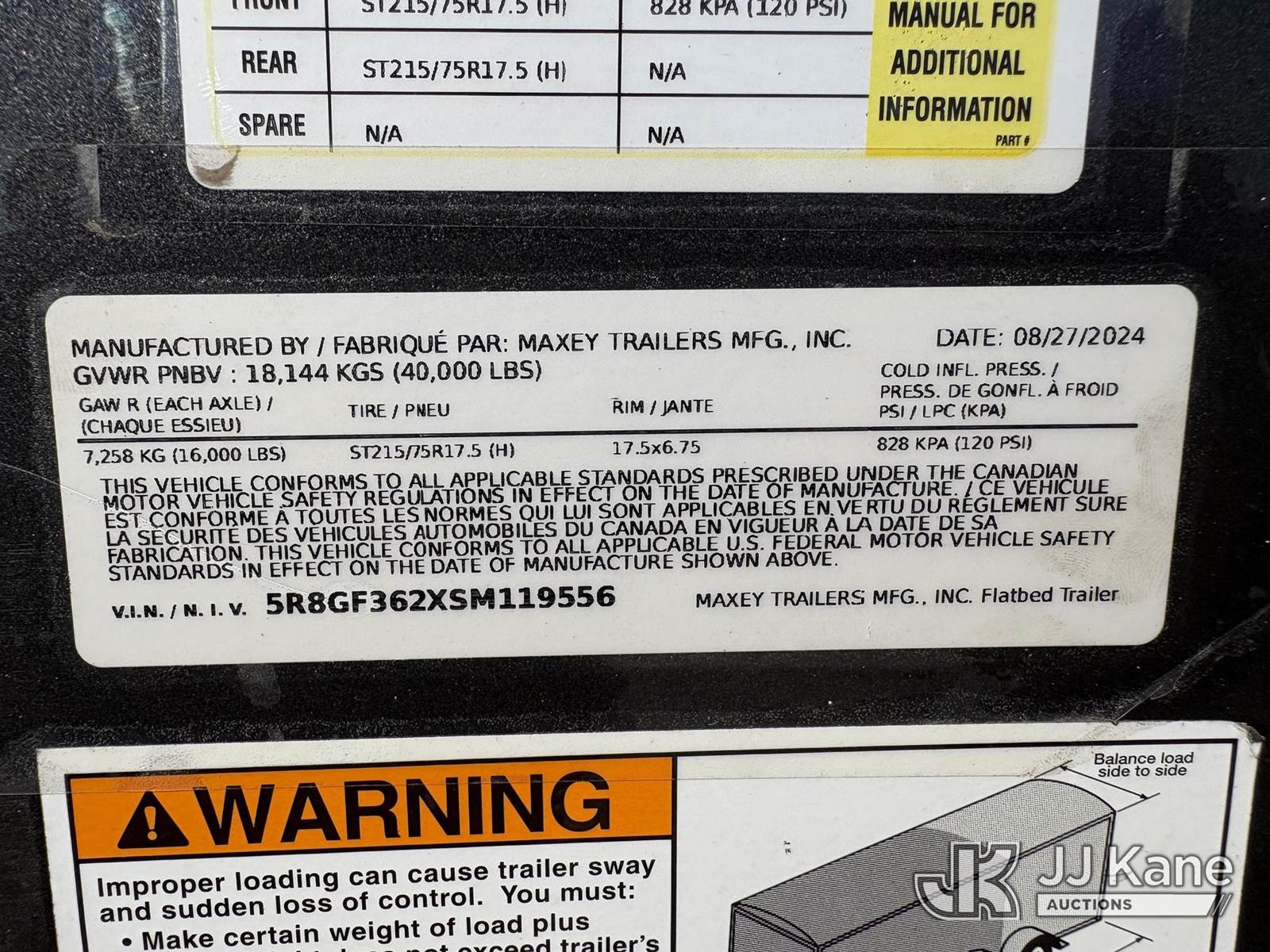 2025 Maxey T/A Gooseneck Equipment trailer, with 31 foot flat deck, 5 foot dove tail with fold down ramps., This is a Titled Item NOTE: This unit is being sold AS IS/WHERE IS via Timed Auction and is located in Hawk Point, MO. Inspection & preview days for this unit are the 2 business days prior to the first day of items closing for this auction, item is located at 25 State Highway A Hawk Point, MO 63349 and hours of operations are 8a-4p. For pre-sale questions, please contact Adam Stanek at (636) 295-1594. (Buyer is responsible for removal. Assistance by consignor or JJ Kane Auctions is not assured.)