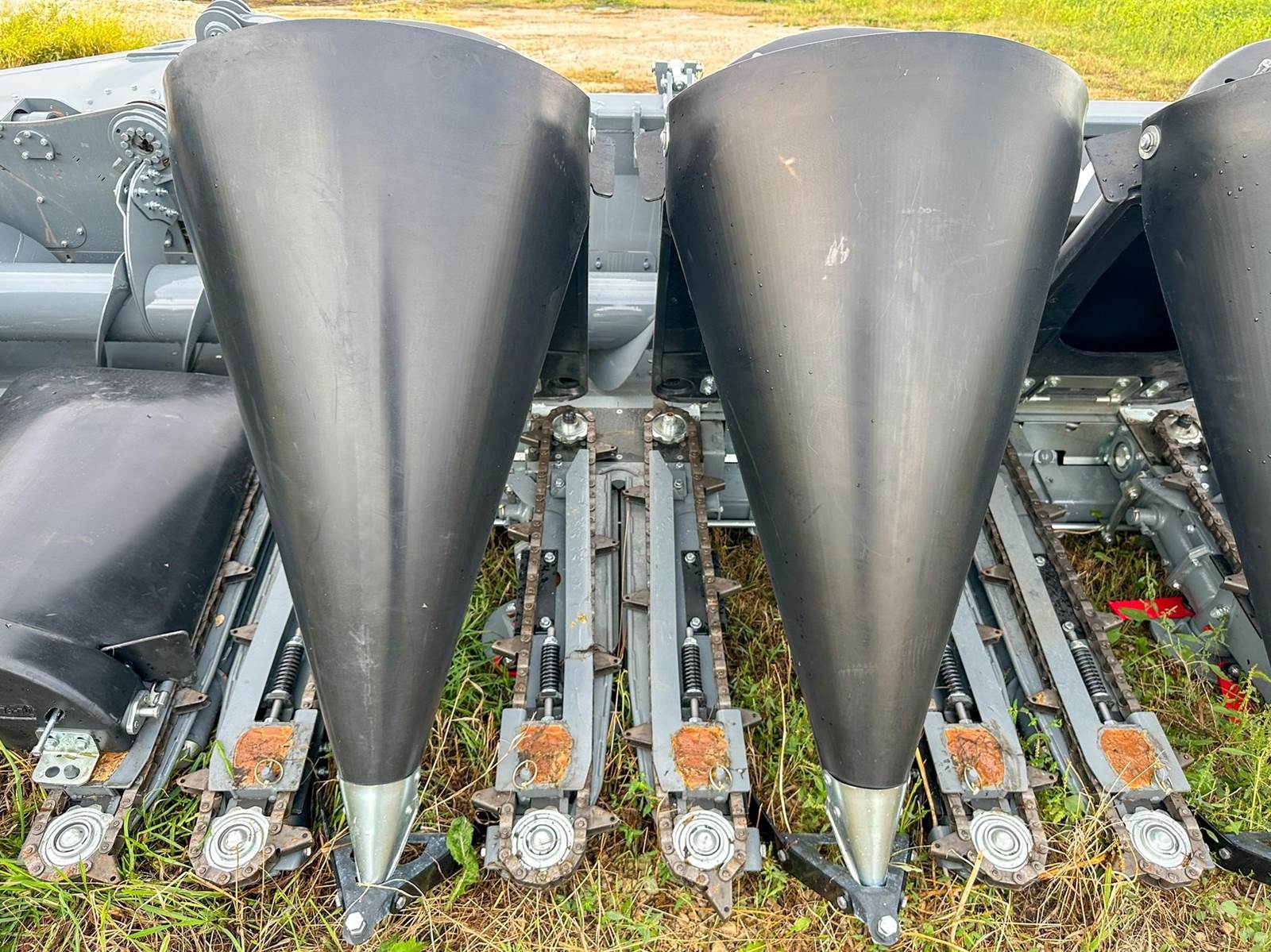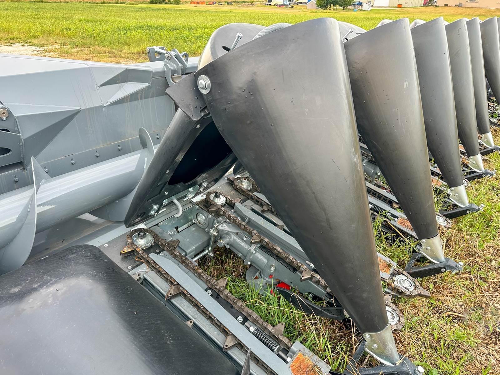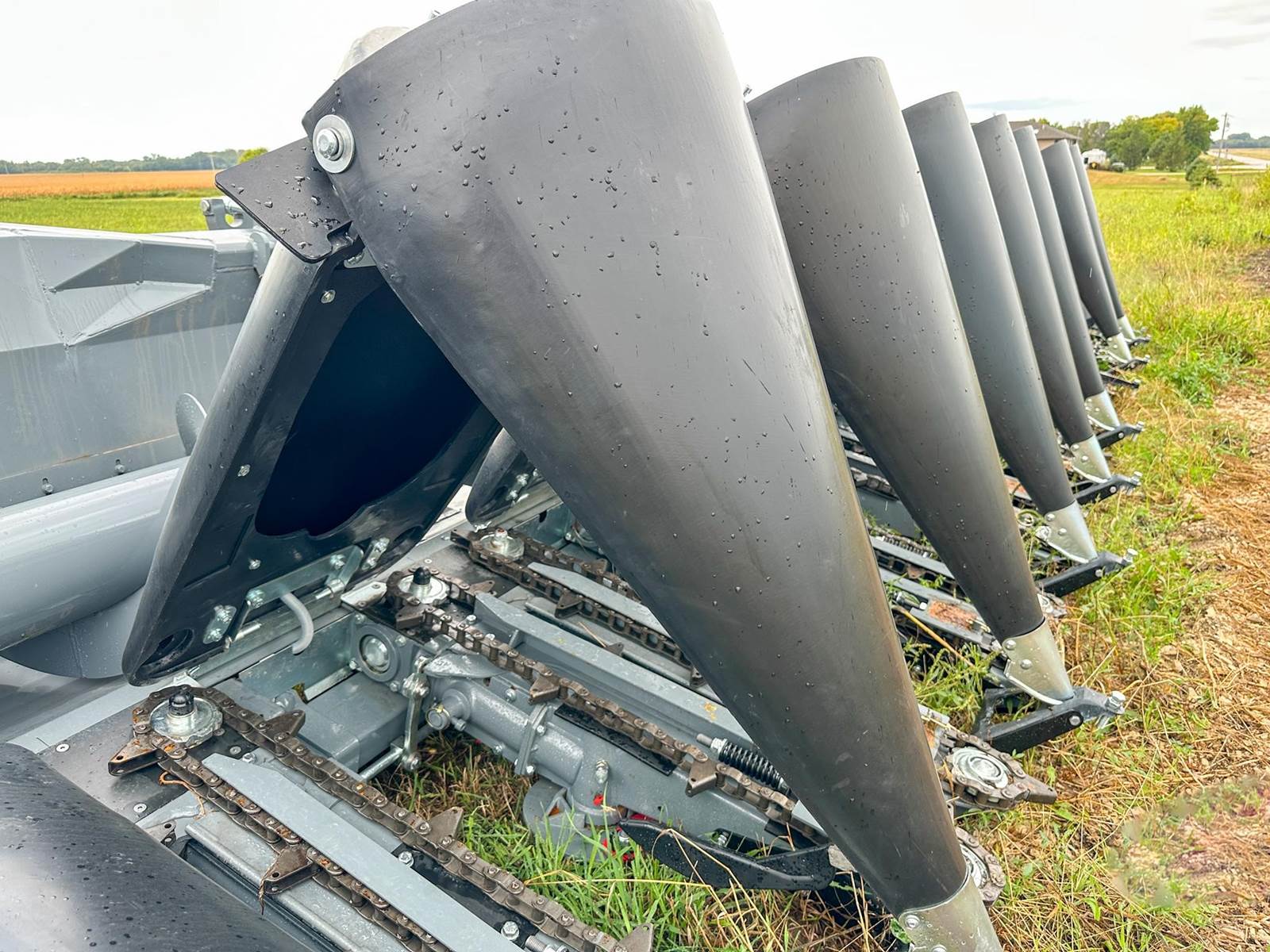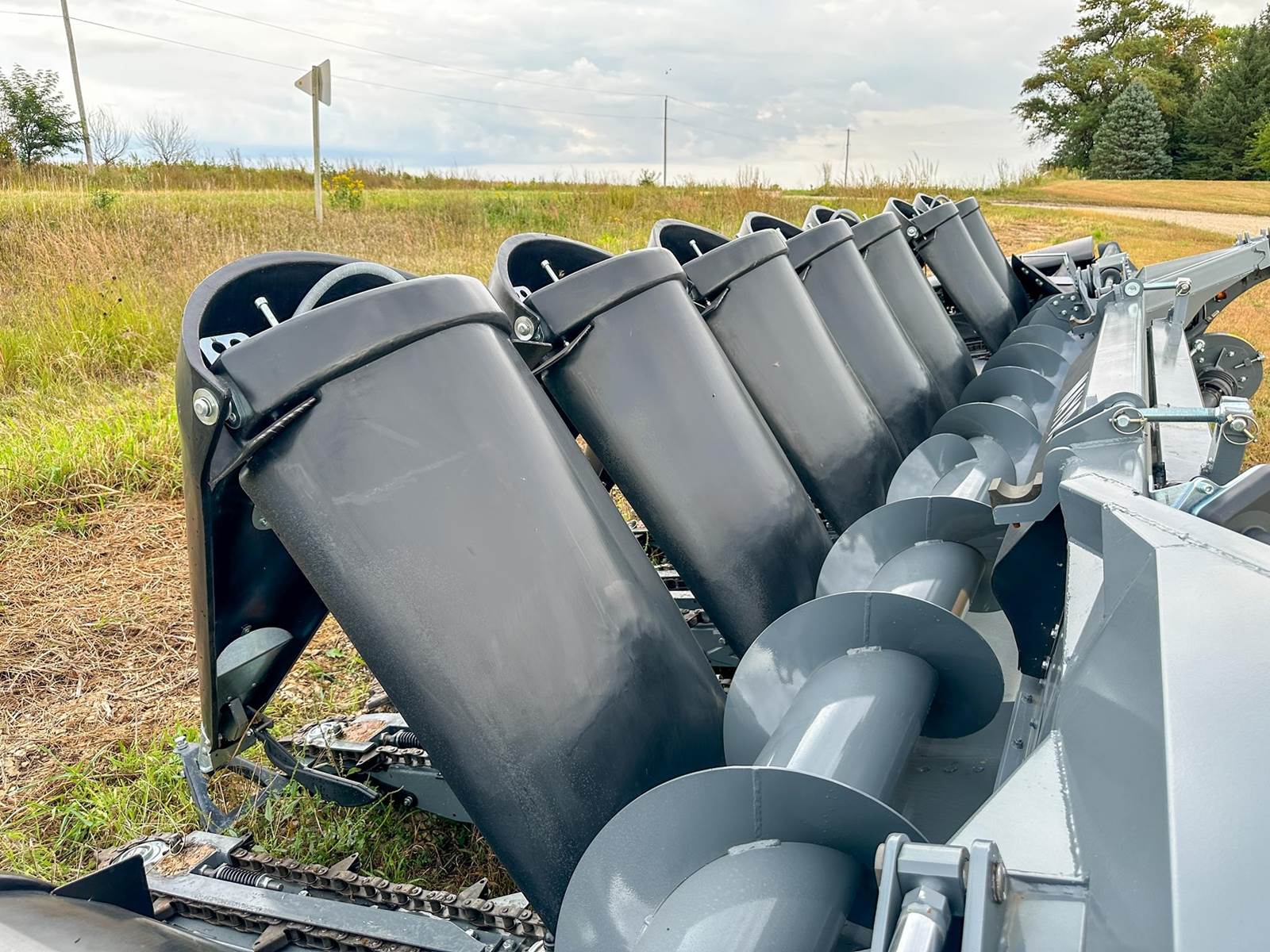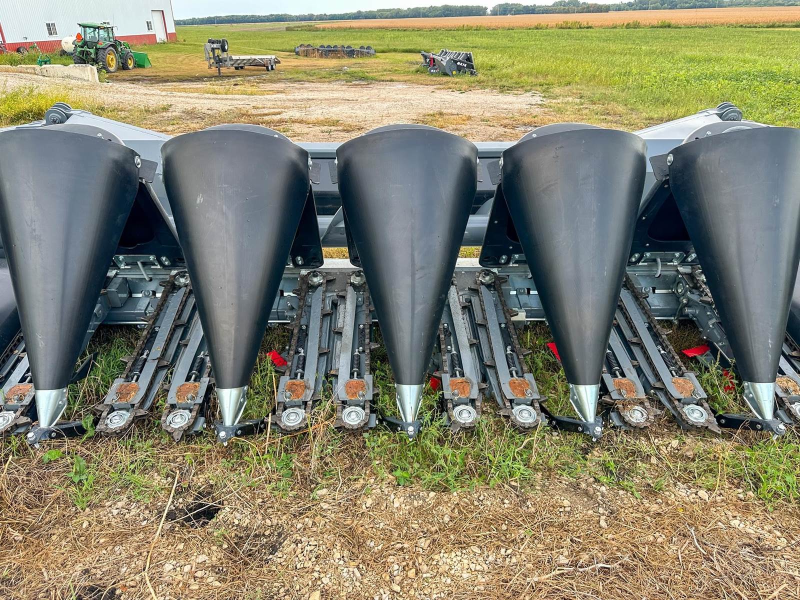 Enjoy $0 Down Financing with No Payments for 6 Months, Affordable Nationwide Delivery, and Unbeatable Prices! New Maya Corn Head w/ Hydraulic Fold, Chopping with On/Off, HeadSight Auto Height Control, Poly Bonnet and Snoots, 36" Deck Plates for Larger Row Units that Run Flatter to the Ground, 6-Blade Rollers, Integrated Slip Clutches in each Row Unit, 3 Year Warranty w/ Unlimited Acres, and more! 2 snouts temporarily removed for transport.