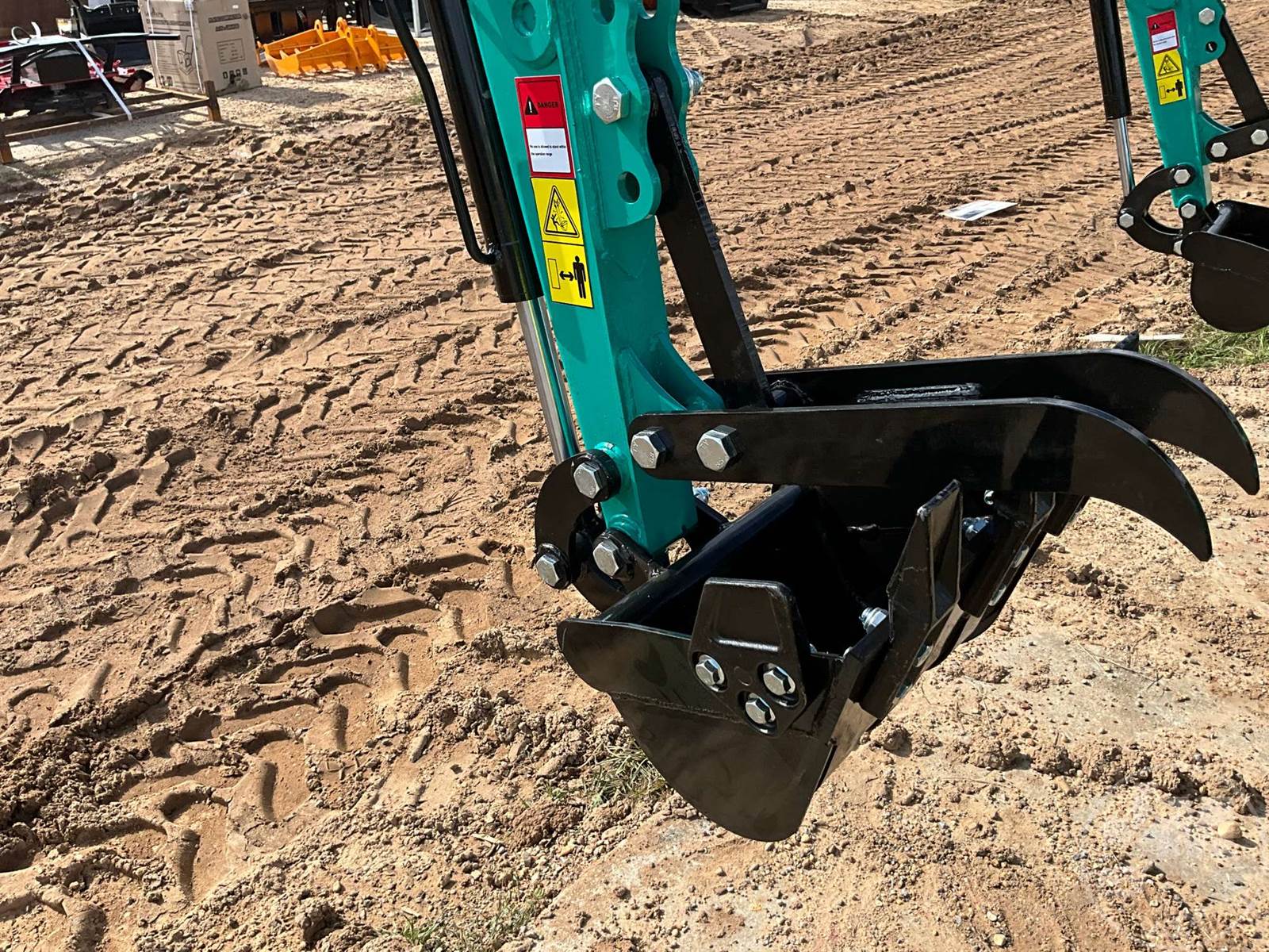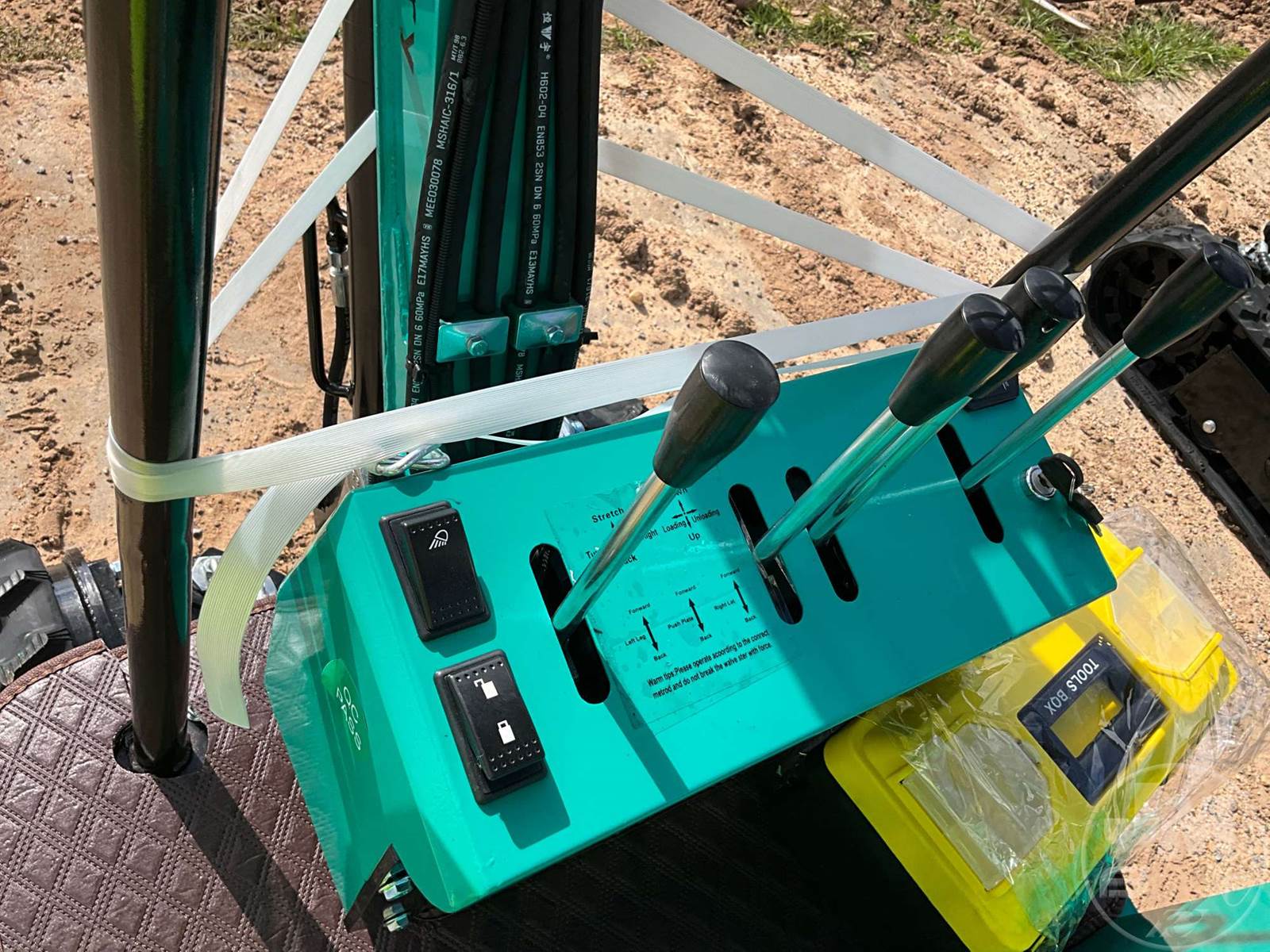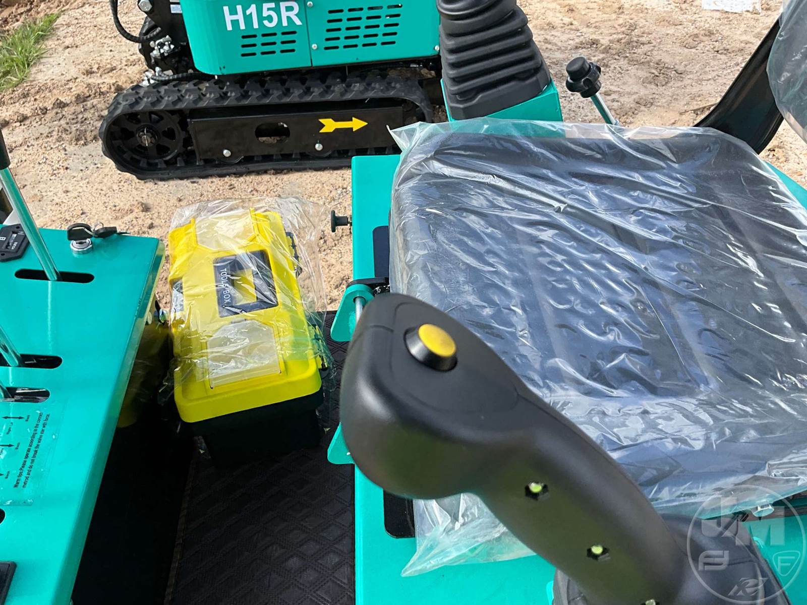 UNUSED MINI EXCAVATOR, CANOPY, 2'7 STICK, 16" BUCKET, MANUAL COUPLER, HYDRAULIC THUMB, S/L DRIVE PEDAL, DOZER, RUBBER TRACKS, HOUR METER READS: 0