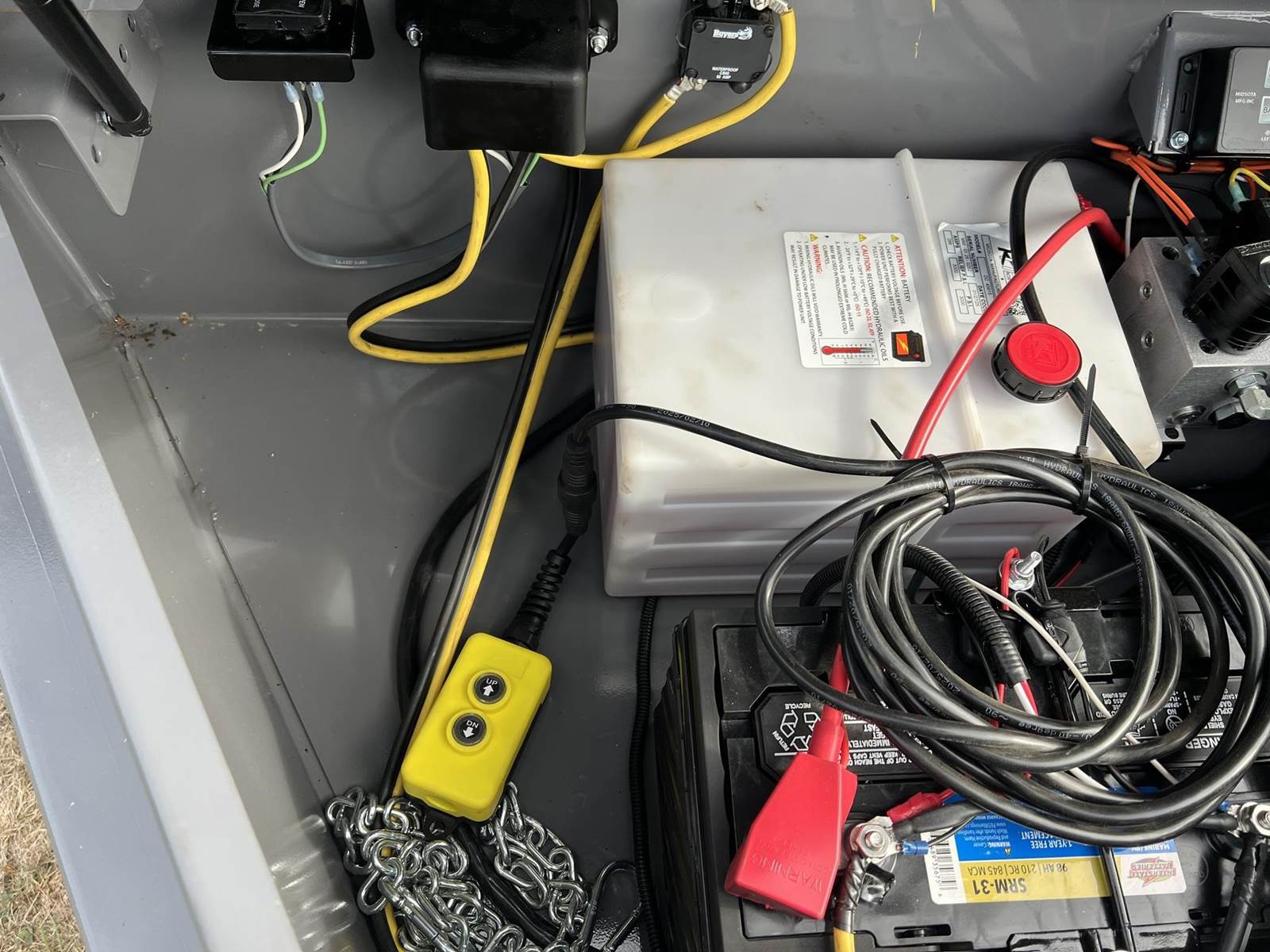 2025 MIDSOTA NHV14T-BP-176 Dump Trailer - telescopic hydraulic hoist, 17,600lbs GVWR, 12,950lbs payload, 14' length, tuck under 6' ramps and carriers, 6 D-Ring tie downs, rear double door, side single doors that swing all the way to the sides, steel toolbox, Midsota exclusive indicator module, 12V deep cycle battery, electric roll tarp system, power up/gravity down pump, pallet fork holder, full LED.
