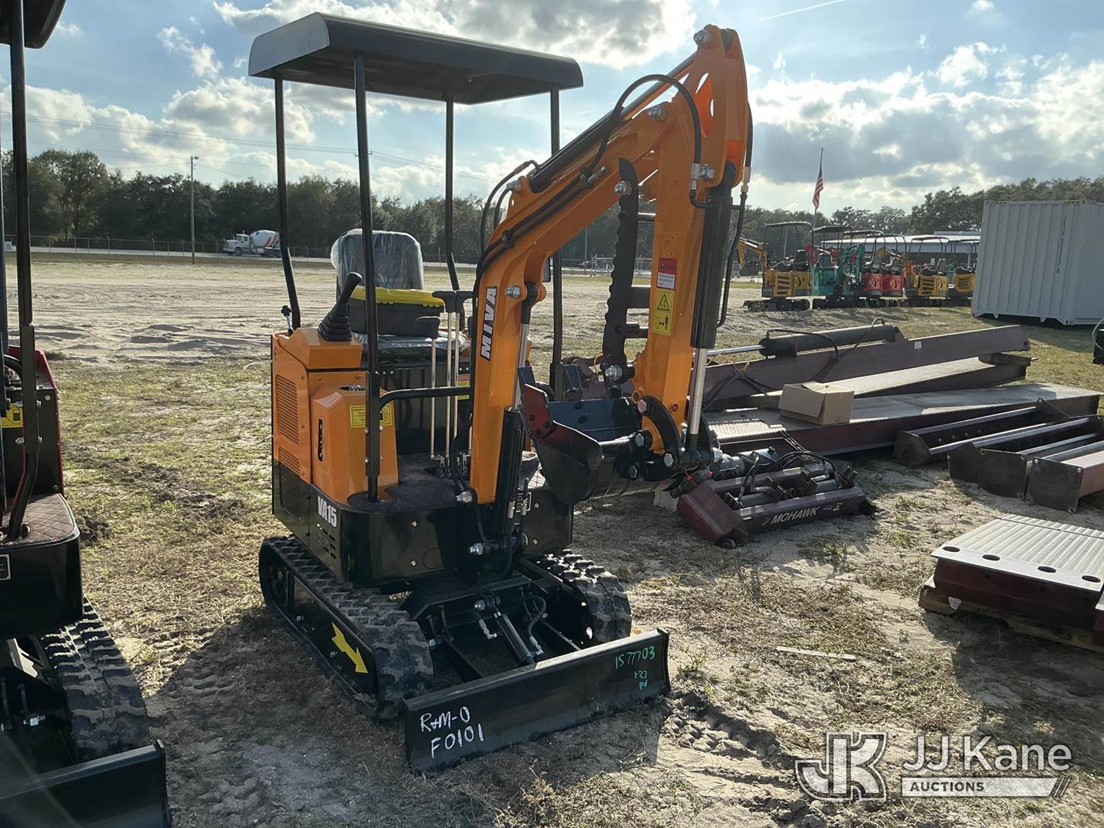 2025 MIVA VA15 Mini Hydraulic Excavator, s/n 15J25114, Hydraulic Drive, Gas, with rubber tracks, digging bucket w/thumb attachment, backfill blade & ROPS, (Runs, Moves & Operates) (New, May Not Have Sufficient Levels Of Oil, Coolant, And/or Fuel) NOTE: This unit is being sold AS IS/WHERE IS via Timed Auction and is located in Thonotosassa, FL. Inspection & preview days for this unit are the 2 business days prior to the first day of items closing for this auction, item is located at 11720 N US 301 Thonotosassa, Fl 33592 and hours of operations are 8a-4p. For pre-sale questions, please contact Office Staff @ (813) 986-2485. (Buyer is responsible for removal. Assistance by consignor or JJ Kane Auctions is not assured.)