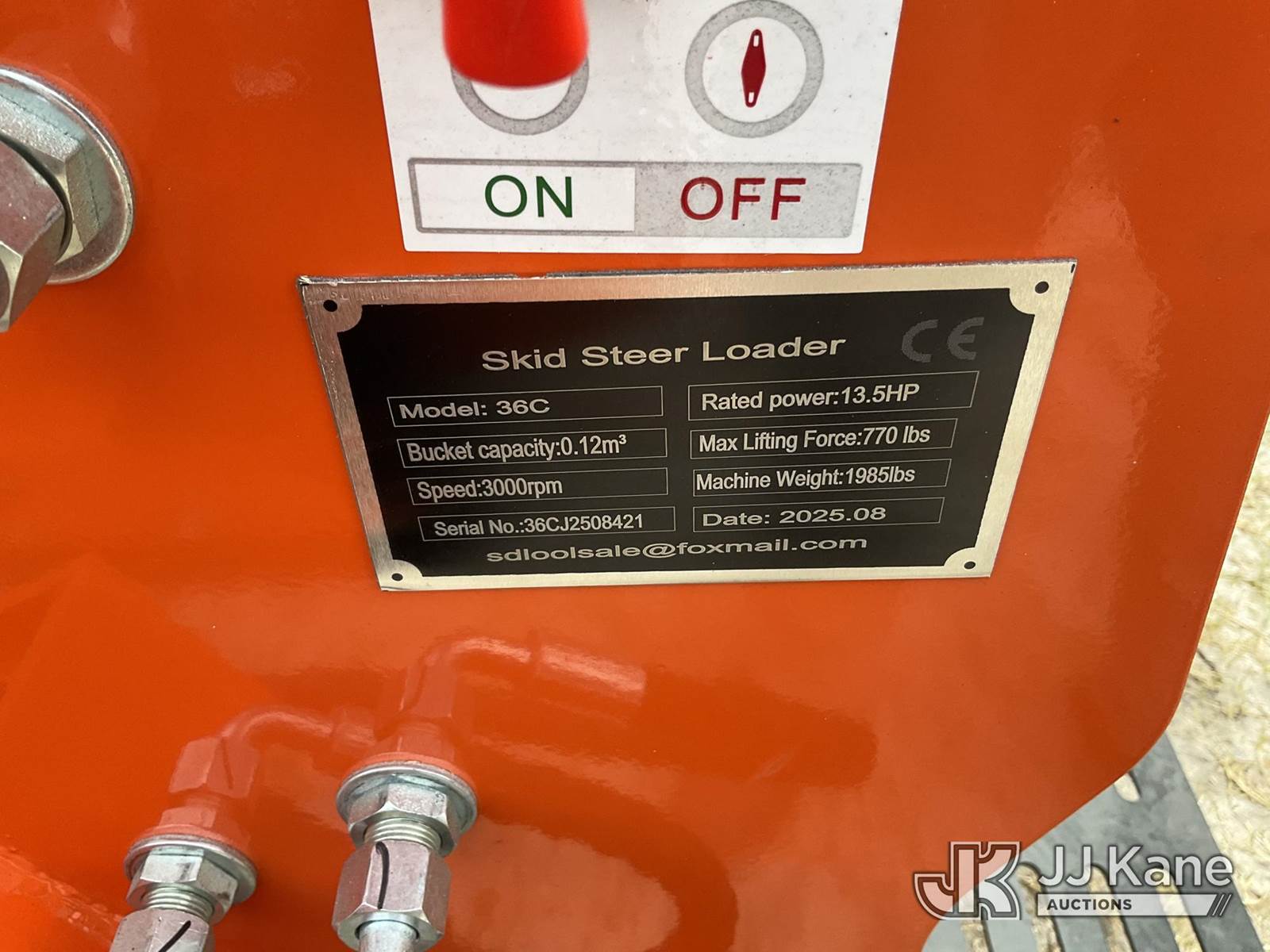 2025 MMS 36C Mini Crawler Skid Steer Loader, s/n 36CJ2508421, gas with GP bucket, aux hyd & rubber tracks, (Runs, Moves & Operates)(New/Unused) NOTE: This unit is being sold AS IS/WHERE IS via Timed Auction and is located in Thonotosassa, FL. Inspection & preview days for this unit are the 2 business days prior to the first day of items closing for this auction, item is located at 11720 N US 301 Thonotosassa, Fl 33592 and hours of operations are 8a-4p. For pre-sale questions, please contact Office Staff @ (813) 986-2485. (Buyer is responsible for removal. Assistance by consignor or JJ Kane Auctioneers is not assured.)