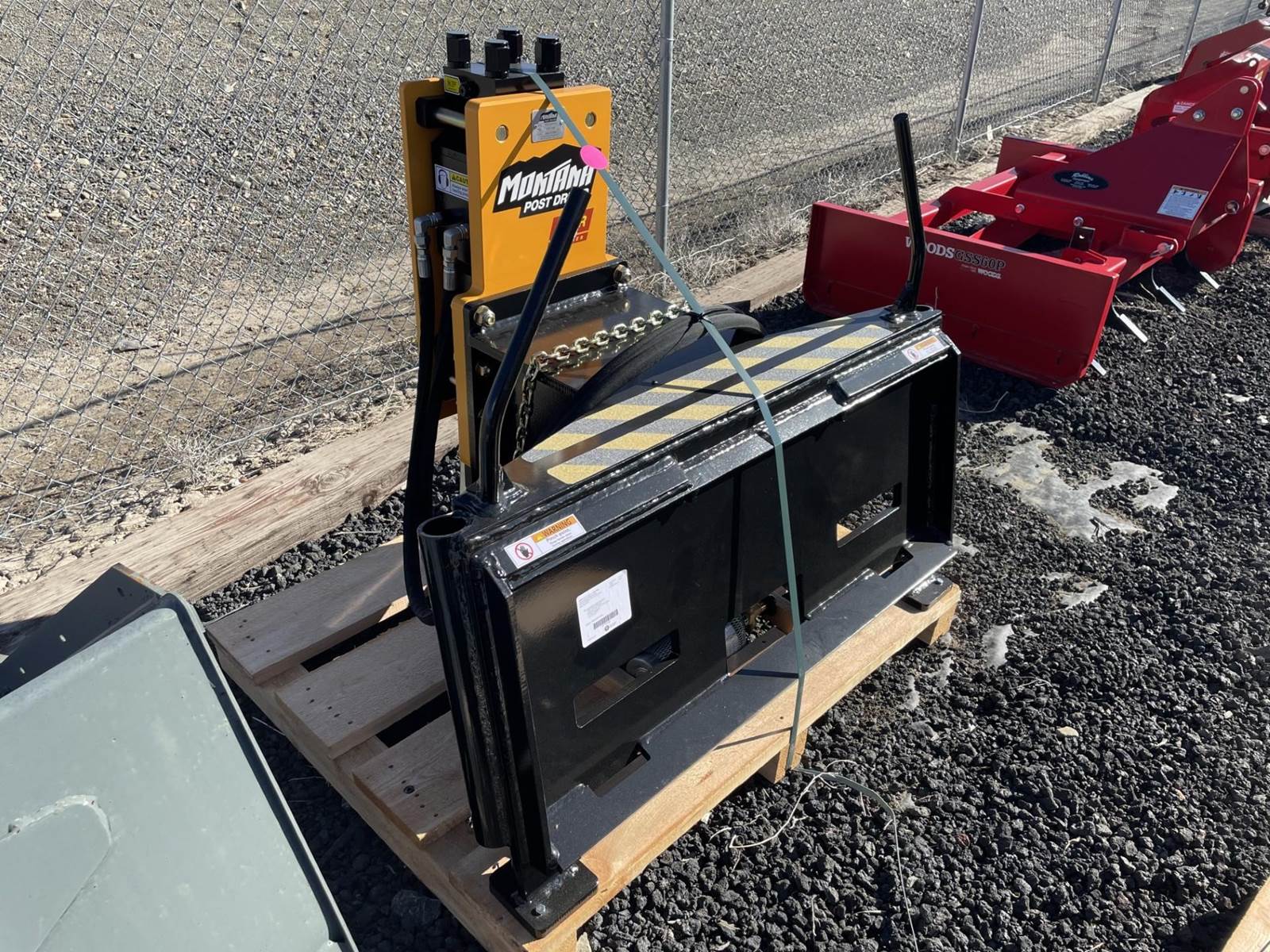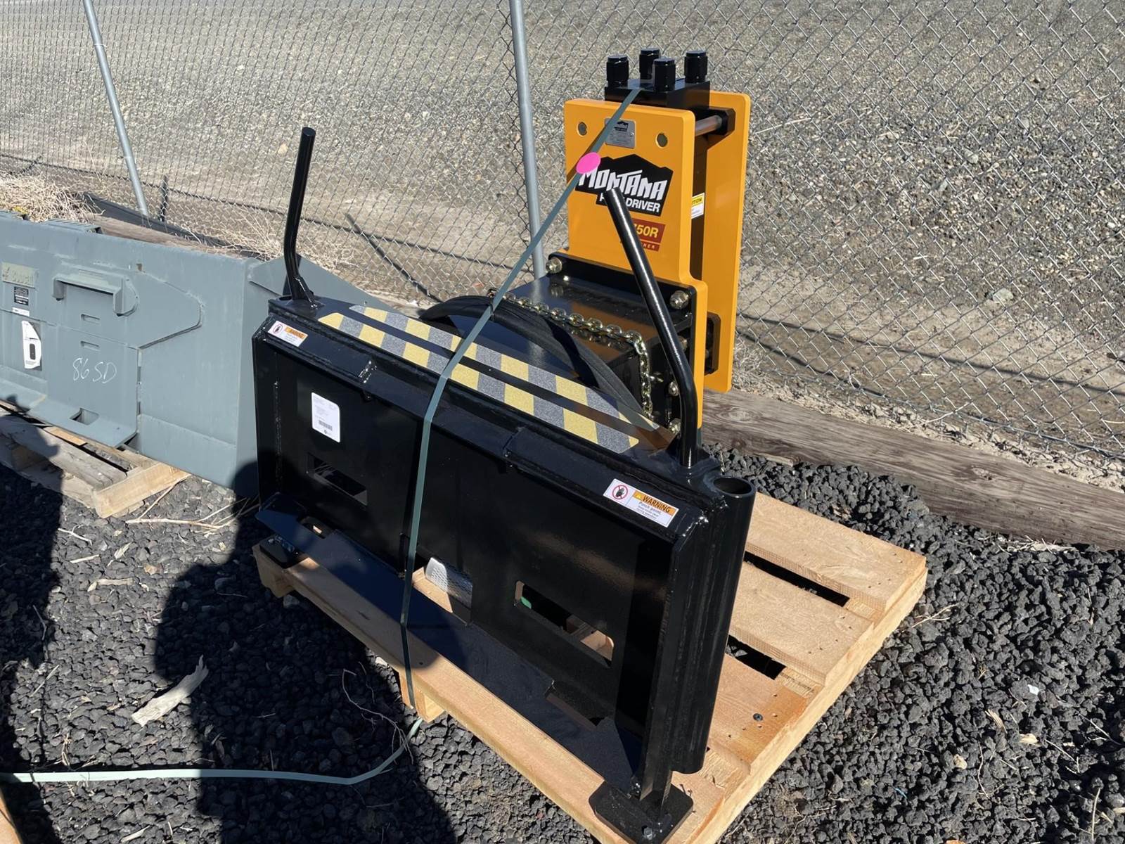 POST DRIVER, SKIDSTEER MOUNT, INCLUDES: DOMED TOOL, FLAT TOOL, CONCRETE POINT, CHAIN, NITROGEN BOTTLE, NITROGEN CHARGE KIT, HYDRAULIC HOSES,...