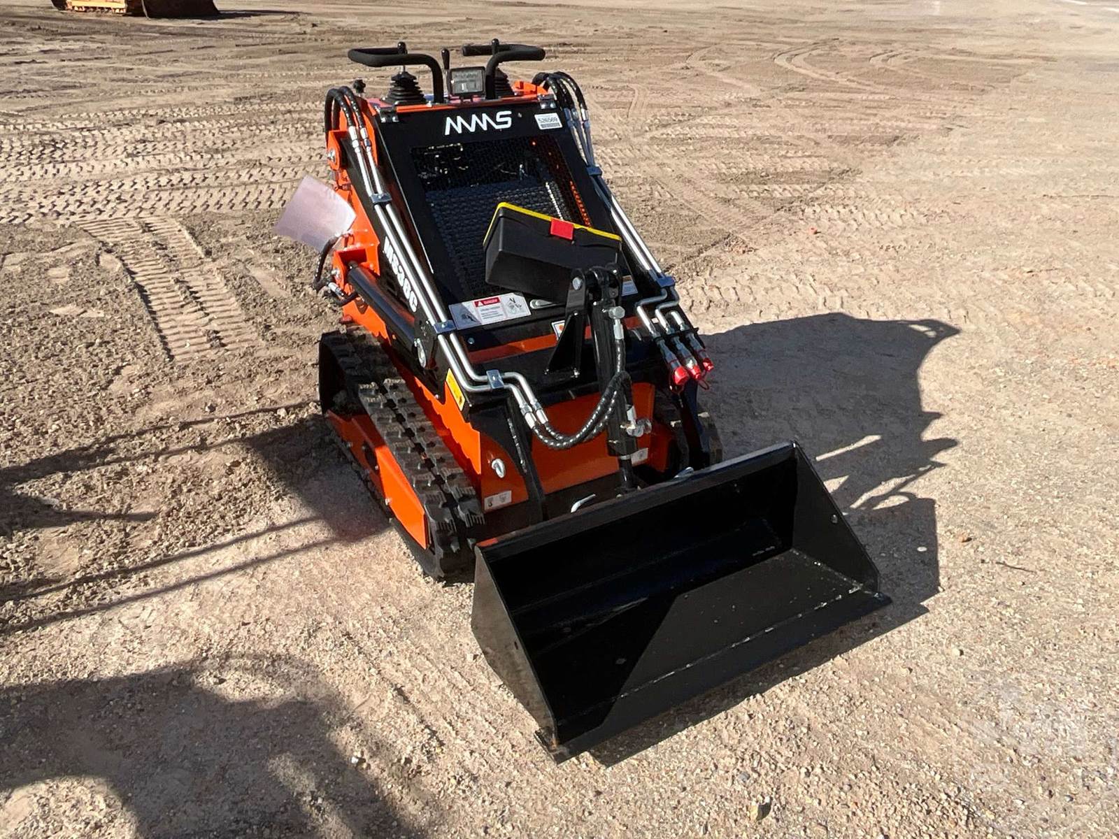 UNUSED STAND ON MULTI TERRAIN LOADER, AUX HYDRAULICS, MANUAL COUPLER, HAND CONTROLS, SMOOTH BUCKET, 6", RUBBER TRACKS, MINI MULTI TERRAIN LOADER, HOUR METER READS: .1