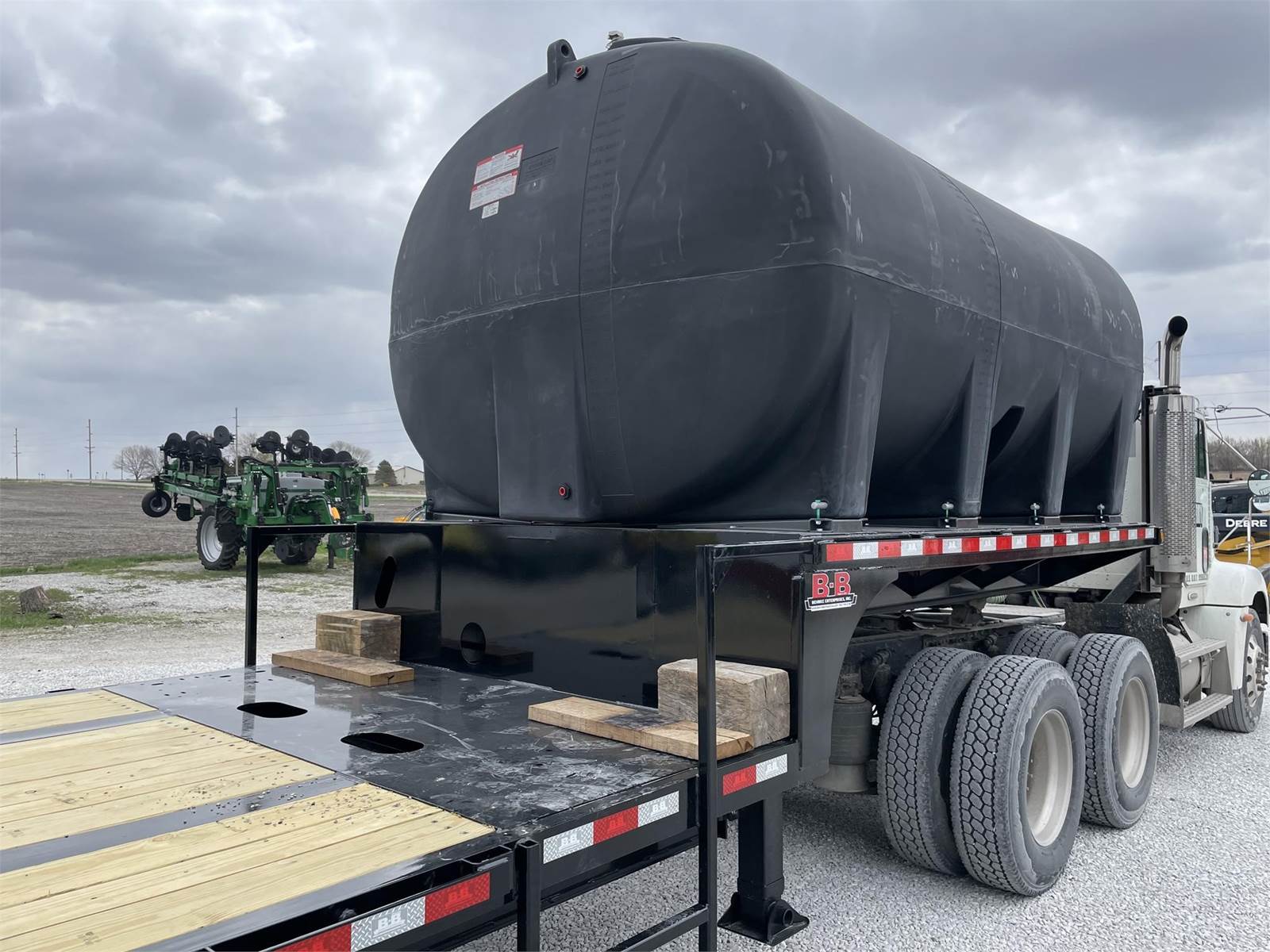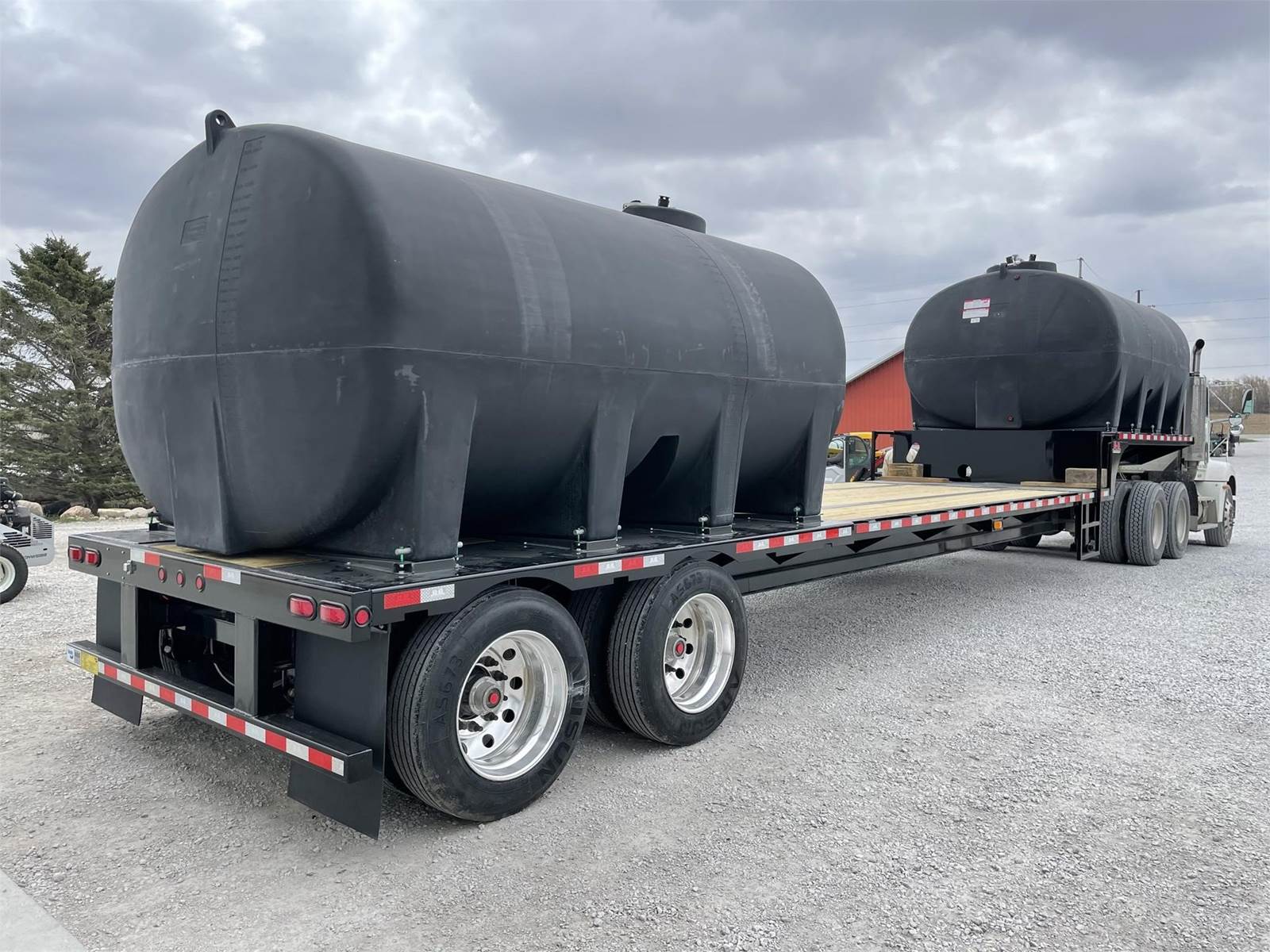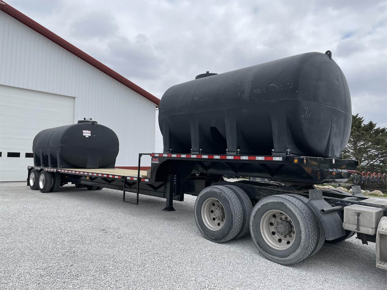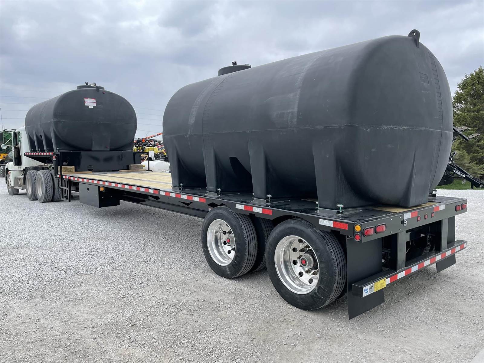 Behnke 48' custom semi trailer. 2 Enduraplas 3200 gal full drain tanks, 8 aluminum wheels, spring ride suspension for low maintenance. 4' side toolbox, hose hangers under frame to keep the deck clutter free. Many other options such as length, air ride suspension, spread axles, triple axles, 2800 or 3200 gal tanks