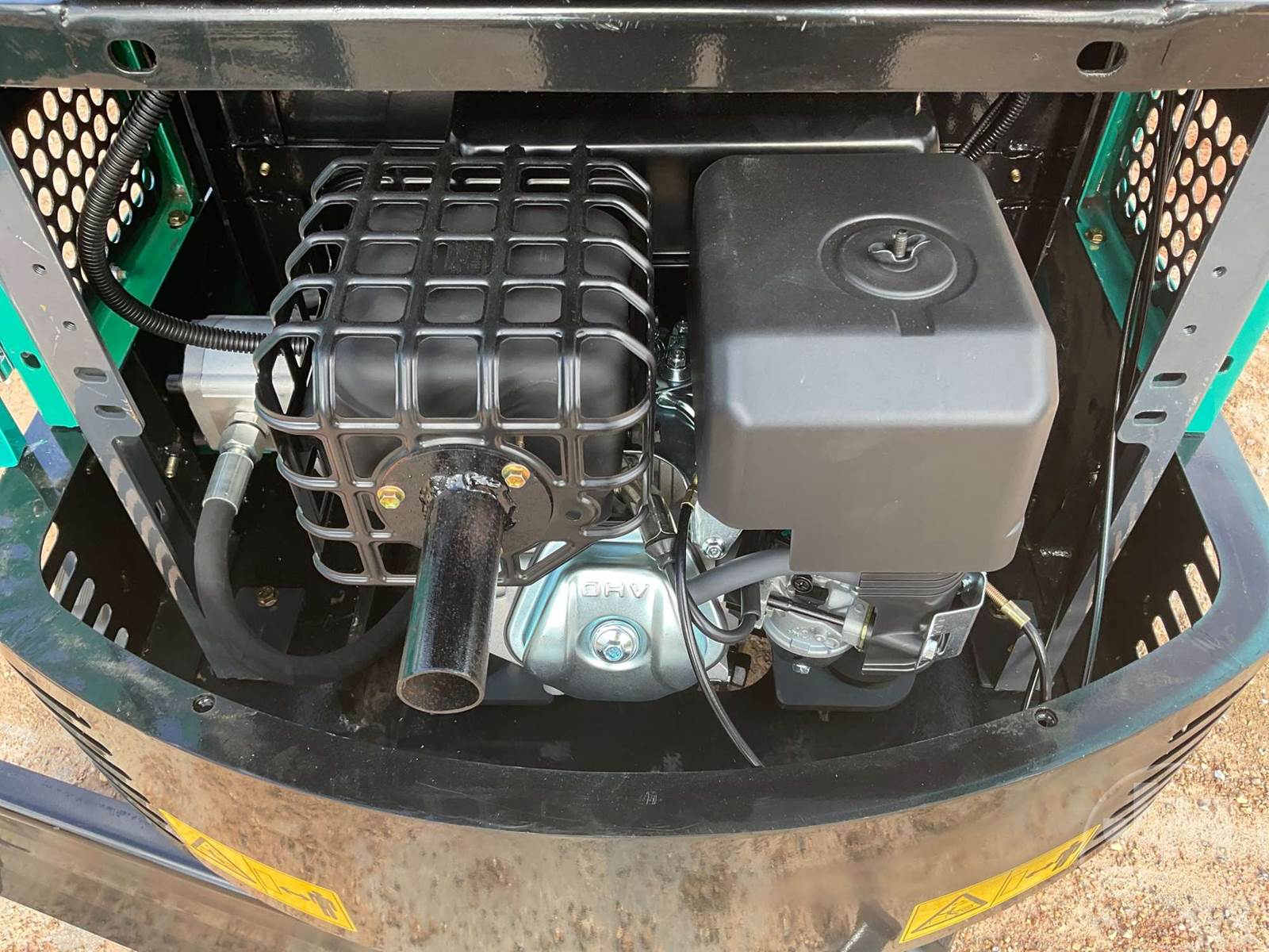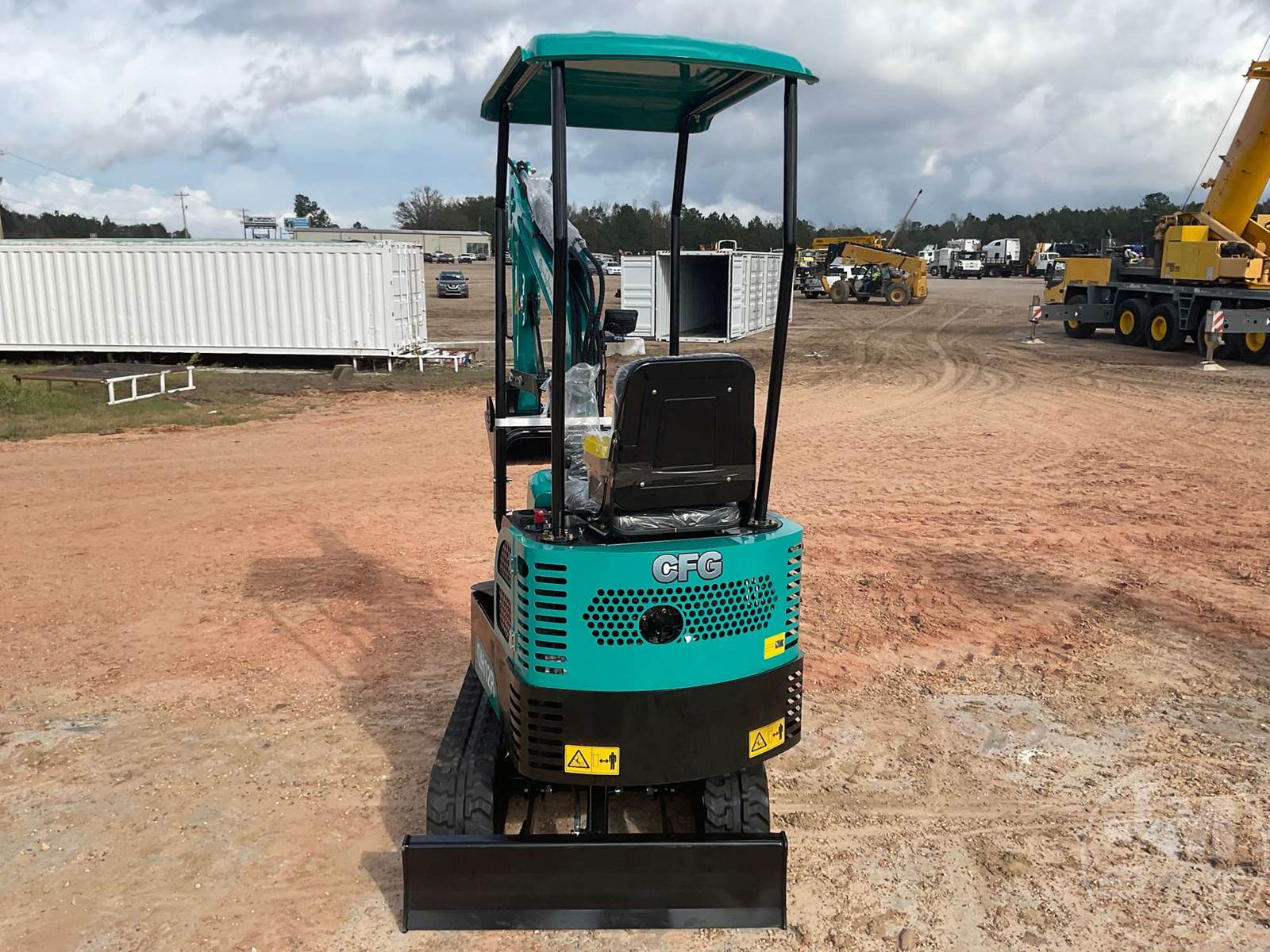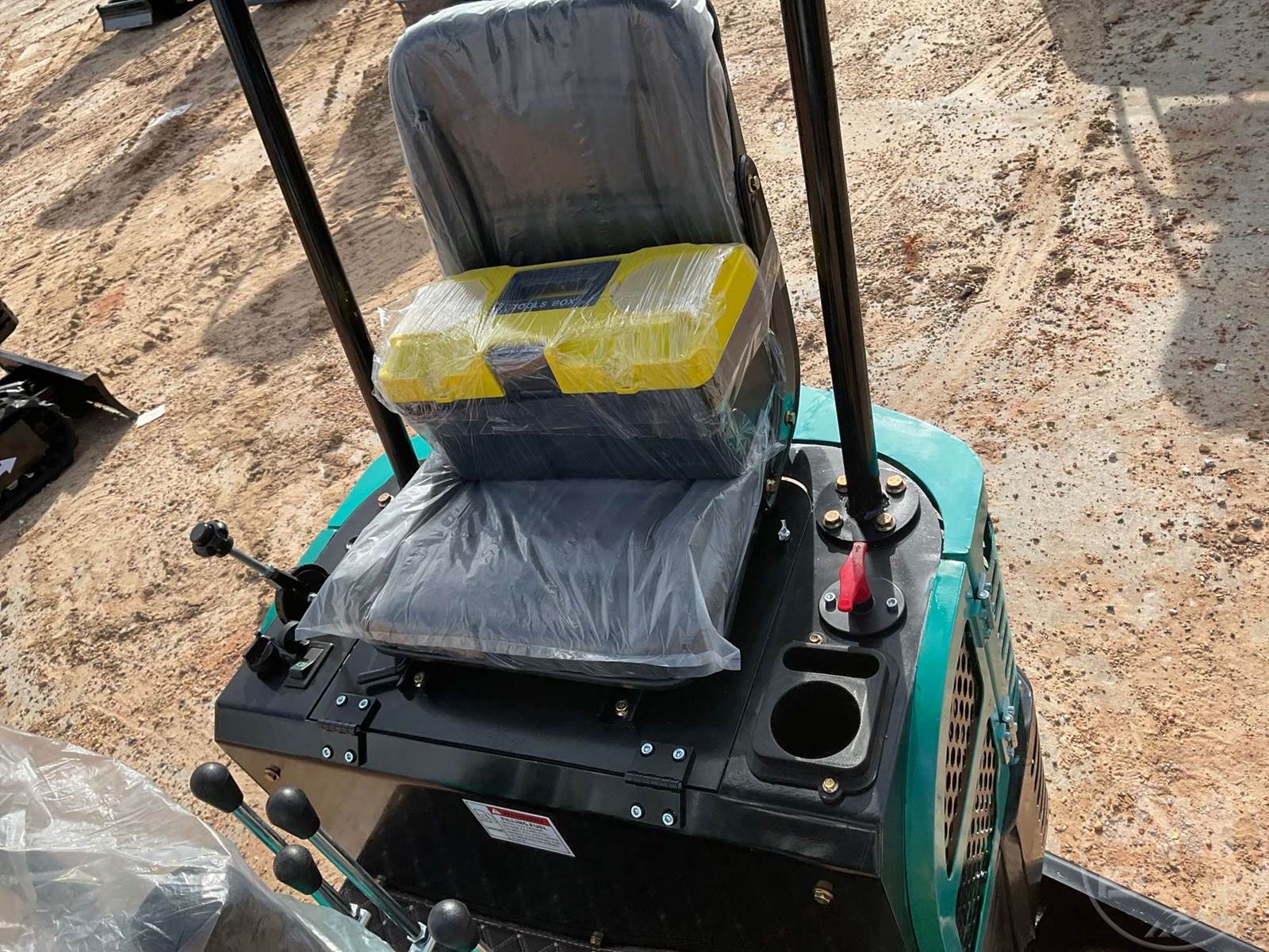 UNUSED MINI EXCAVATOR, CANOPY, 2'7 STICK, 16" BUCKET, MANUAL COUPLER, HYDRAULIC THUMB, S/L DRIVE PEDAL, DOZER, RUBBER TRACKS, HOUR METER READS: 0