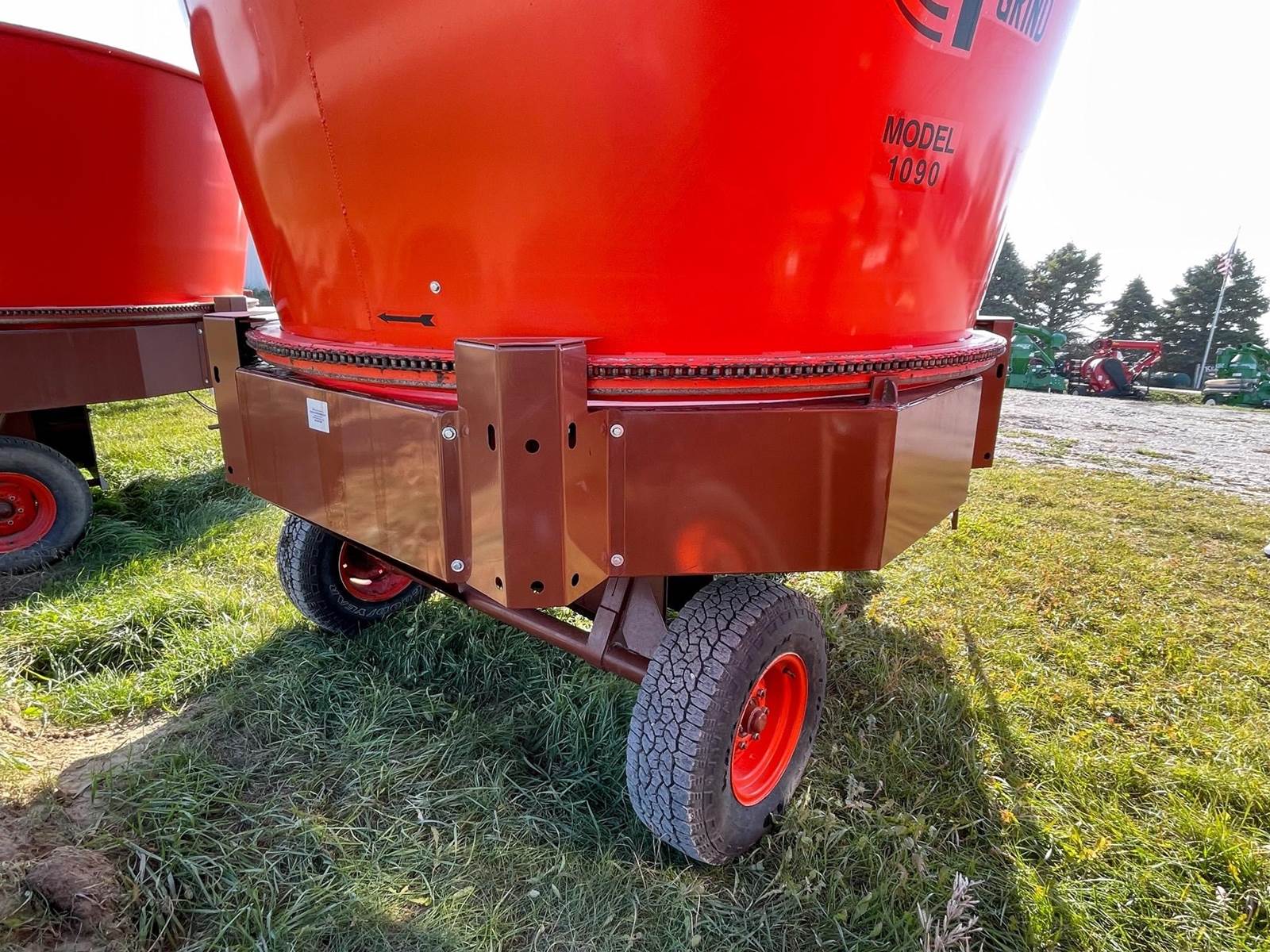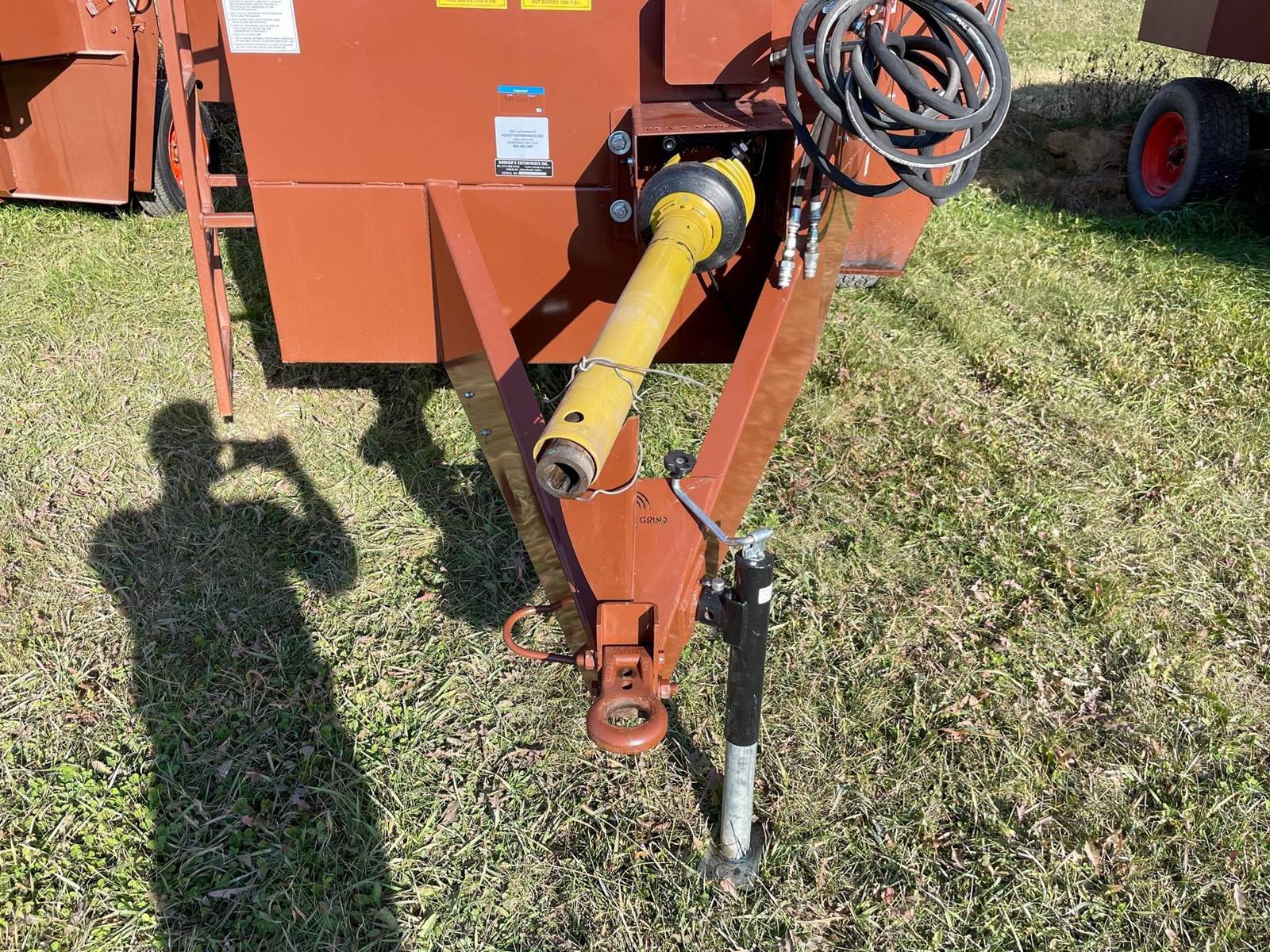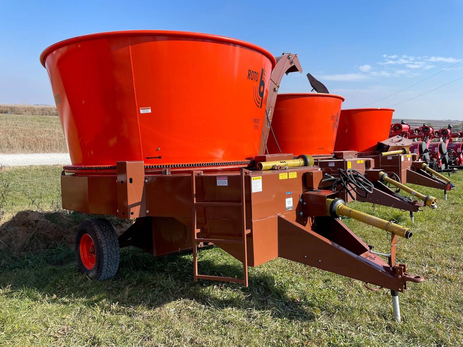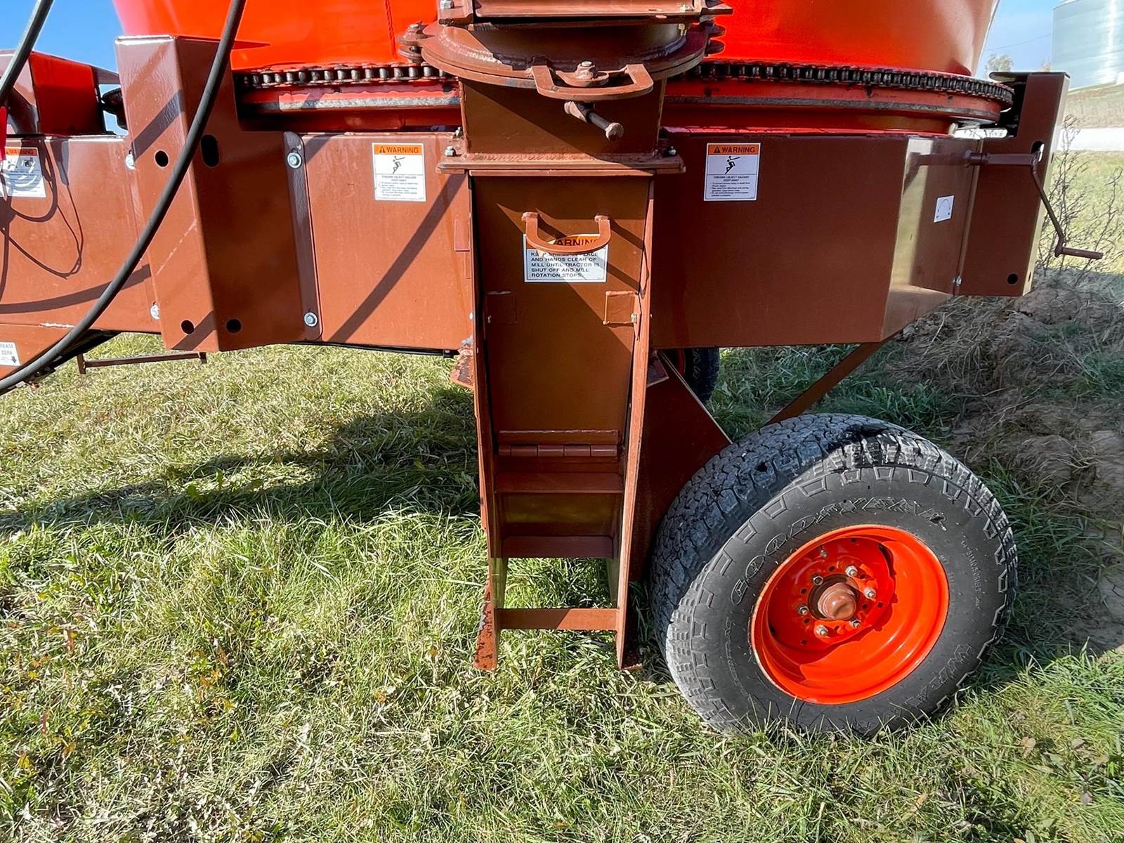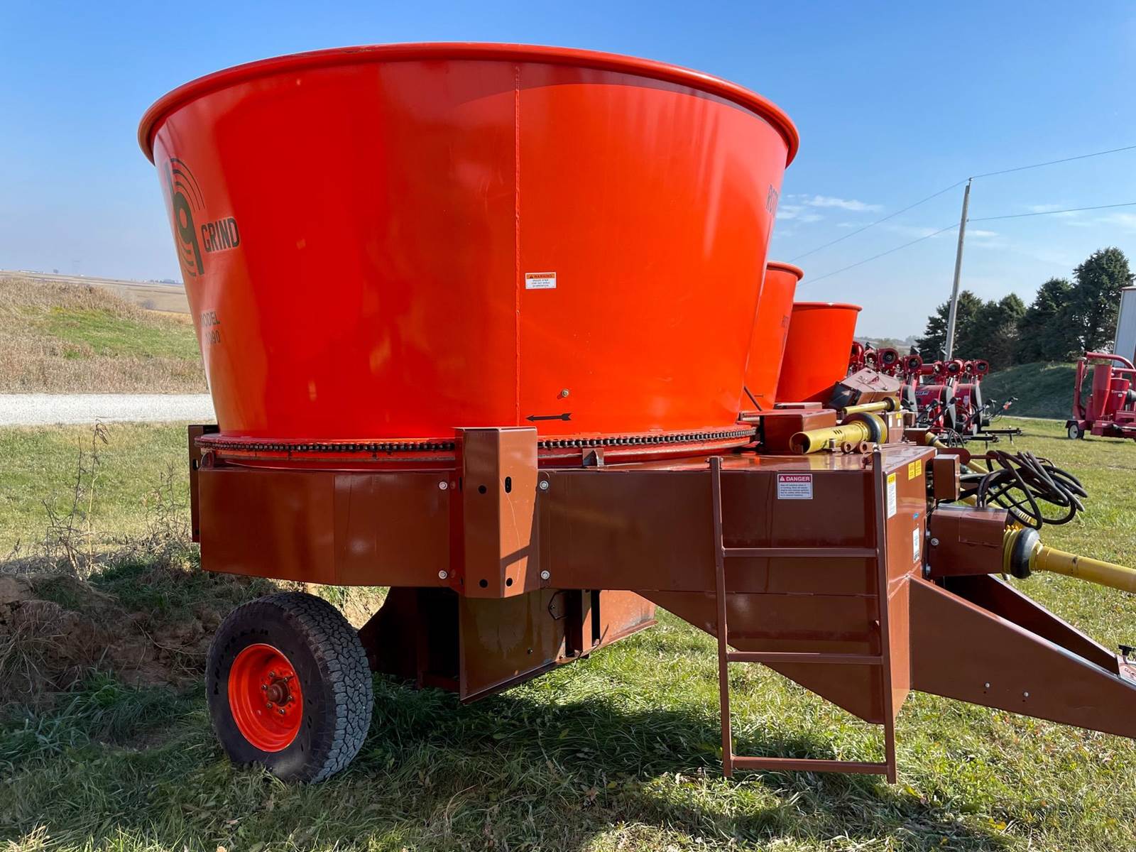 Enjoy $0 Down Financing with No Payments for 6 Months, Affordable Nationwide Delivery, and Unbeatable Prices! Used Roto Grind 1090 with an up to 15 bales per hour capacity, hay assist bar, heavy-duty tires, electronic governor, 5 adjustable shear plates to control the fineness of the grind, no screens, and a 10" mill with 26 hammers, and an adjustable 0 to 90 RPM tub speed. It is the only wet product grinder on the market and is ready for calcium hydroxide with two 2" water bungees on the hammer mill. With dry material, it should produce an average of 35 tons per hour. 180 hp recommended. Optional hydraulic tilts for the spout and grain hoods to crack or grind grain are also available.
