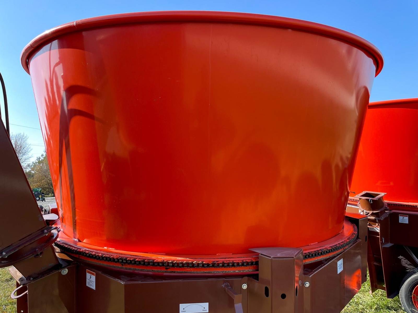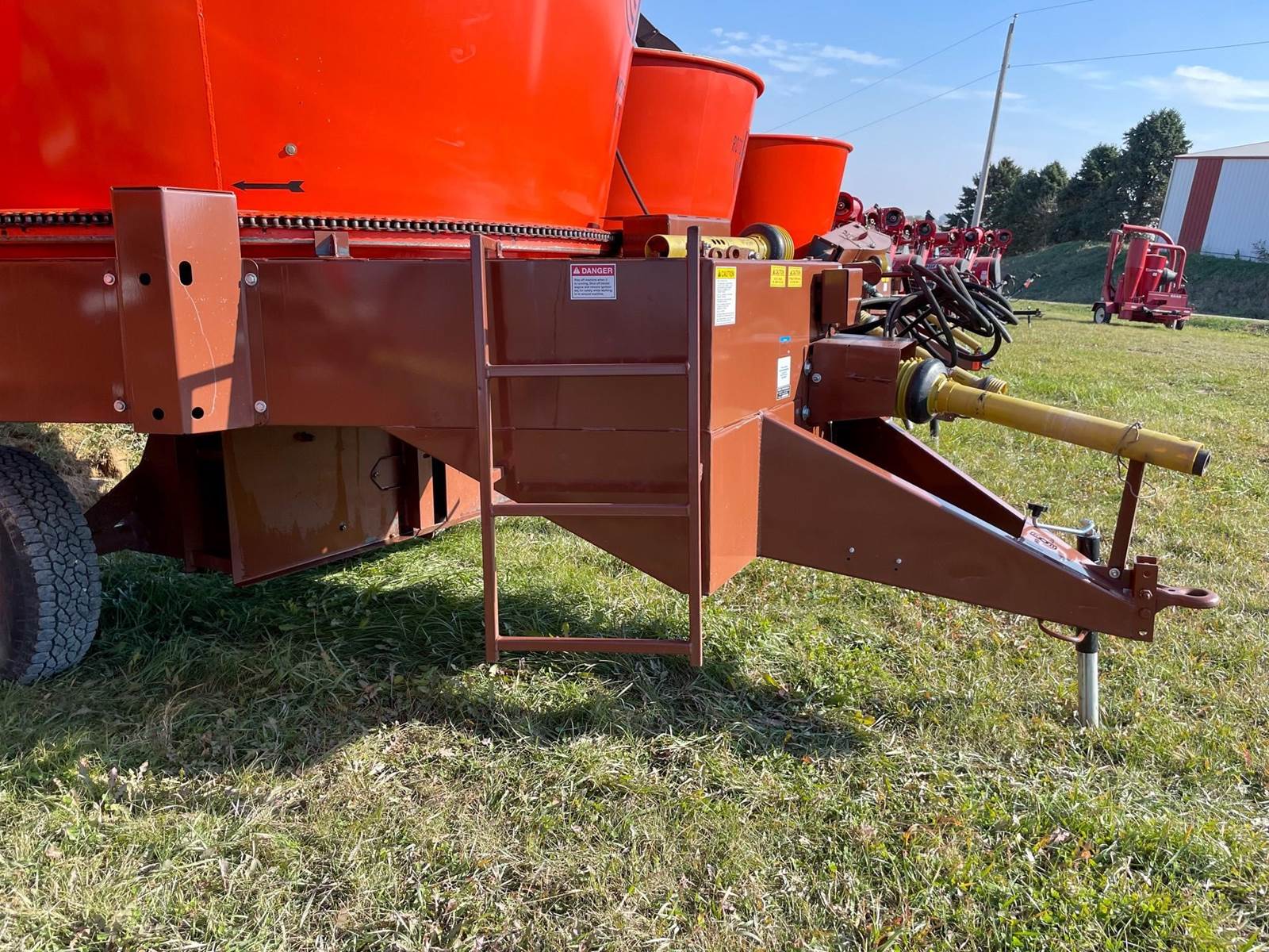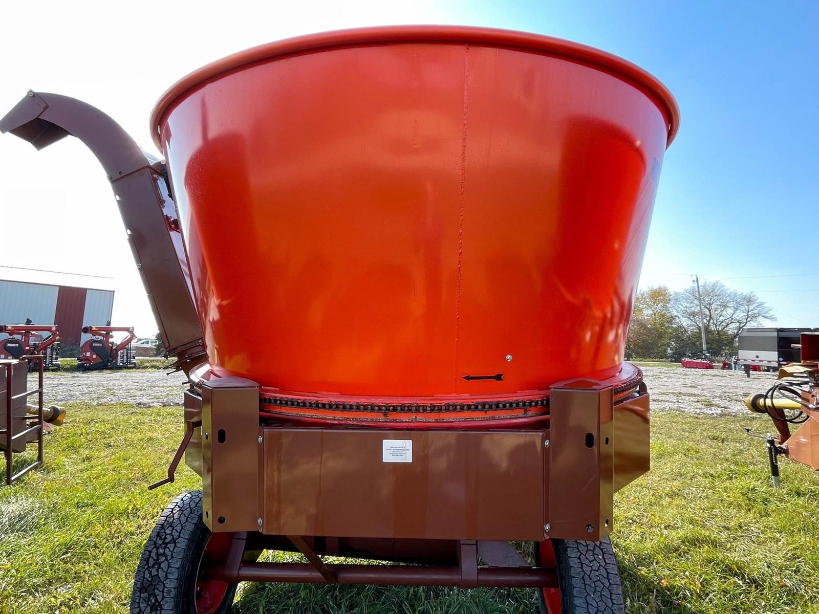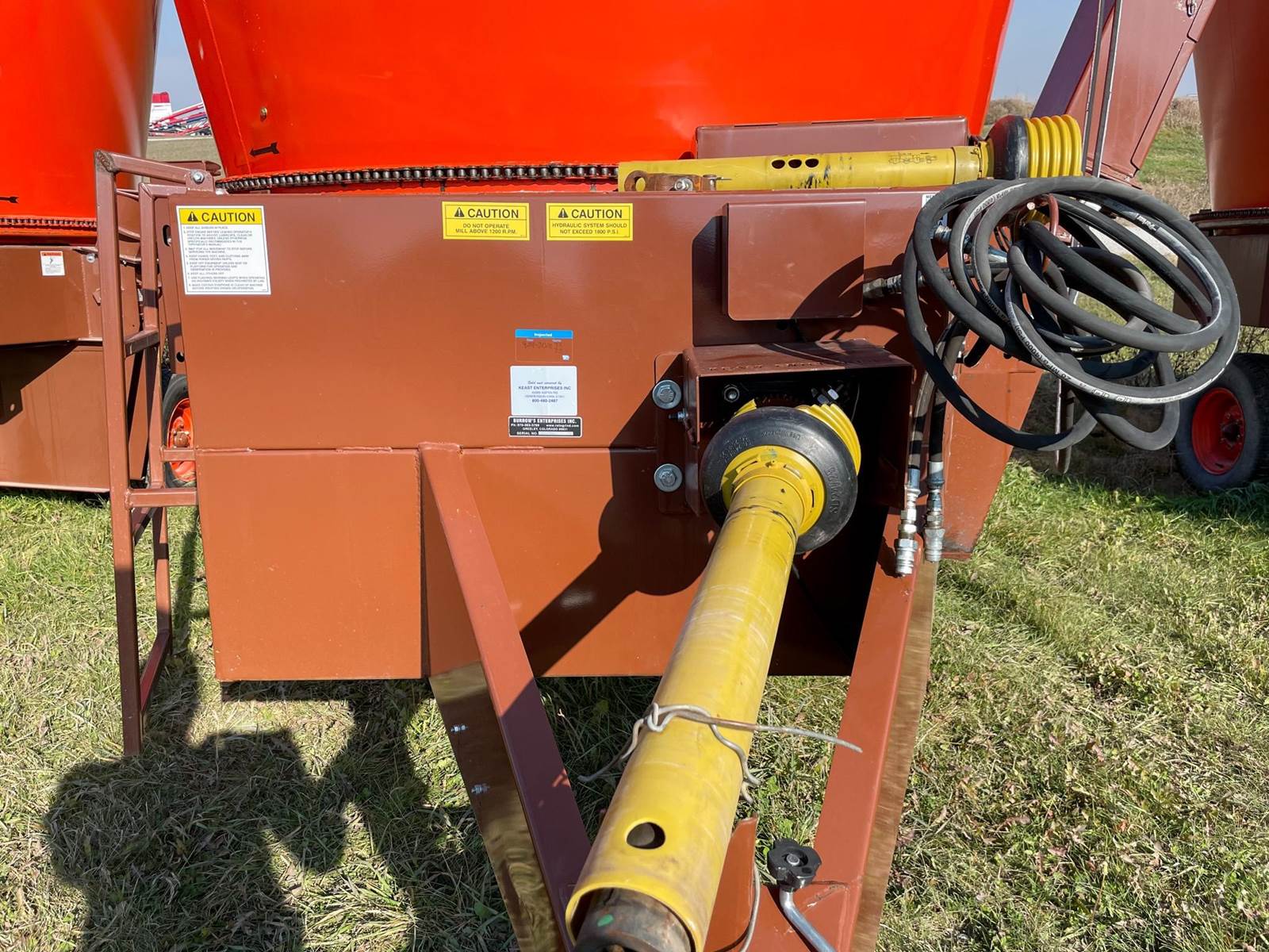 Enjoy $0 Down Financing with No Payments for 6 Months, Affordable Nationwide Delivery, and Unbeatable Prices! Used Roto Grind 1090 with an up to 15 bales per hour capacity, hay assist bar, heavy-duty tires, electronic governor, 5 adjustable shear plates to control the fineness of the grind, no screens, and a 10" mill with 26 hammers, and an adjustable 0 to 90 RPM tub speed. It is the only wet product grinder on the market and is ready for calcium hydroxide with two 2" water bungees on the hammer mill. With dry material, it should produce an average of 35 tons per hour. 180 hp recommended. Optional hydraulic tilts for the spout and grain hoods to crack or grind grain are also available.