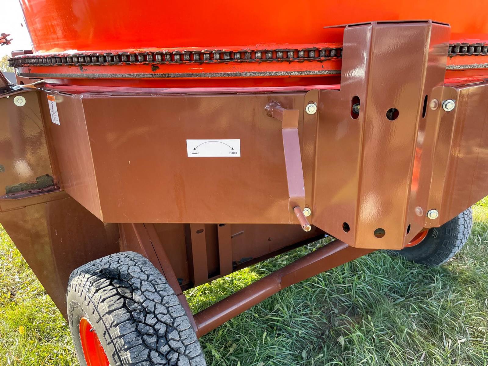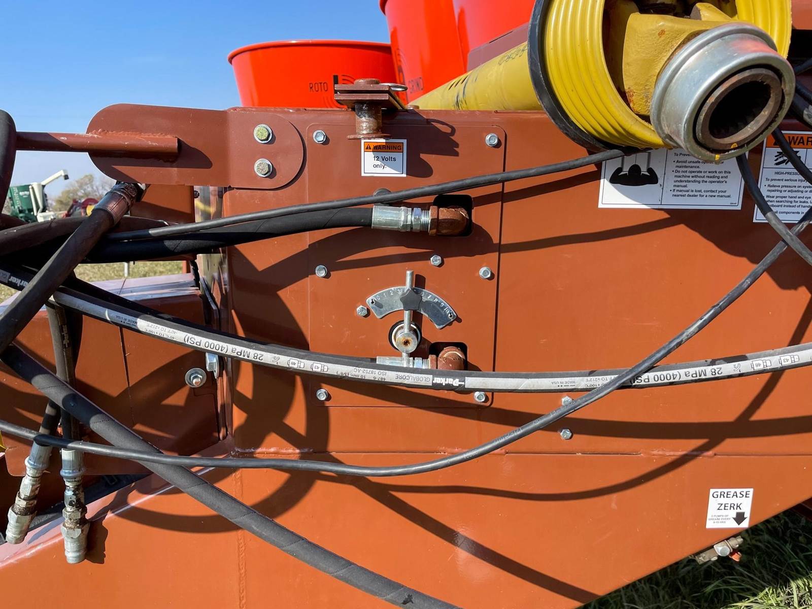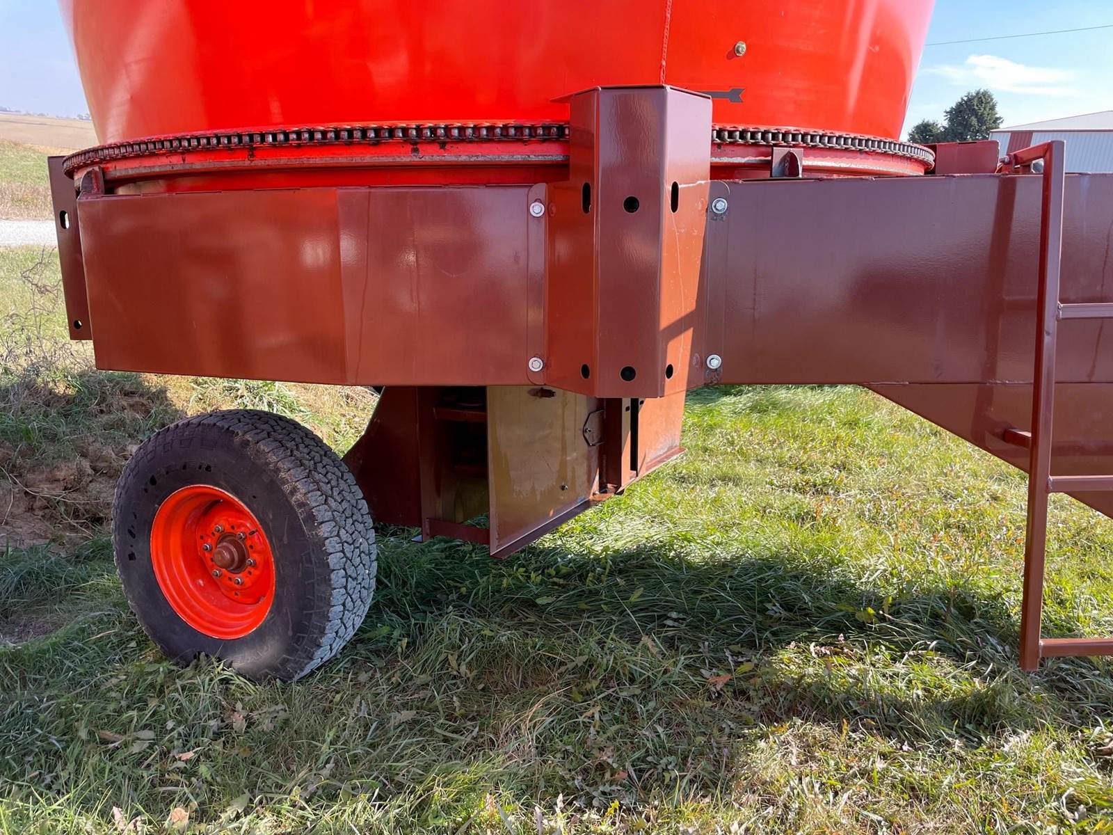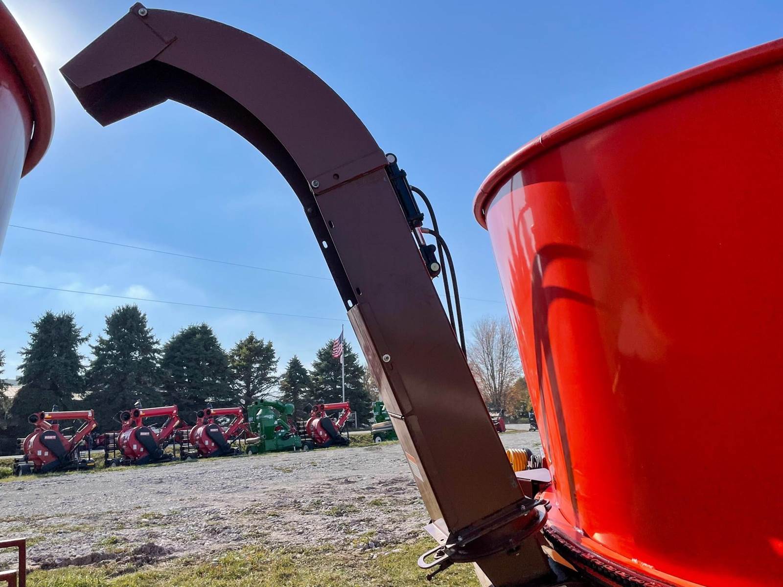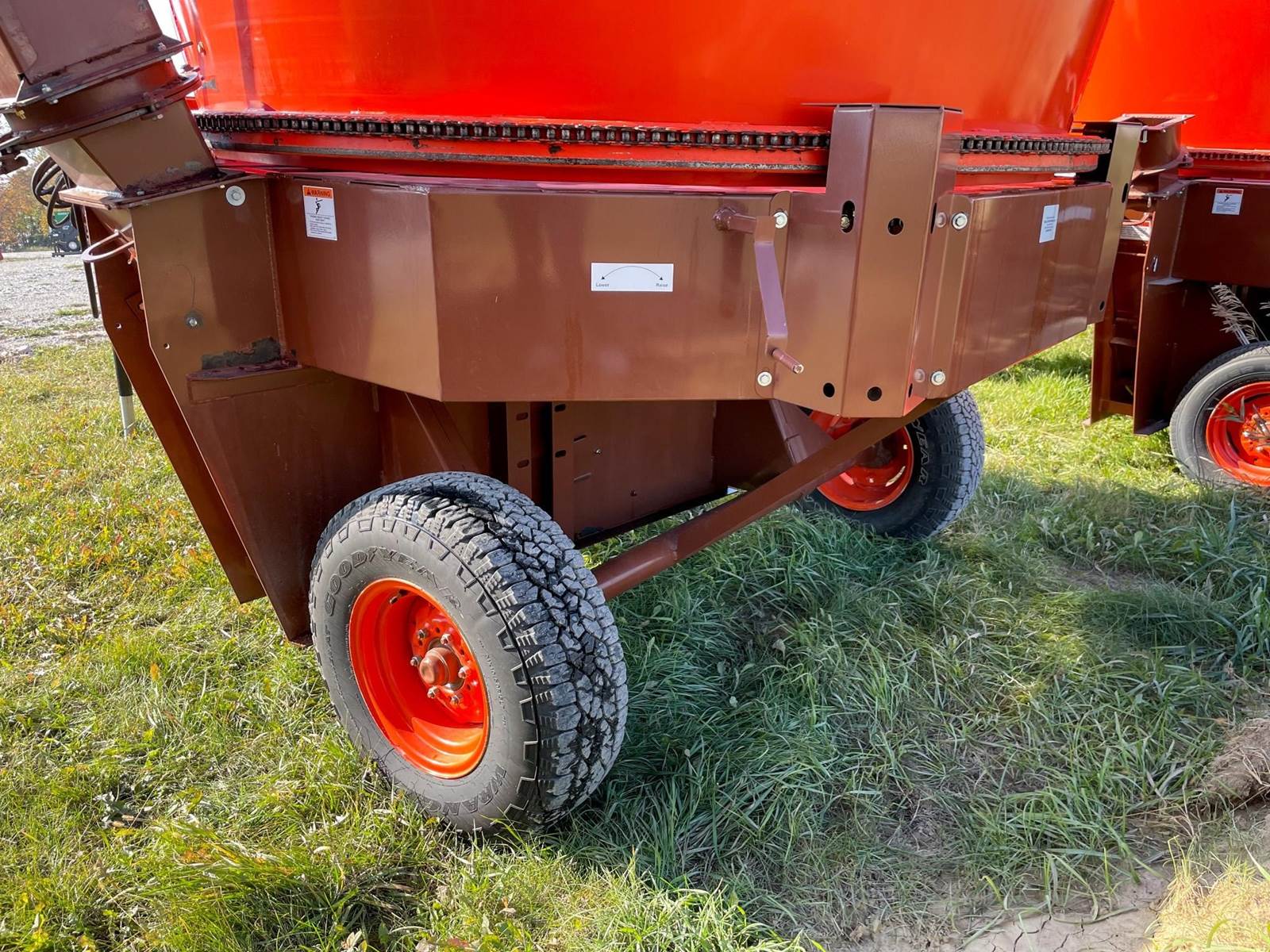 Enjoy $0 Down Financing with No Payments for 6 Months, Affordable Nationwide Delivery, and Unbeatable Prices! Used Roto Grind 1090 with an up to 15 bales per hour capacity, hay assist bar, heavy-duty tires, electronic governor, 5 adjustable shear plates to control the fineness of the grind, no screens, and a 10" mill with 26 hammers, and an adjustable 0 to 90 RPM tub speed. It is the only wet product grinder on the market and is ready for calcium hydroxide with two 2" water bungees on the hammer mill. With dry material, it should produce an average of 35 tons per hour. 180 hp recommended. Optional hydraulic tilts for the spout and grain hoods to crack or grind grain are also available.