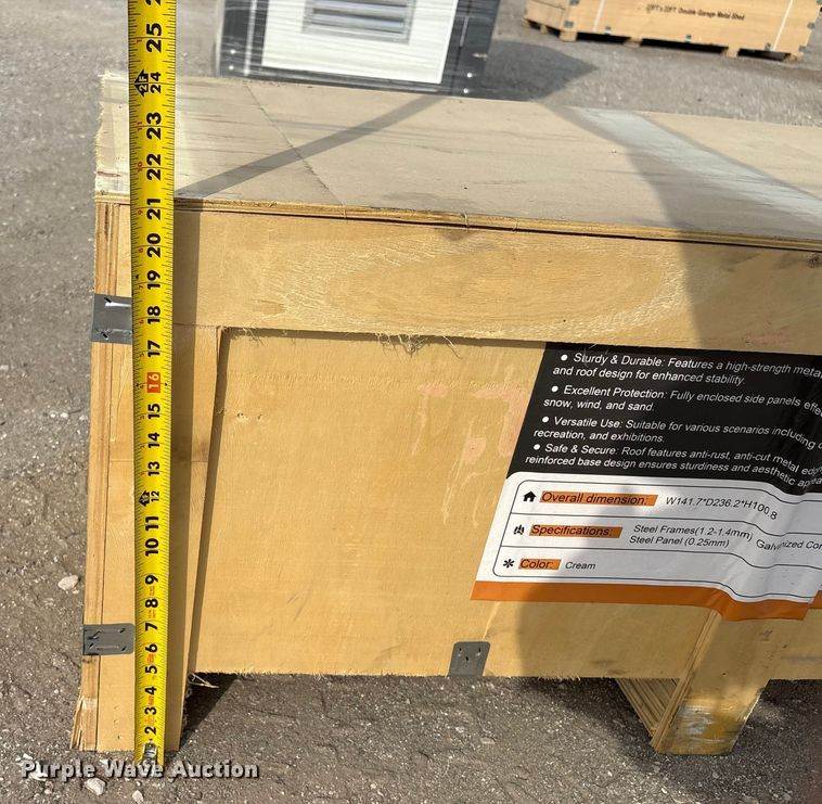 KJ K2223G metal garage, Serial: KJ25018427, Length: 22', Width: 23', Bay Door Opening: 8' 4" W x 7' 4" H,