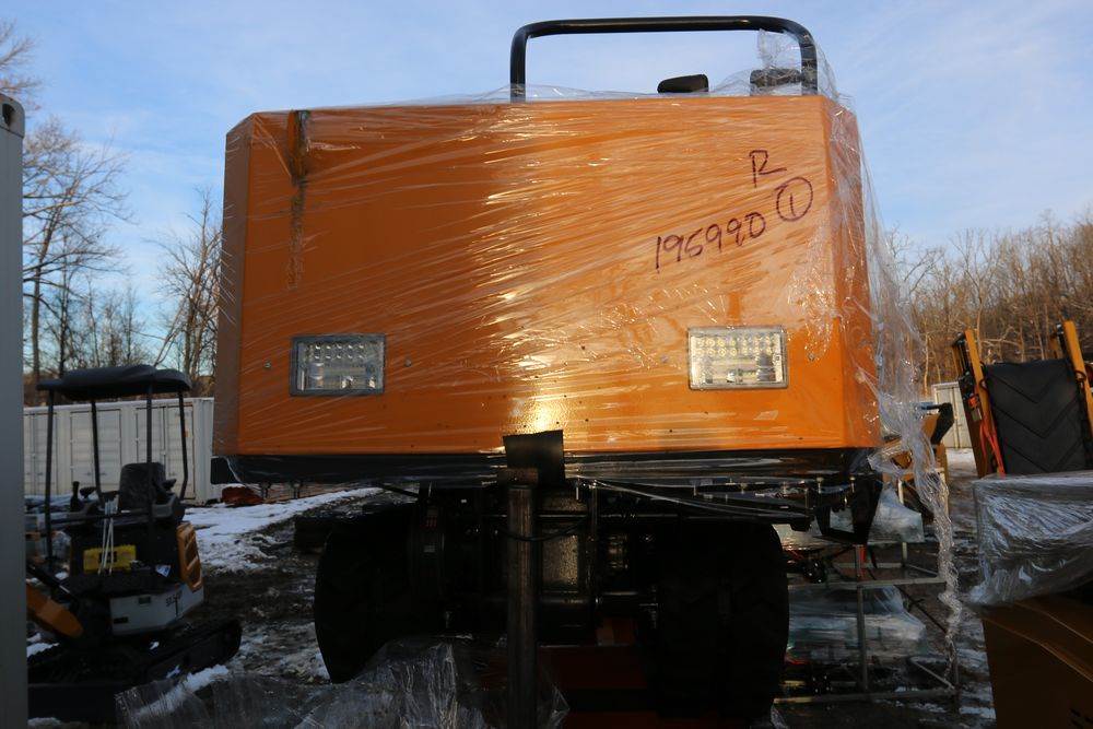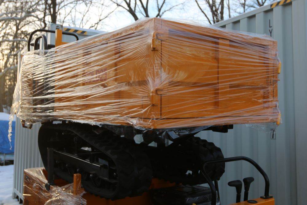 New 2025 tracked dumper model SDLD25 with a high-sided yellow steel cargo bed and rear-mounted engine. Features a single-operator seat with control levers, and rubber tracks for enhanced mobility on rough terrain..