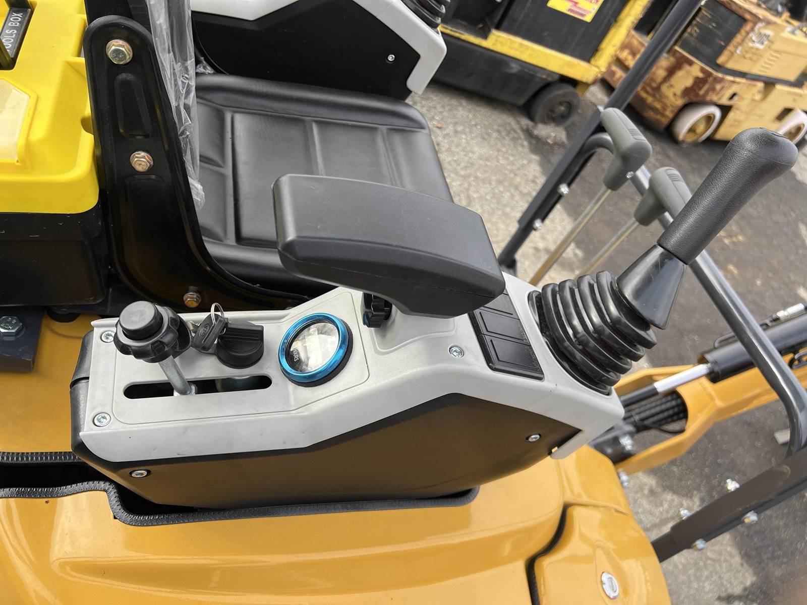 • Cab: Covered cab with joystick controls for comfort and precision.