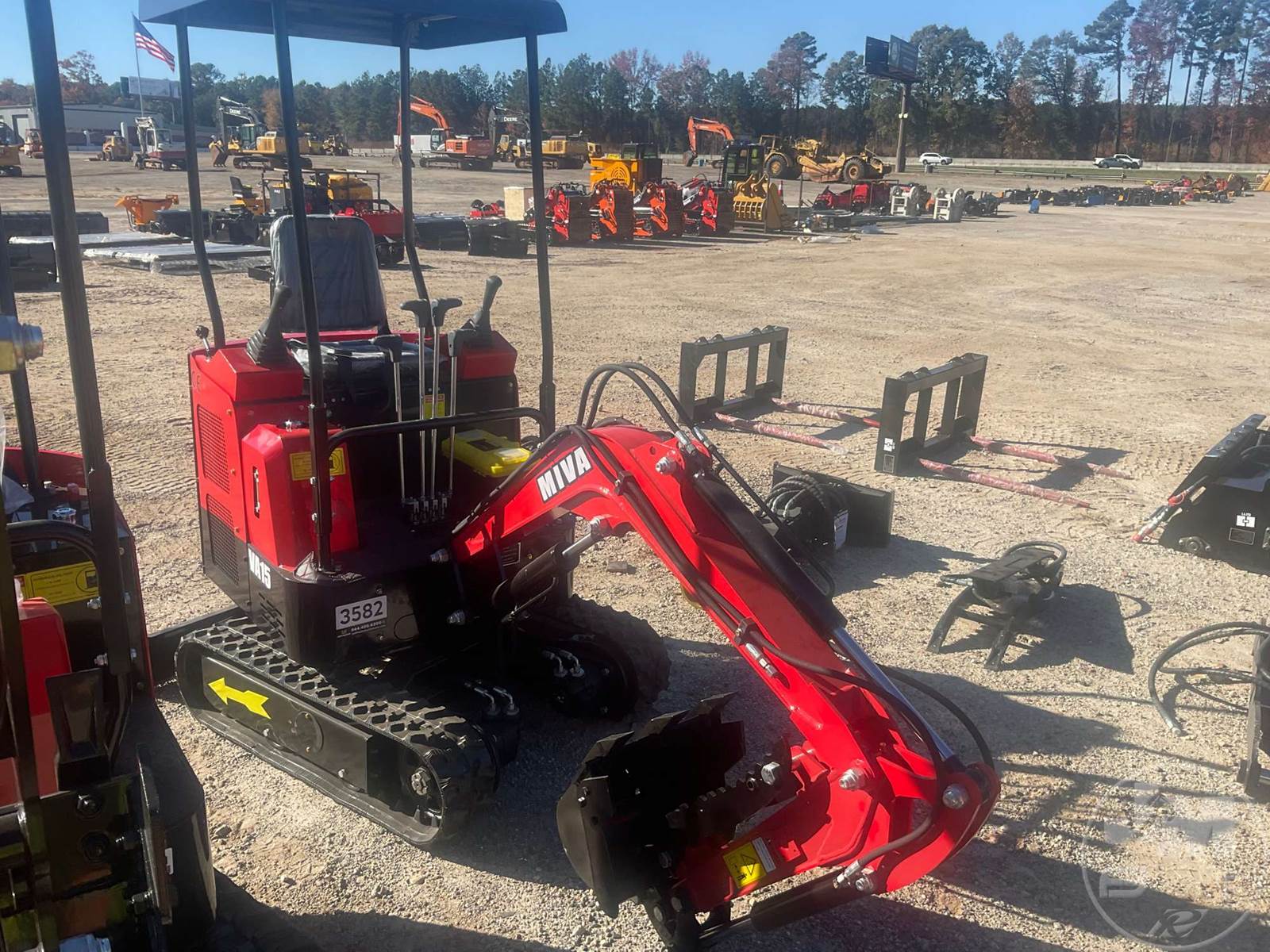 UNUSED MINI EXCAVATOR, CANOPY, 2'8" STICK, 16" BUCKET, DOZER, RUBBER TRACKS, 13.5HP, HOUR METER READS: 0