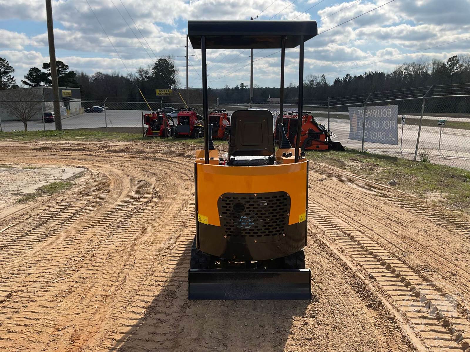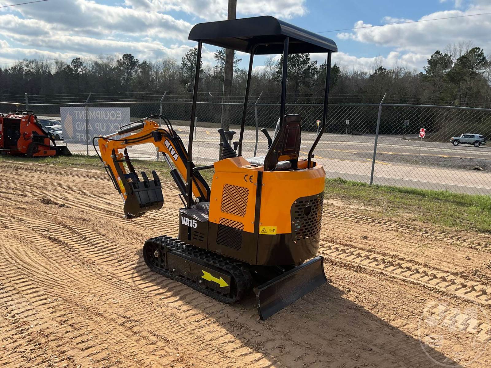 UNUSED MINI EXCAVATOR, CANOPY, 2'7" STICK, 12" BUCKET, MANUAL COUPLER, MANUAL THUMB, AUX HYDRAULICS, DOZER, 7", RUBBER TRACKS, HOUR METER READS: 0
