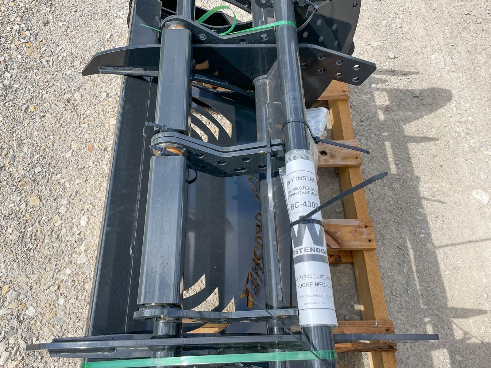Enjoy Affordable Nationwide Delivery and Unbeatable Prices! New Westendorf BC4300 Brush Crusher with Universal Skid Steer mount, serrated V-shaped teeth, and a lightweight yet high strength steel construction for maximum lift power and stability. No need for hydraulics, just hook up and run!