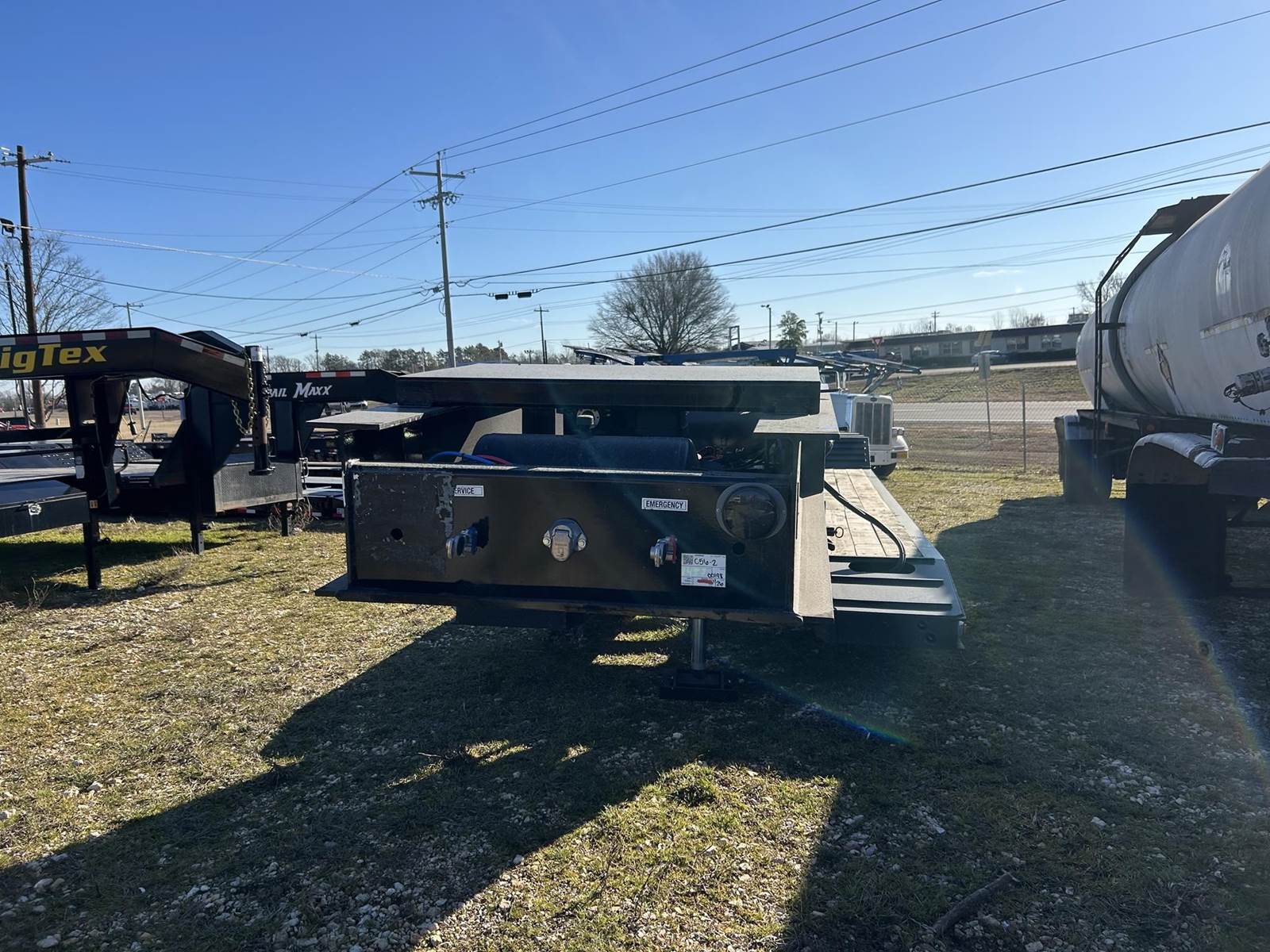 NEW 52 TON LOW BOY TRAILER, 23 FT WELL, CHAIN TIE DOWNS, D-RINGS, HONDA PONY ENGINE, CHAIN/BINDER STORAGE, GROUND BEARING DETACH, FACTORY WARRANTY, PAD FOOT ON LIFT CYLNDER! WELL BUILT TRAILER/ GREAT FOR FAST LOADING AND UNLOADING!