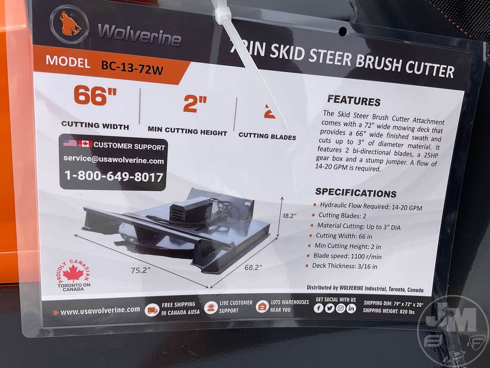 2025 Wolverine BC-13-72W Skid Steer Attachment