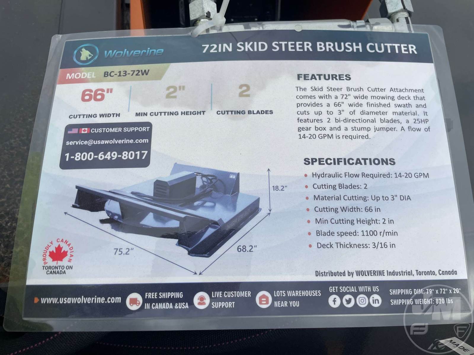 2025 Wolverine BC-13-72W Skid Steer Attachment