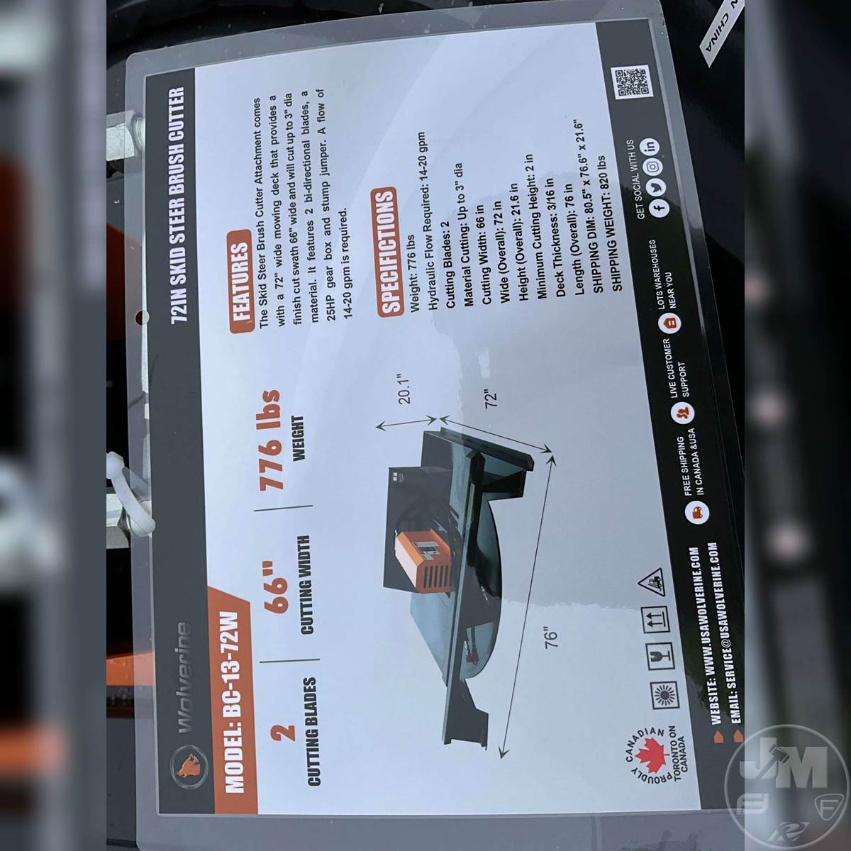 2025 Wolverine BC-13-72W Skid Steer Attachment