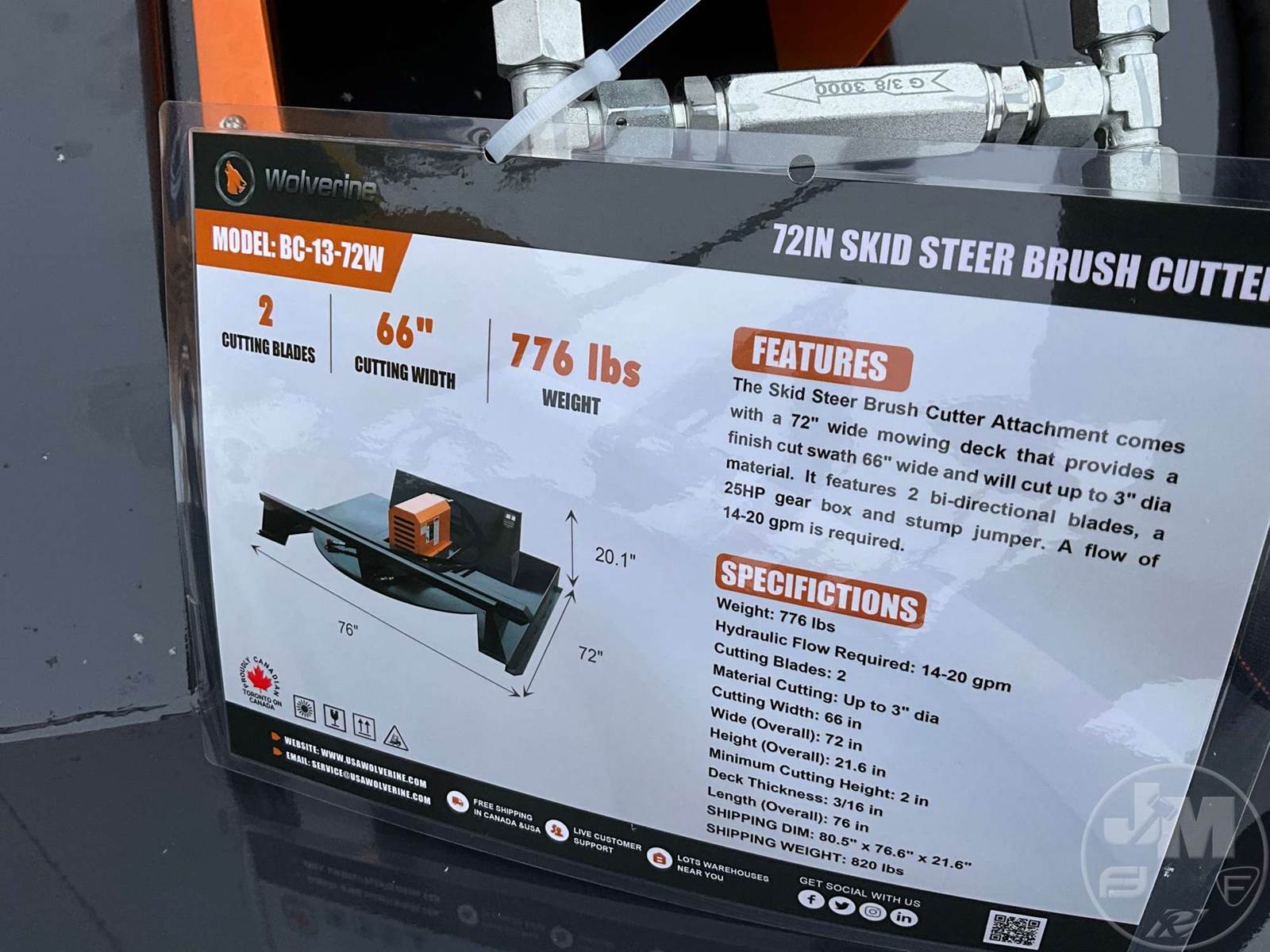 2025 Wolverine BC-13-72W Skid Steer Attachment