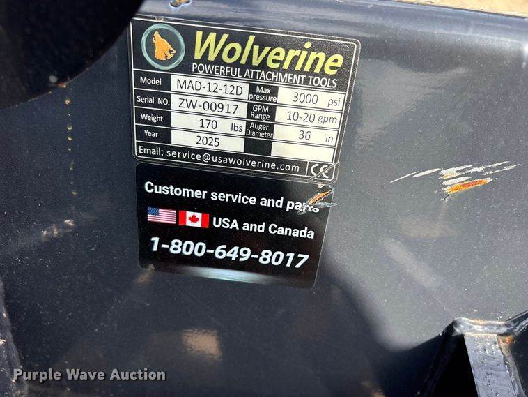 2025 Wolverine MAD-12-12D compact utility loader auger
