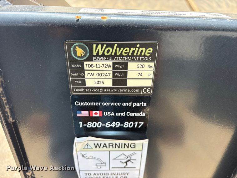 2025 Wolverine TDB-11-72W skid steer bucket