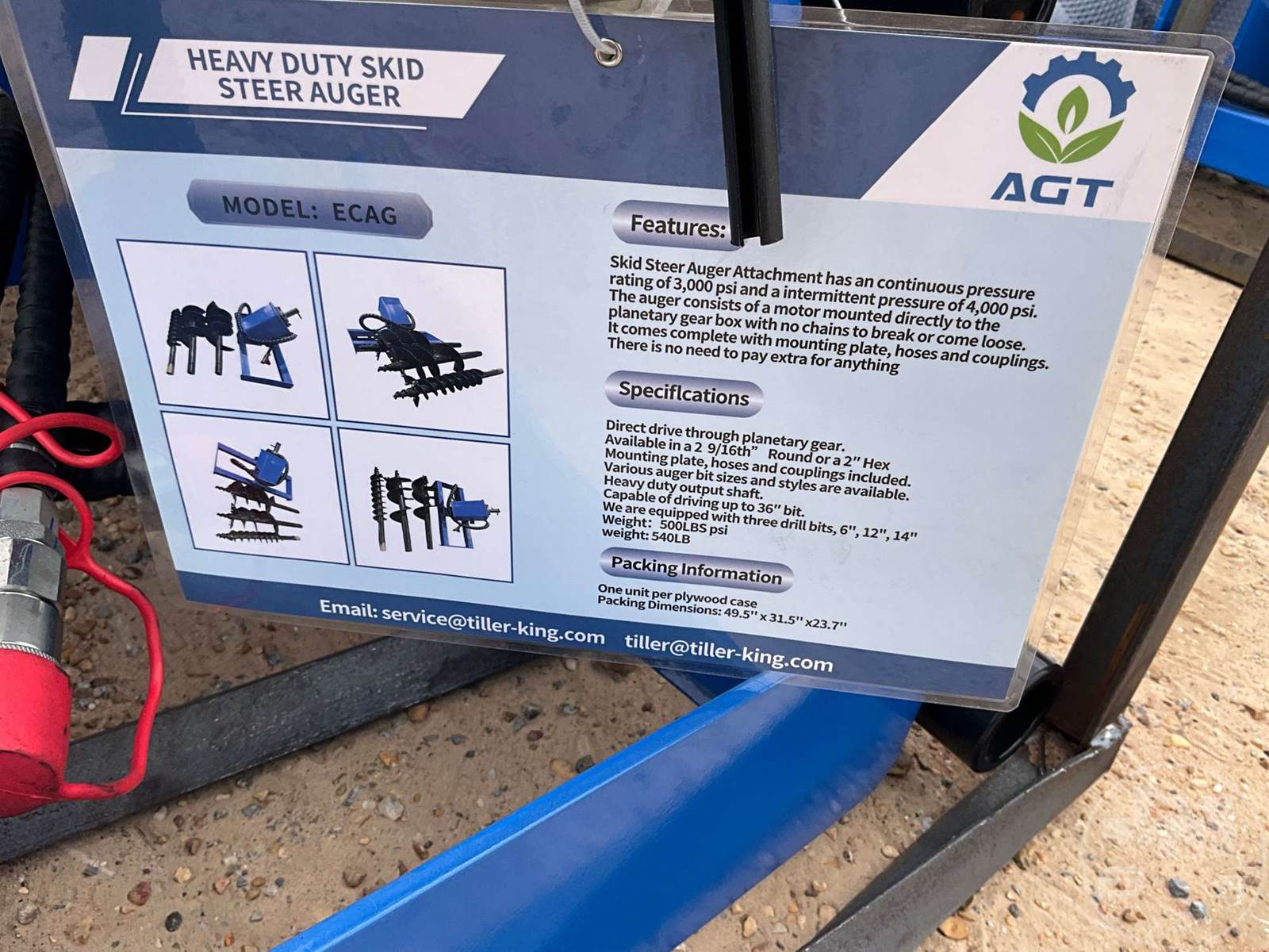 2026 AGT ECAG Hydraulic Auger Skid Steer Attachment with 6", 12", 14" Bits
