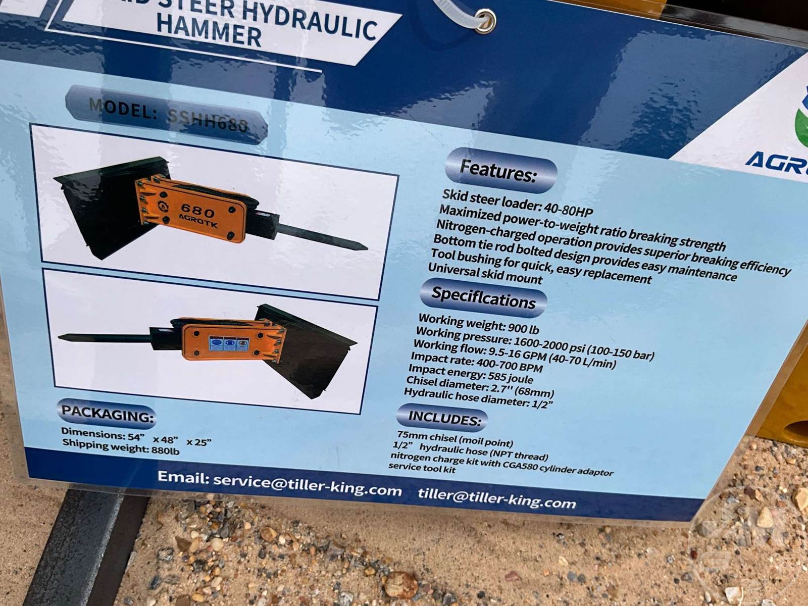2026 AGT SSHH680 Hydraulic Hammer Skid Steer Attachment with 75MM Chisel