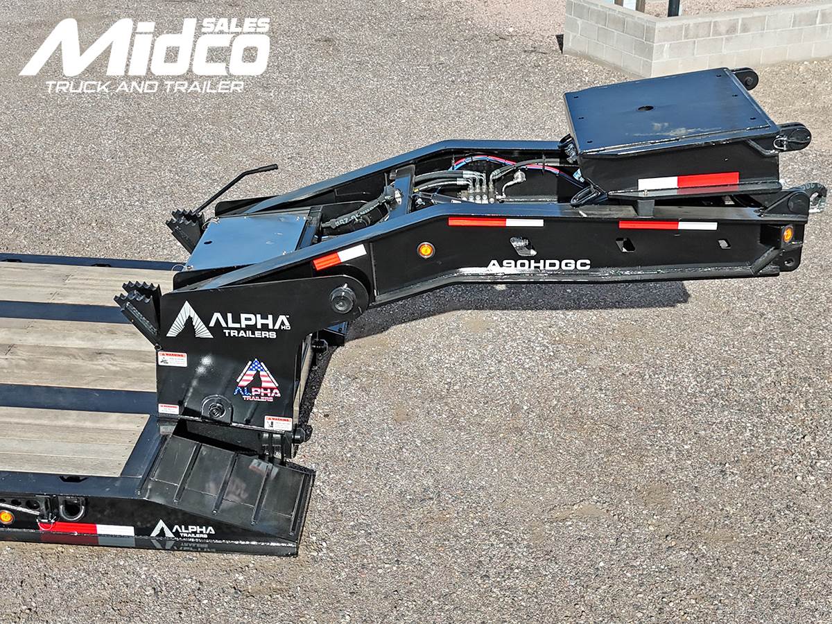 Midco Sales offers this Alpha HD A90HDGC lowboy trailer, engineered for demanding heavy-haul operations. Built with a hydraulic detachable...