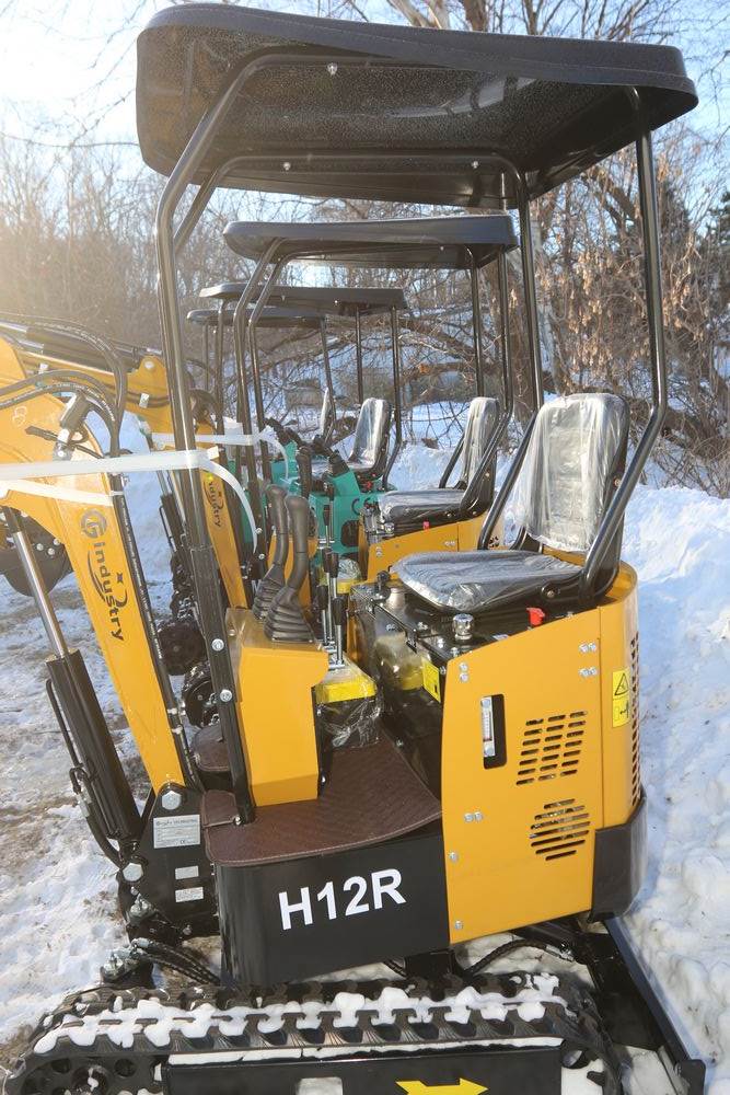 New 2026 CFG Industrial gas powered mini Excavator model H12R with 420cc gasoline engine with EPA, bucket, 4' long tracks, 36.5" wide base, 6" wide tracks, canopy, hydraulic boom & bucket controls, dozer blade. Hours reading less than 1 hour.