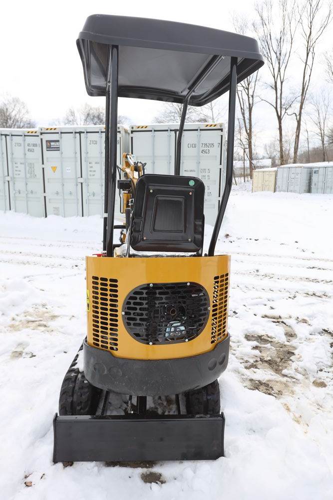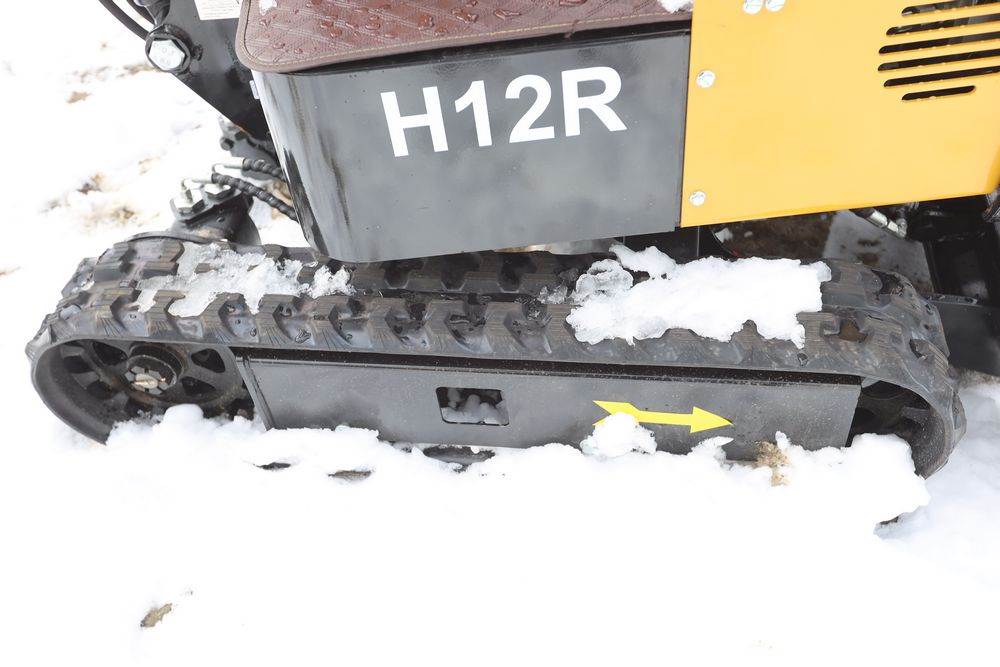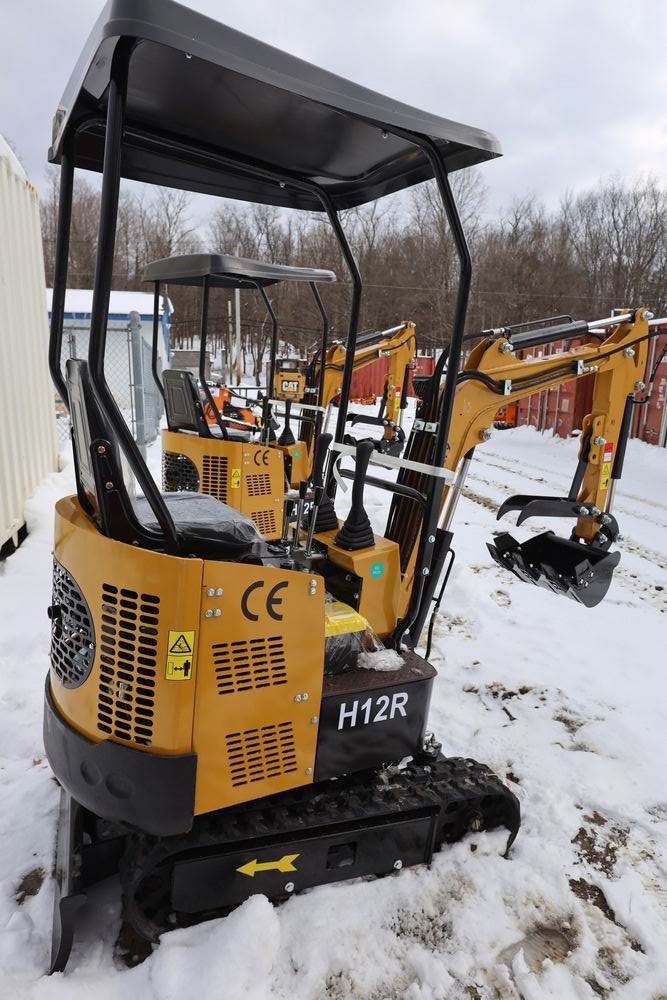 New 2026 CFG Industrial gas powered mini Excavator model H12R with 420cc gasoline engine with EPA, bucket, 4' long tracks, 36.5" wide base, 6" wide tracks, canopy, hydraulic boom & bucket controls, dozer blade. Hours reading less than 1 hour.