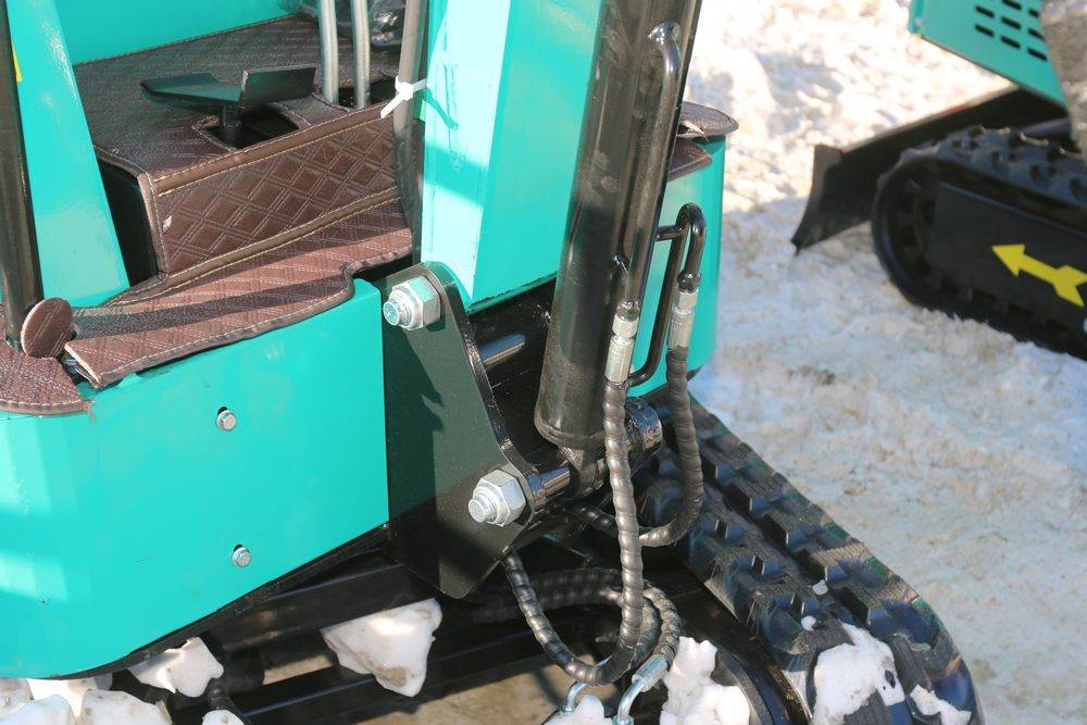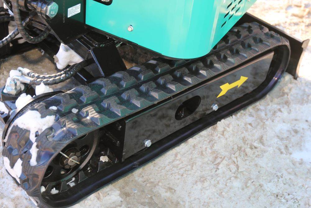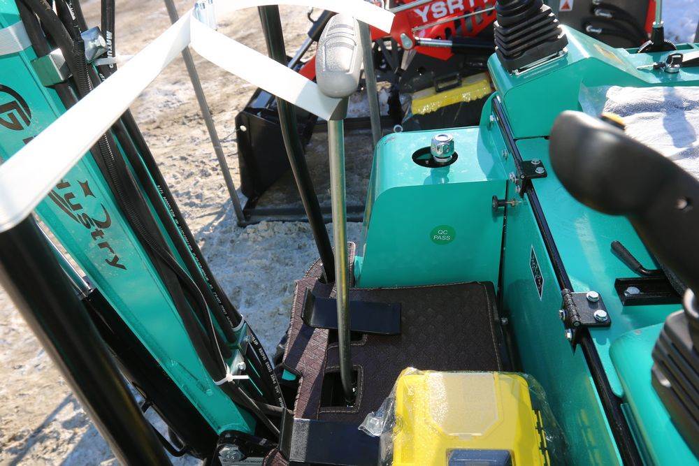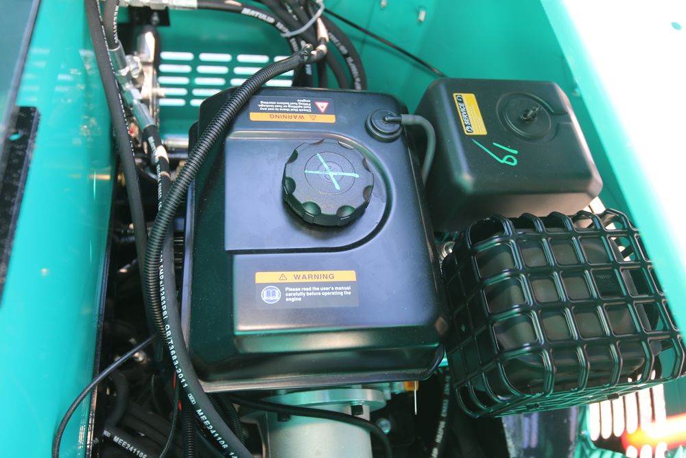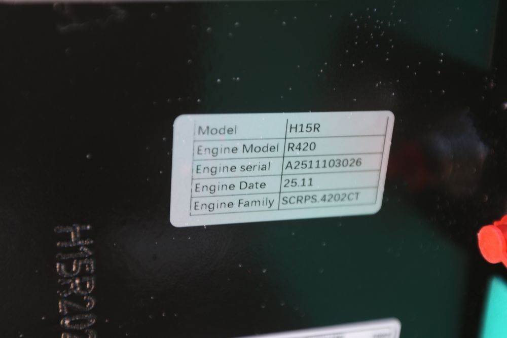 New 2026 CFG Industrial gas powered mini Excavator model H15R with 420cc gasoline engine, bucket, 4' long tracks, 38.5" wide base, 6" wide tracks, canopy, hydraulic boom & bucket controls, pilot system, thumb, dozer blade. Hours reading less than 1 hour.