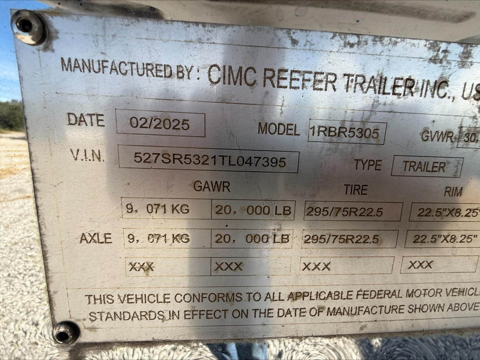 • Make/Model: CIMC Reefer Trailer