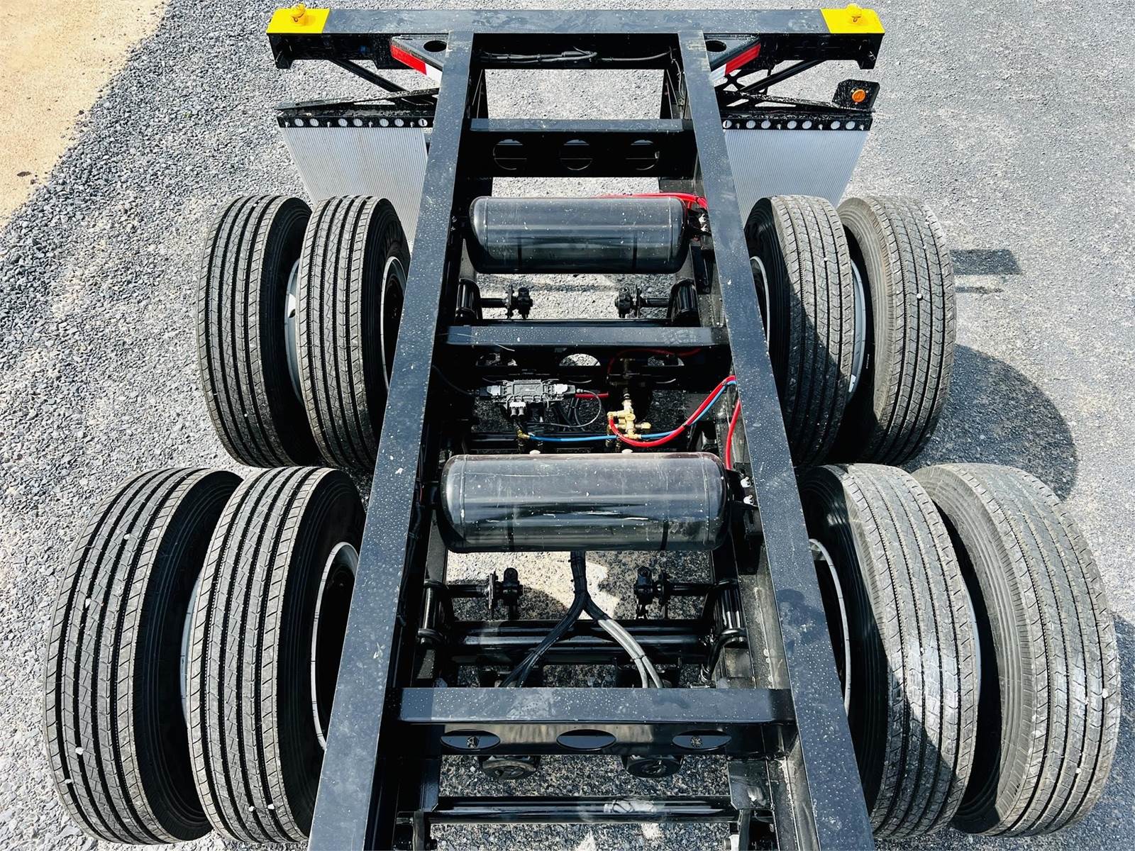 - Tandem Airbag suspension with one fixed axle and one auxiliary drop axle (optional)