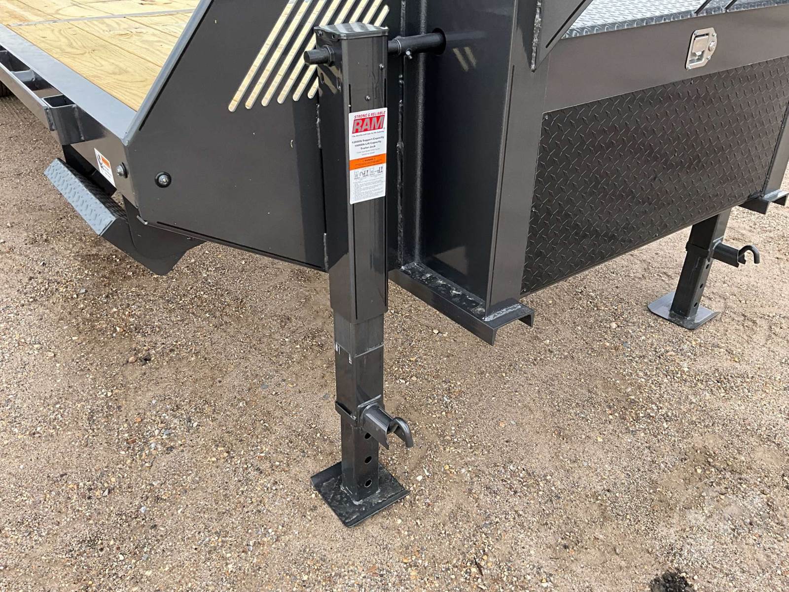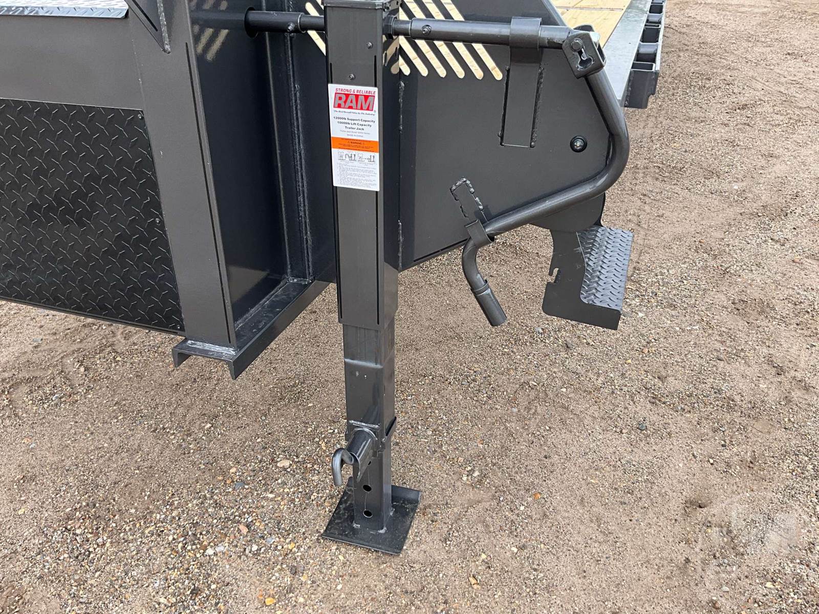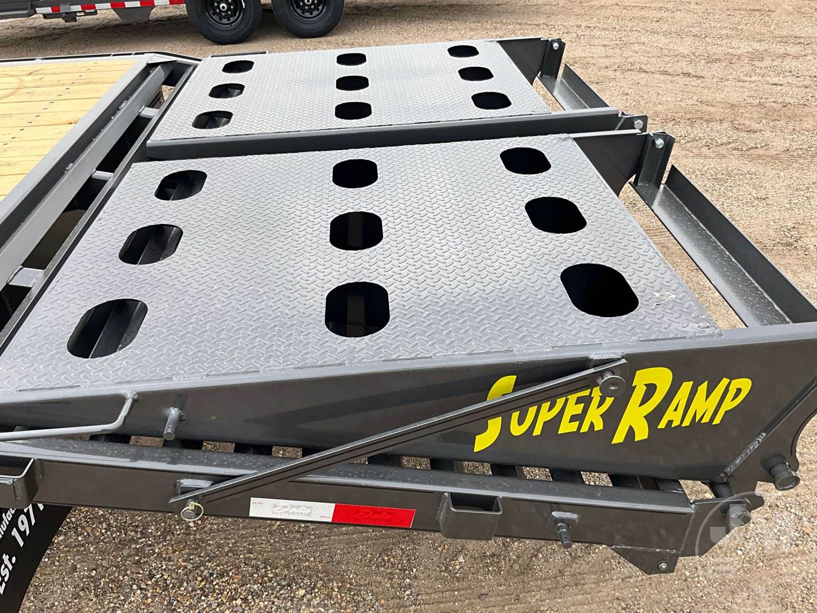 30' FLATBED TRAILER, 8'6" WIDE, DUAL TANDEM AXLE, ELECTRIC BRAKES, SPRING SUSPENSION, WOOD DECKING, GOOSENECK HITCH, DOVETAIL WITH RAMPS, TOOL BOX, 23400 GVWR, TIRES 235/80R16