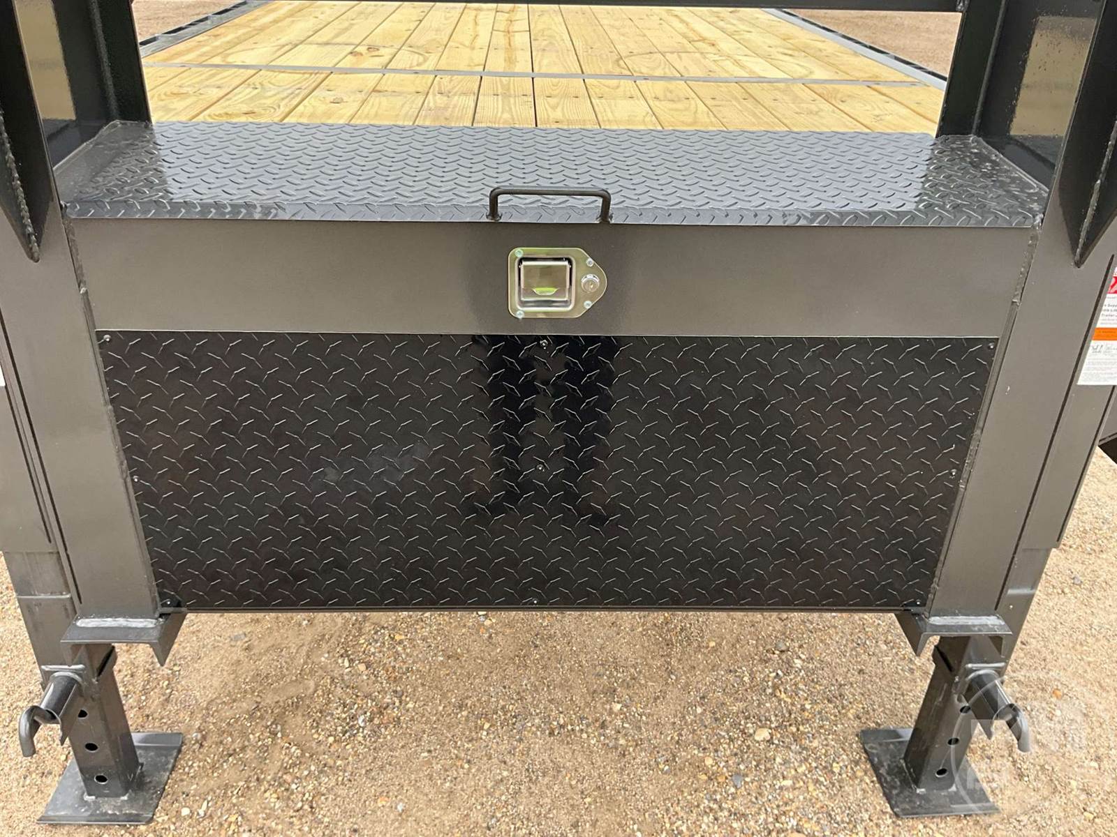 20' DUMP TRAILER, 8' WIDE, 2 AXLE, SPRING SUSPENSION, STEEL DECKING, GOOSENECK HITCH, TOOL BOX, 25900 GVWR, MANUAL GATE, TIRES 235/80R16